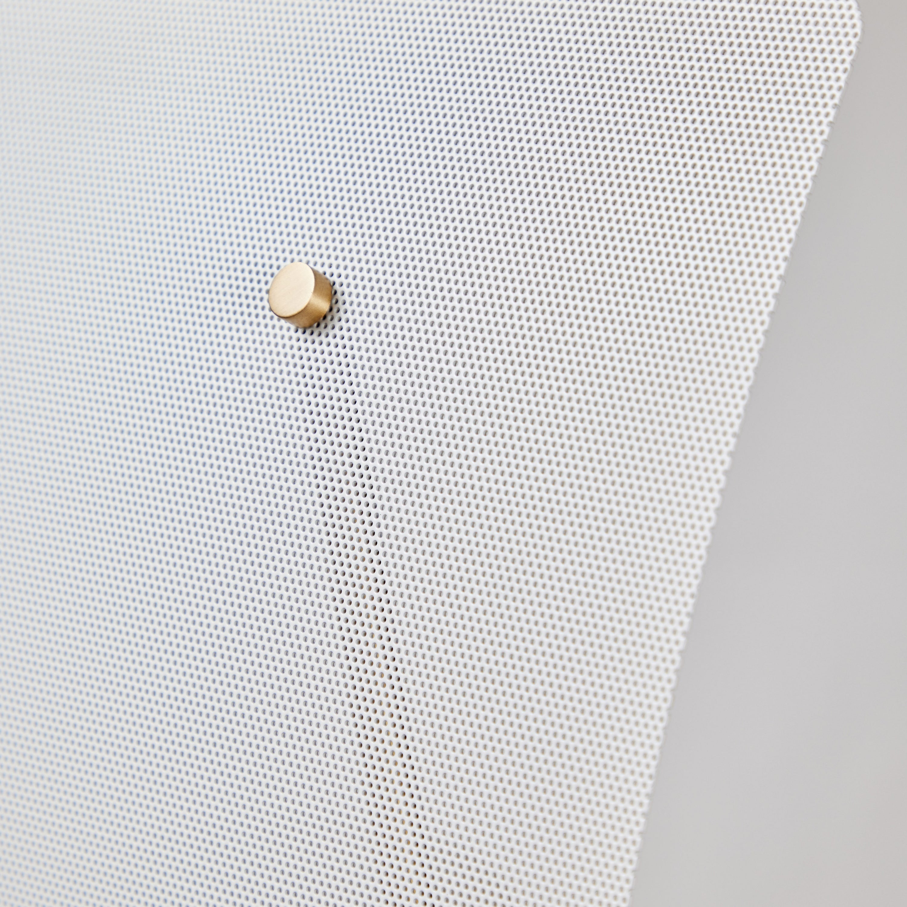 Designed by Pierre Guariche in 1958, this iconic floor lamp is newly produced in an authorized re-edition by Sammode Studio in France embracing many of the same small-scale manufacturing techniques, quality materials and scrupulous attention to detail as the original. Executed in brushed brass and black and white enameled and perforated metal.