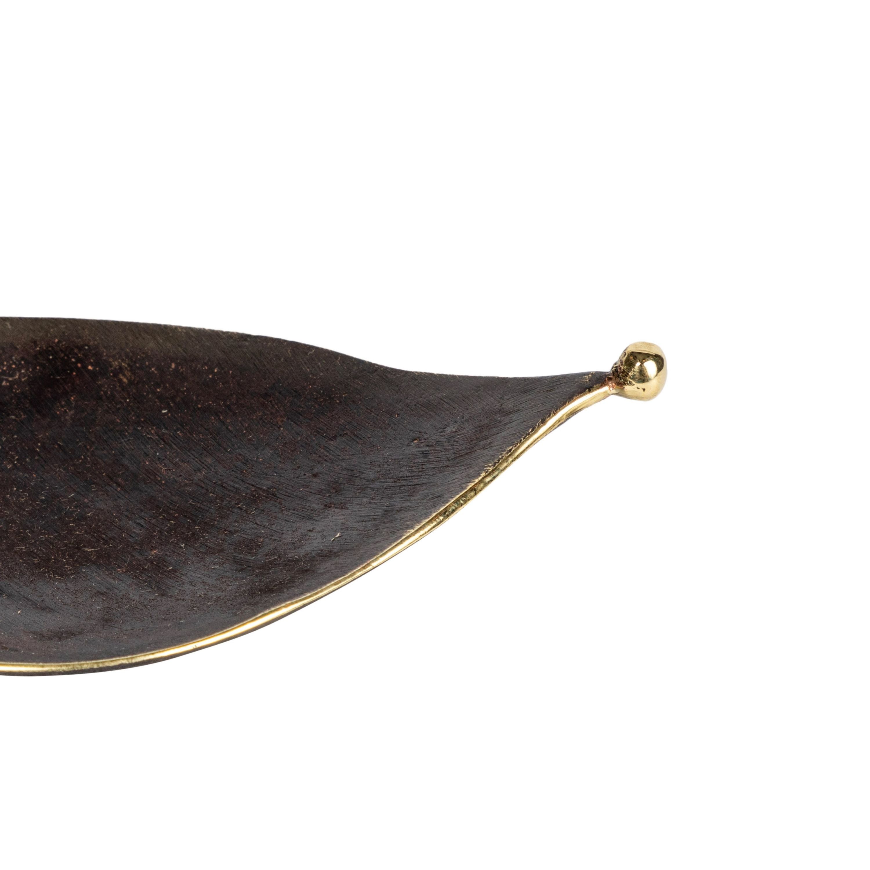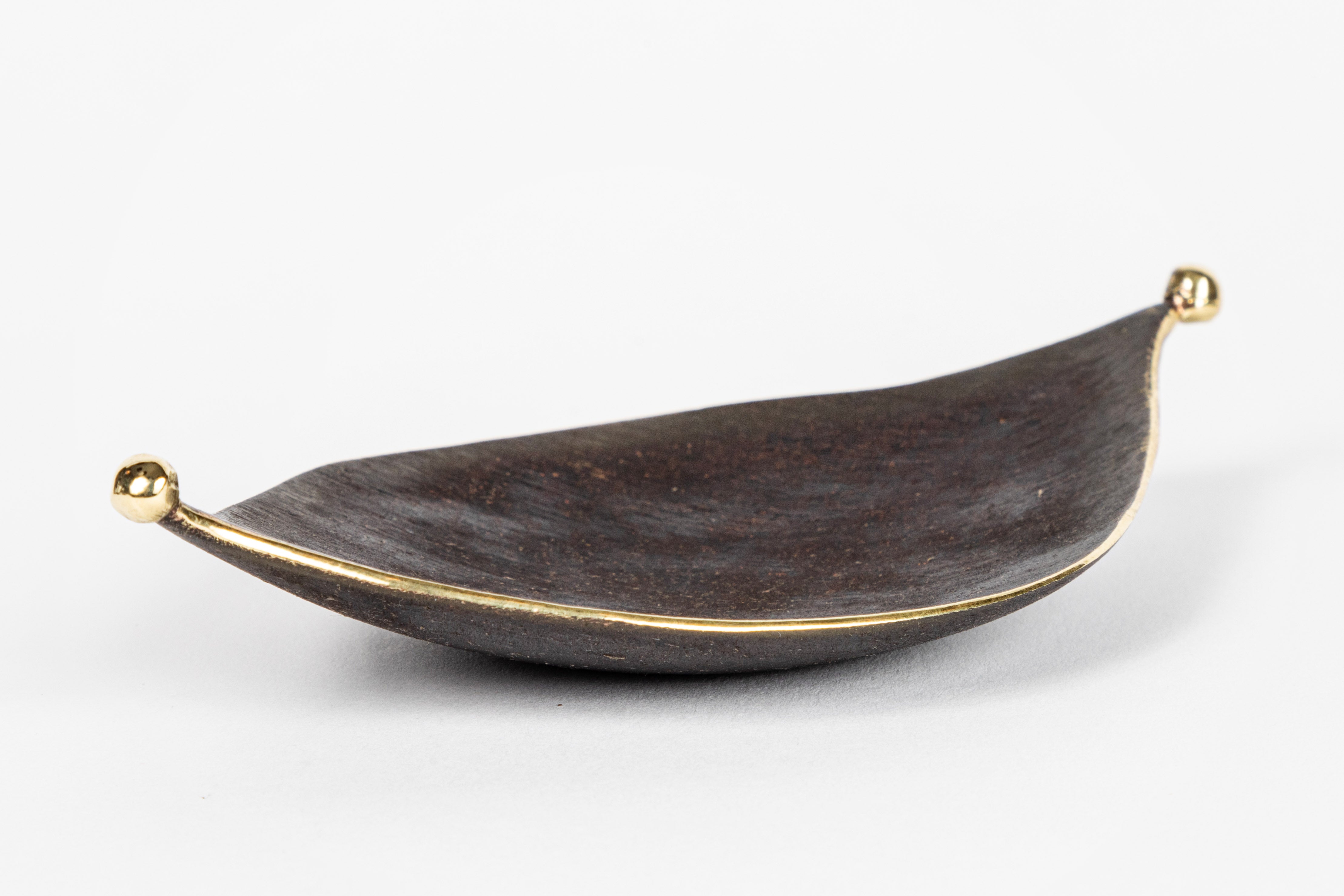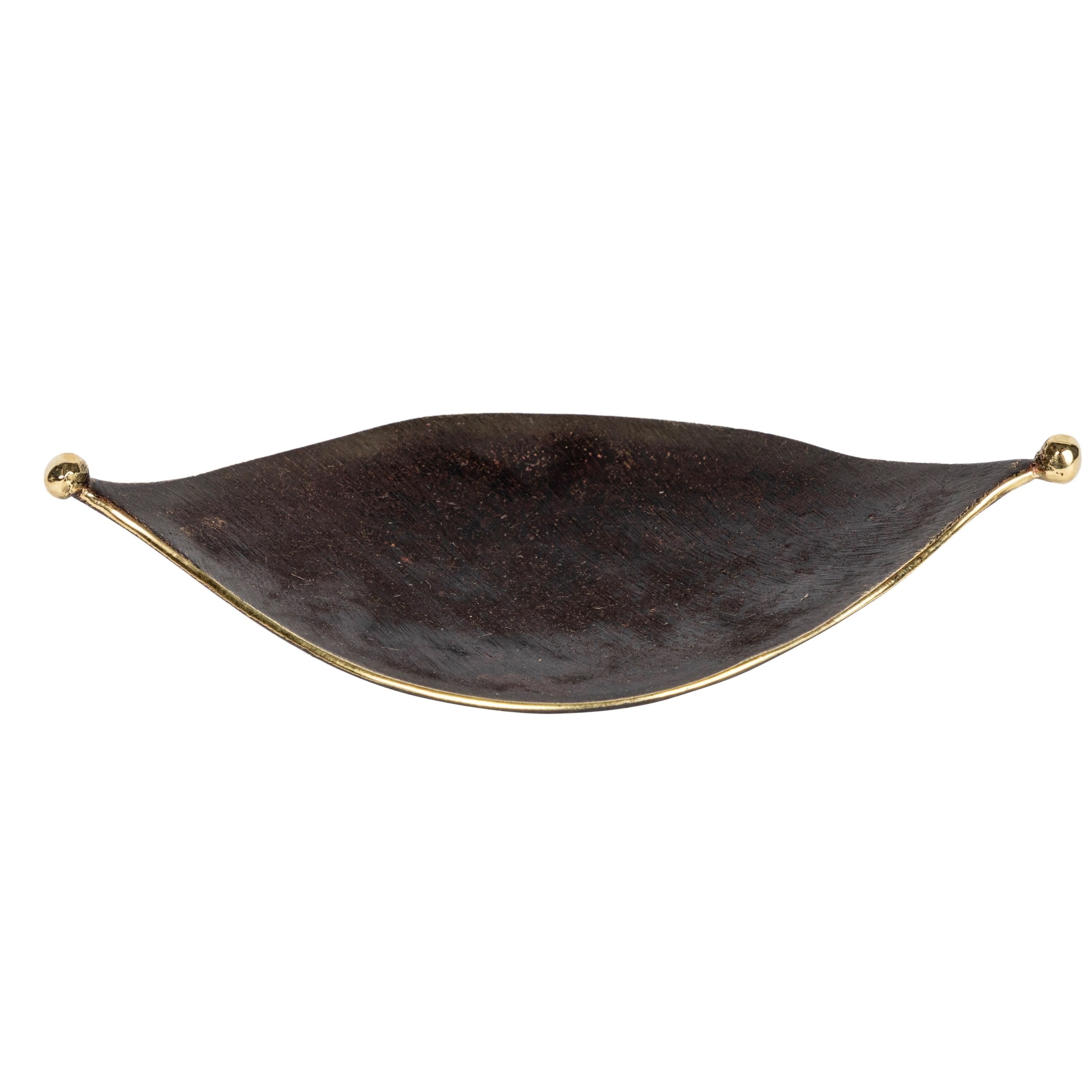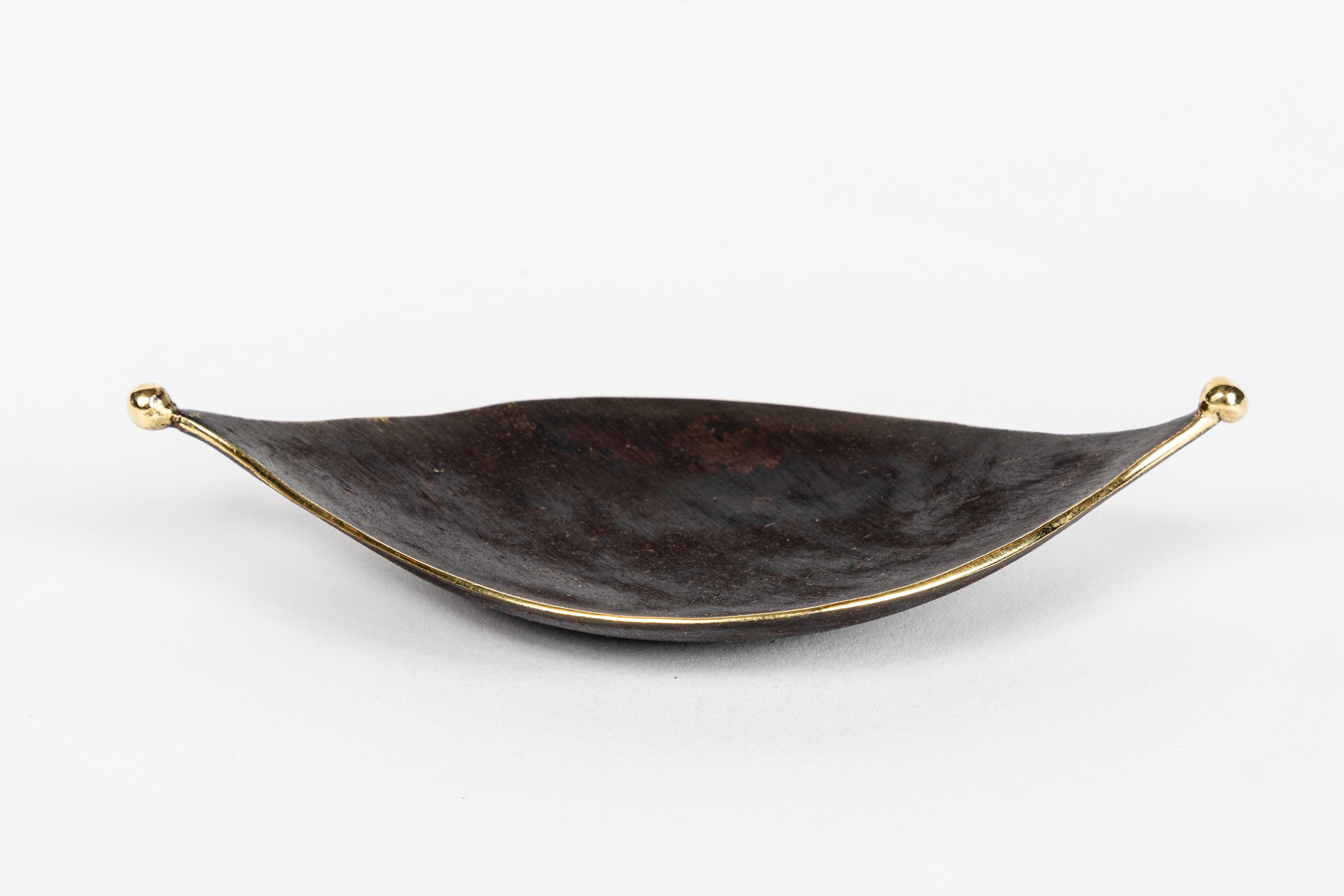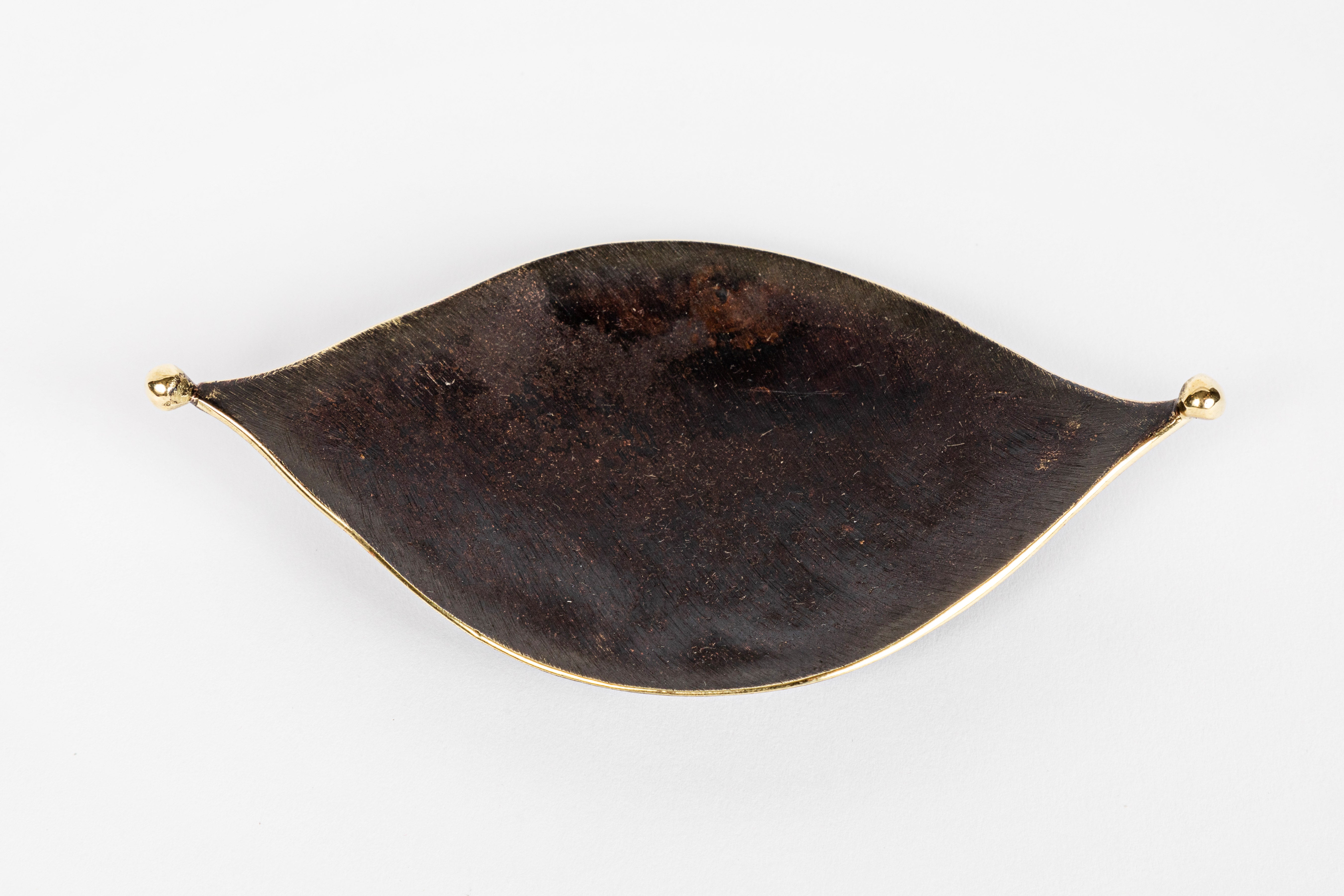 Designed in the 1950s, this incredibly refined and sculptural Viennese tray is executed in brass. This petite decorative tray can be used for a variety of purposes and bears the "Auböck" stamp on the bottom.
