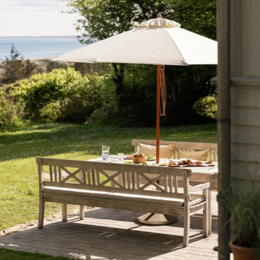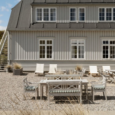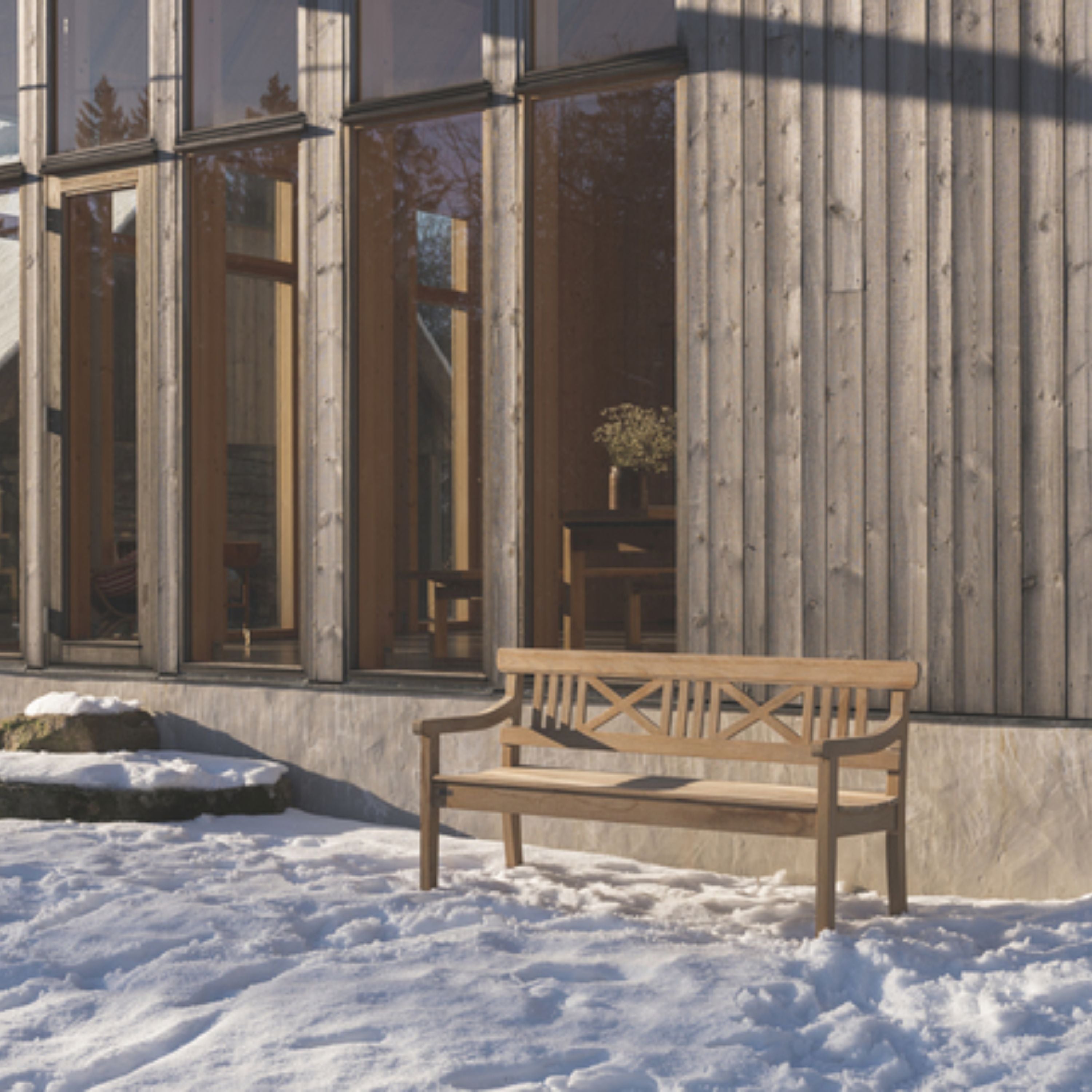 Launched in 1982, the Drachmann bench was inspired by the Danish poet and painter Holger Drachmann, the design strikes a timeless balance between Nordic nostalgia and modern simplicity. Beautiful on its own and convenient as a comfortable seat at the table. Durable in all kinds of weather, the bench ages with grace, taking on a silver-grey patina. Available in 3 sizes, as well as in a chair, and executed in FSC-certified teak to the exacting standards of Skagerak.