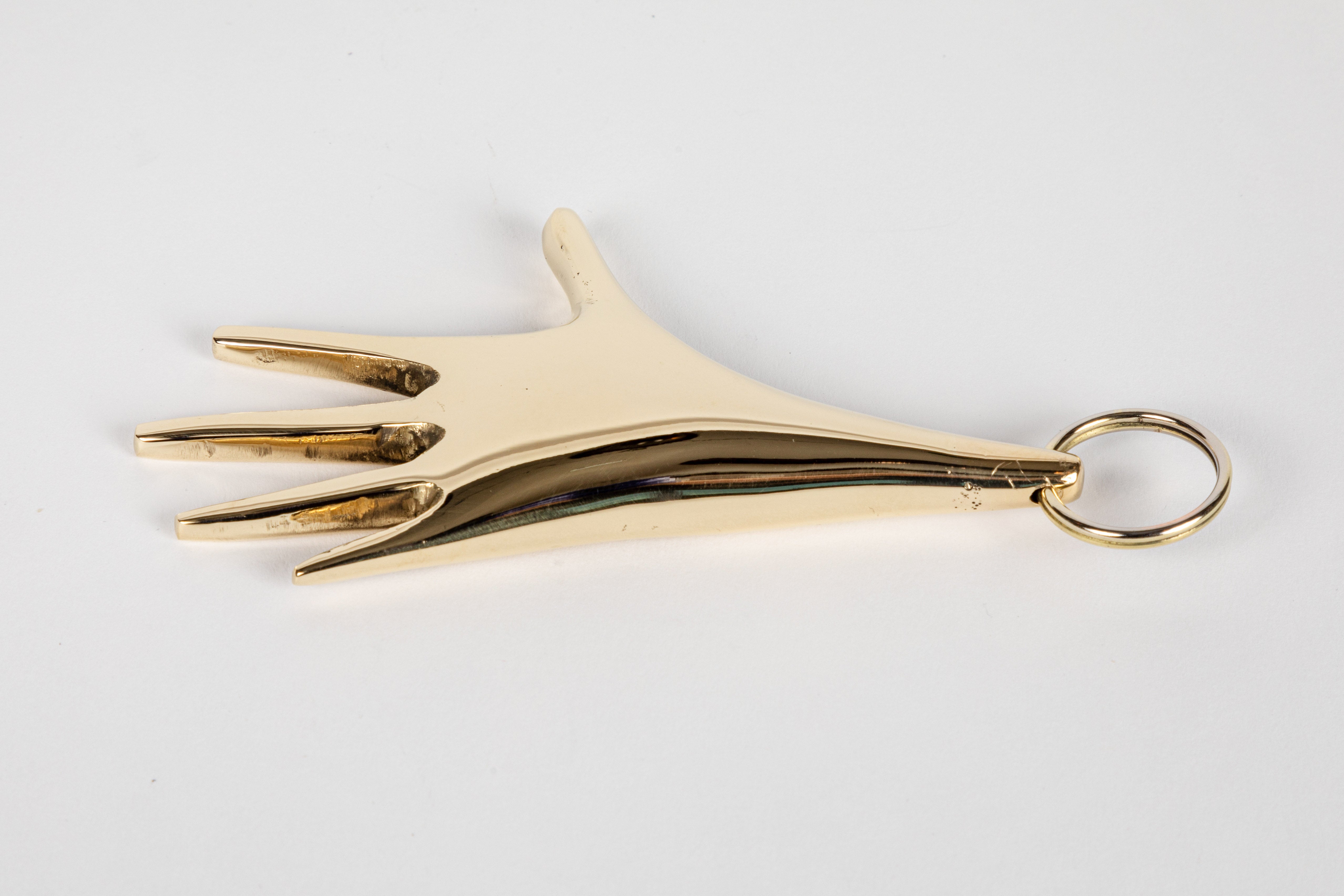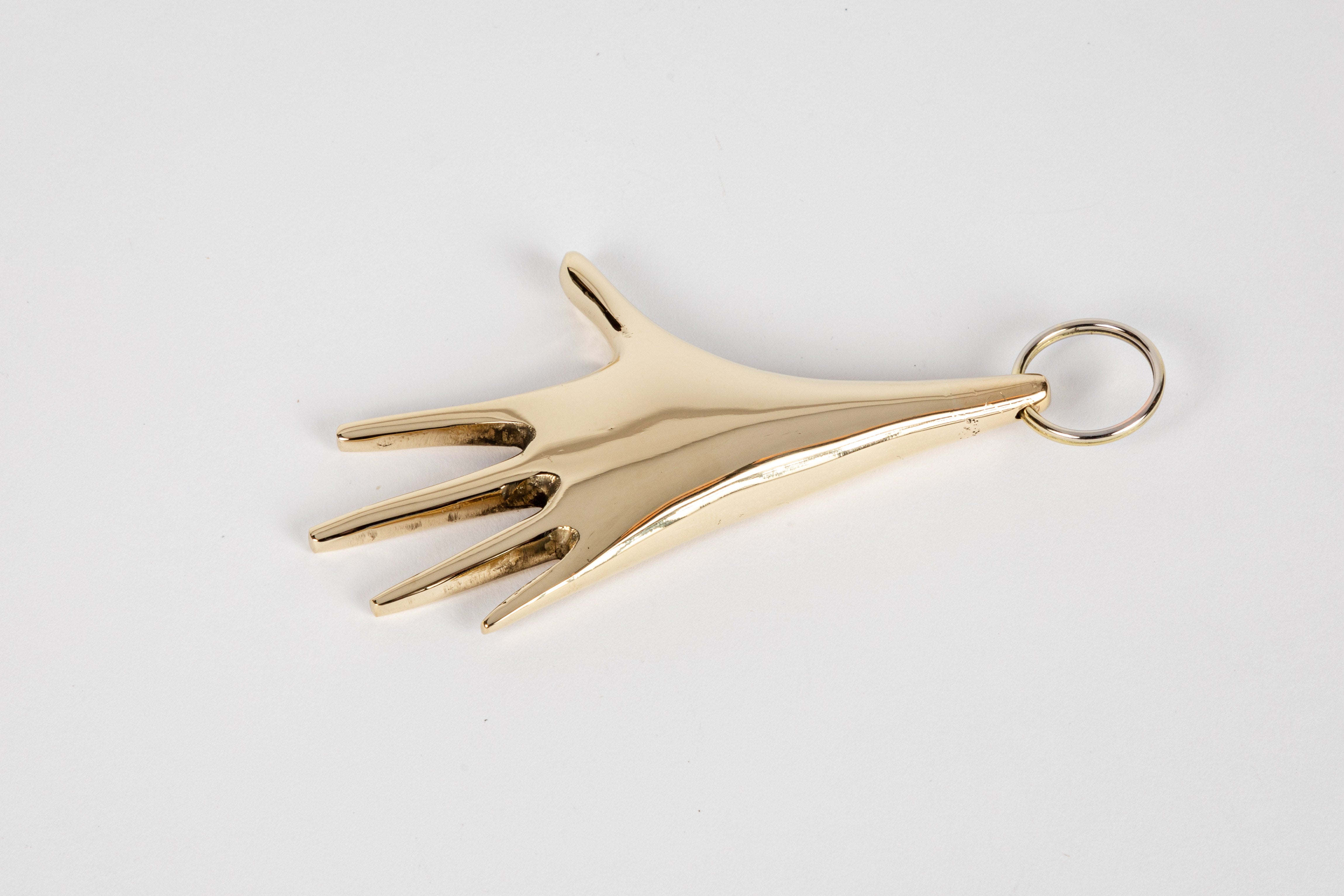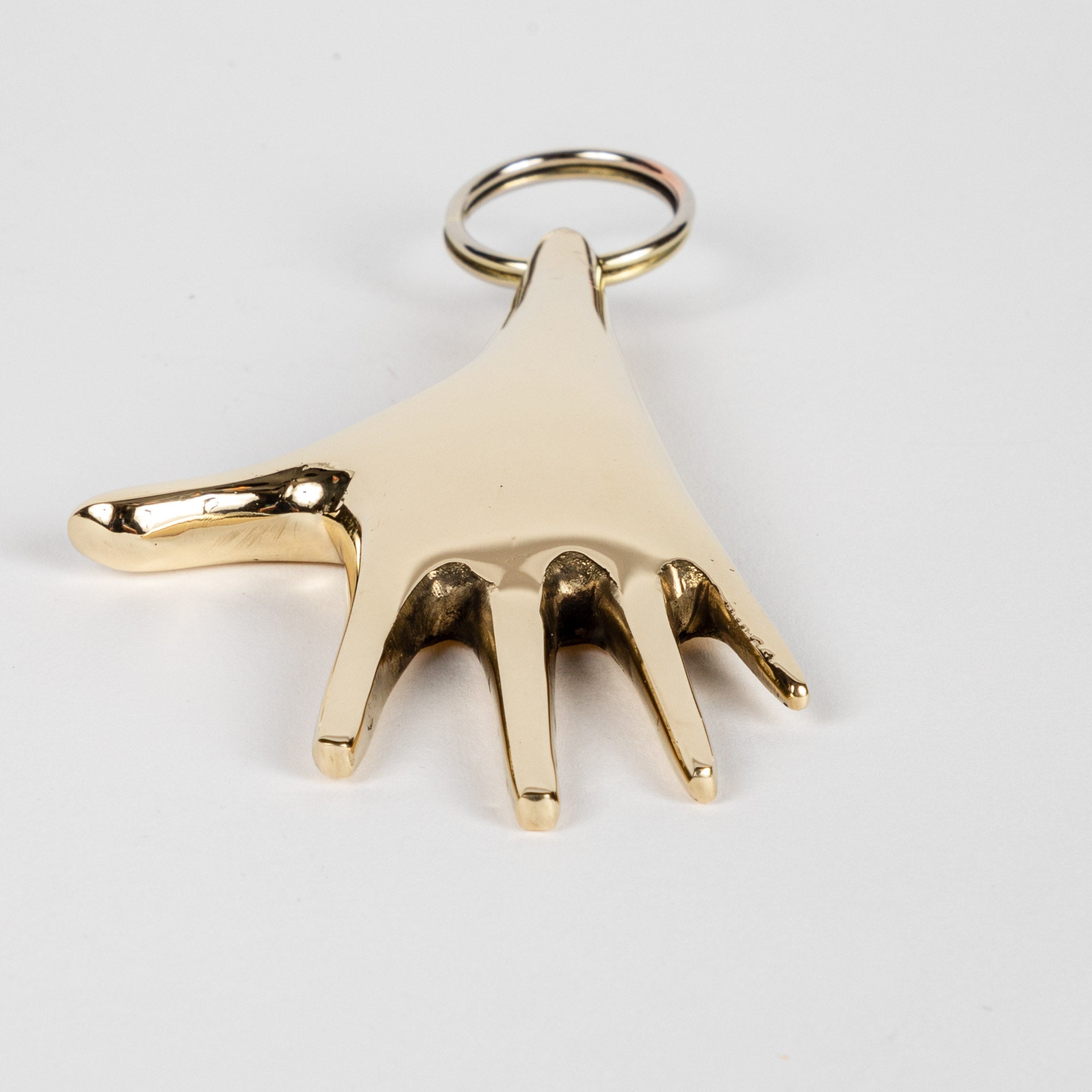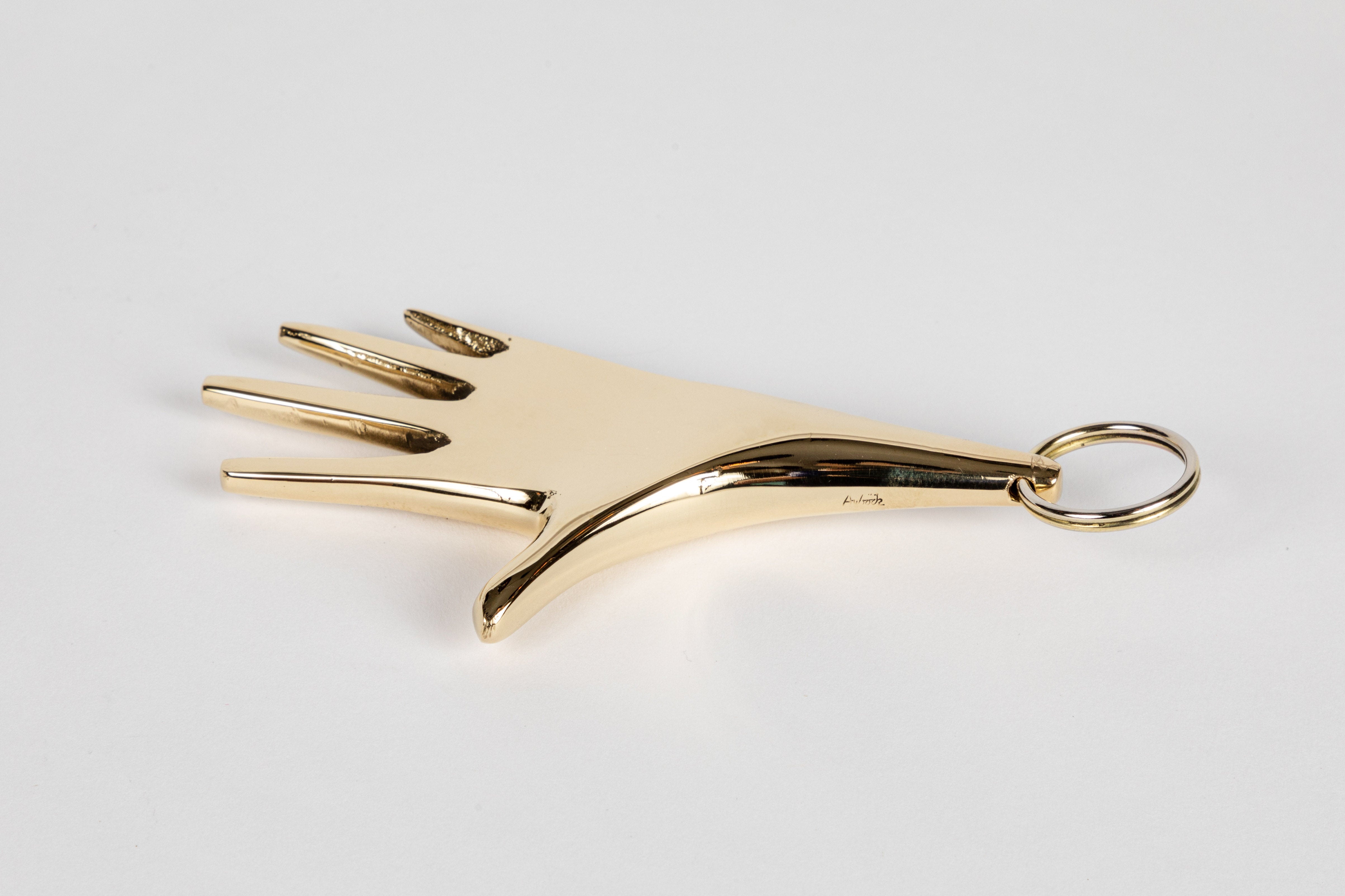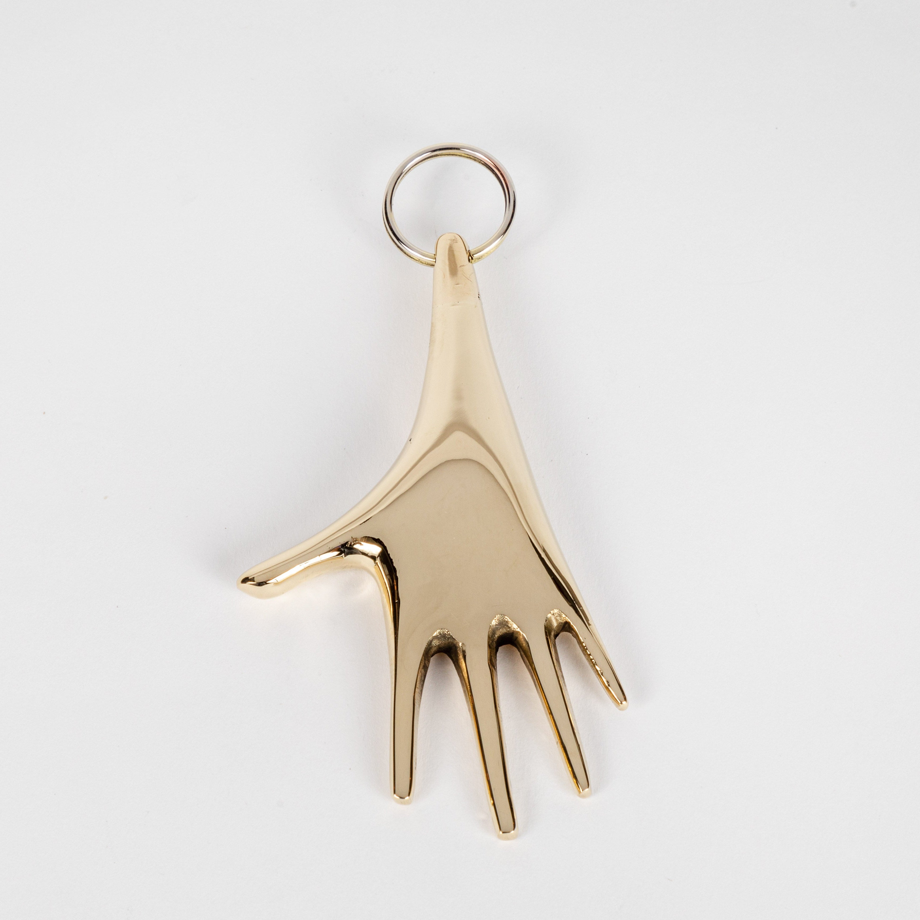 Carl Auböck model #5732 'Hand' brass figurine keyring.