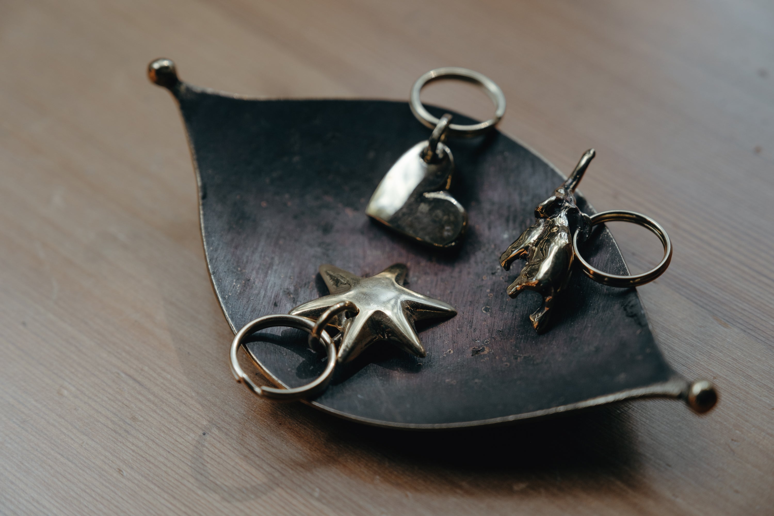 Carl Auböck model #5734 'Hand' brass figurine keyring.