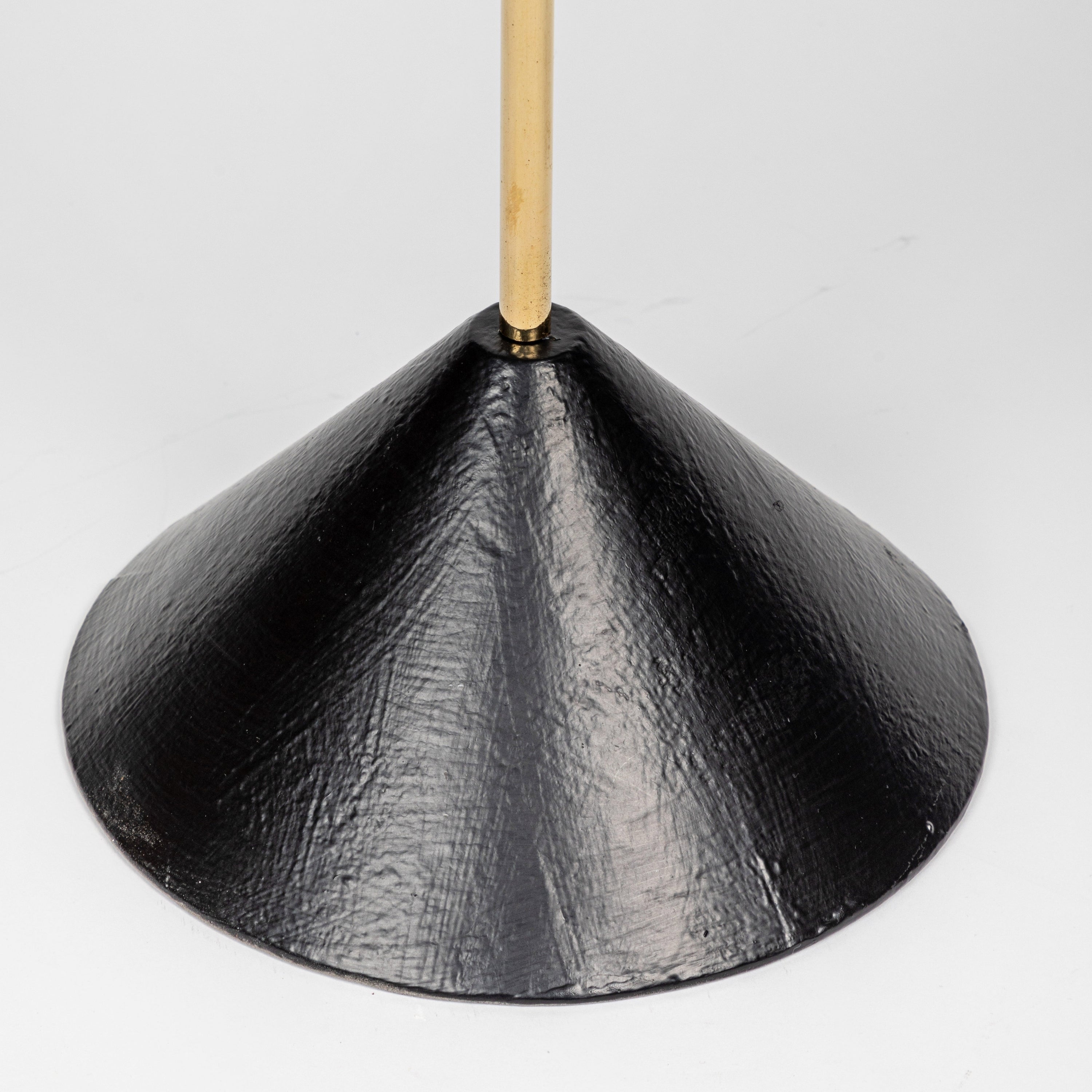 Finish varies from item to item due to the handmade nature of their fabrication. Simple assembly required (the stem screws together and then into the base. No hardware required). Brass is unlacquered and will develop a patina over time. Shine can be restored with any brass polish.