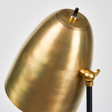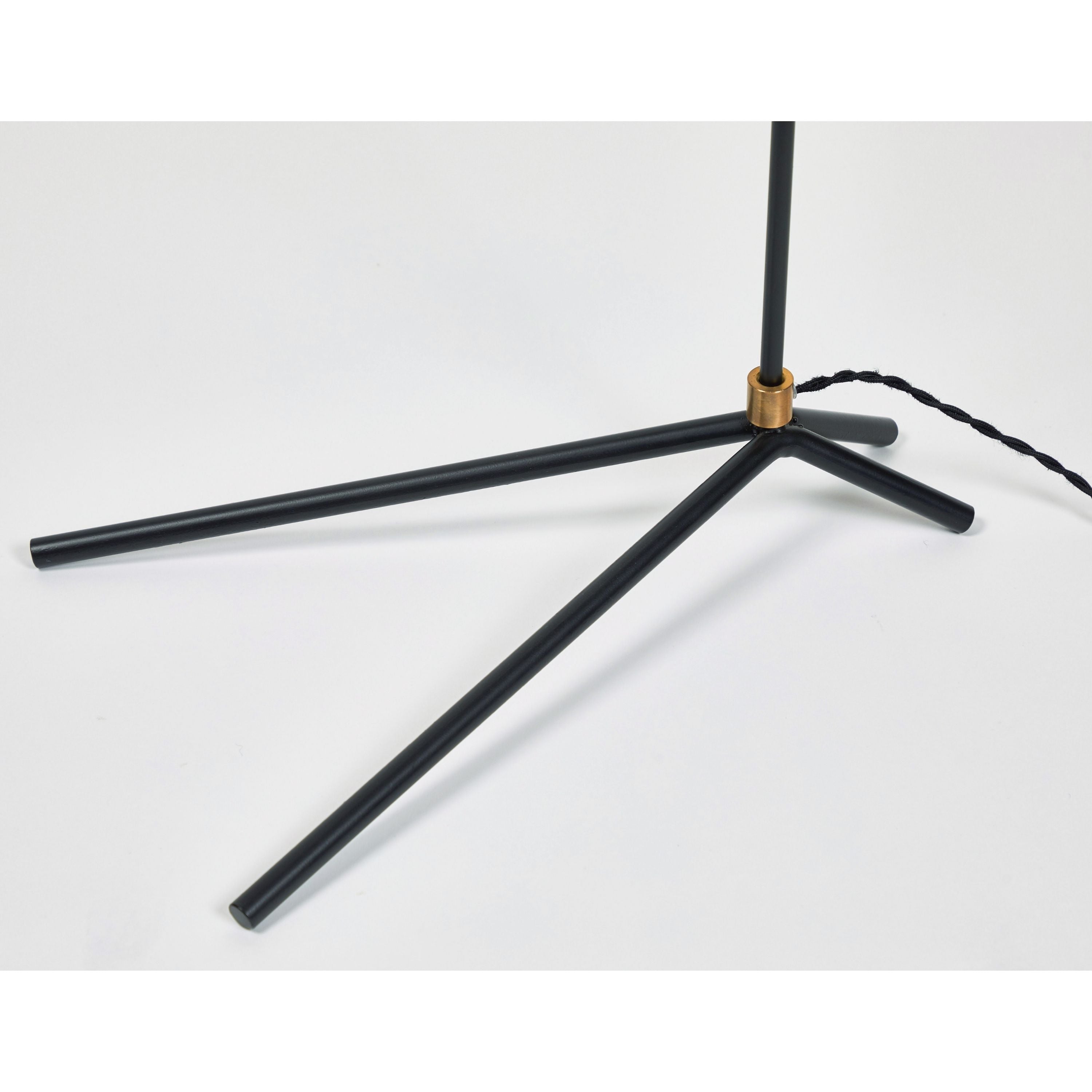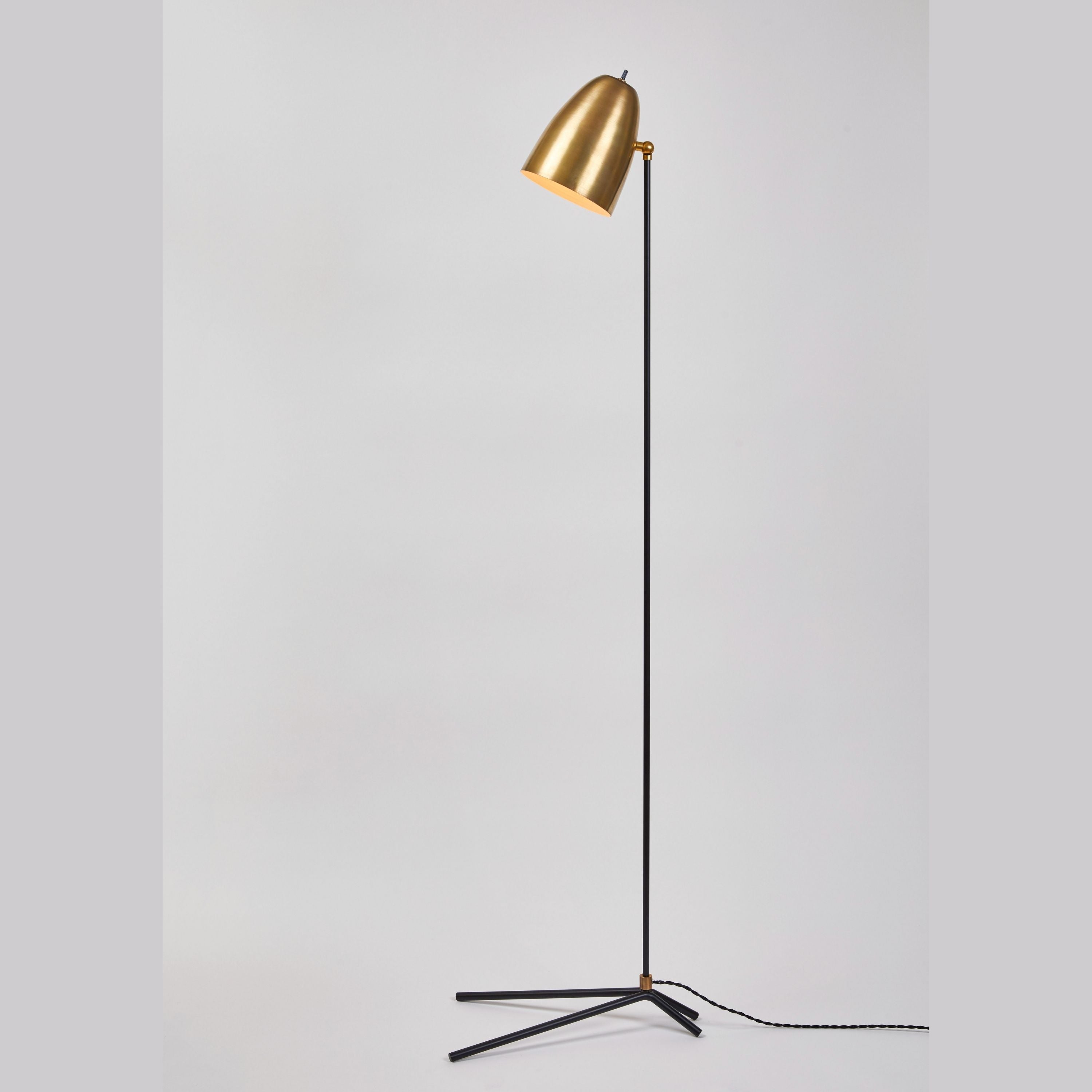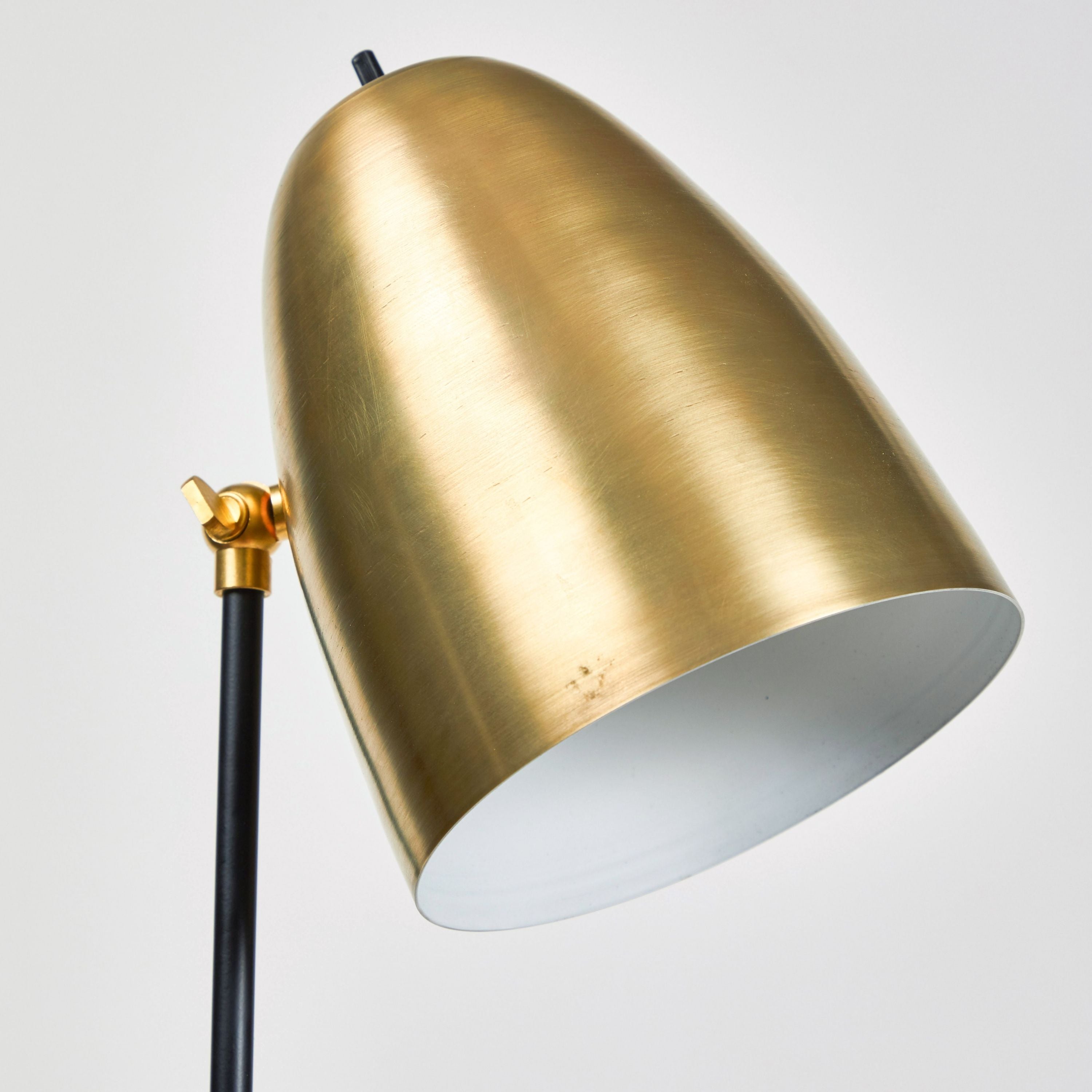 Hand-fabricated by Los Angeles-based designer and lighting professional Alvaro Benitez, this UL listed and highly refined floor lamp is reminiscent of the iconic mid-century Italian designs of Arteluce and Stilnovo. Executed in black metal and brushed brass, shade can be rotated left, right, up, and down for a flexible variety of lighting options.