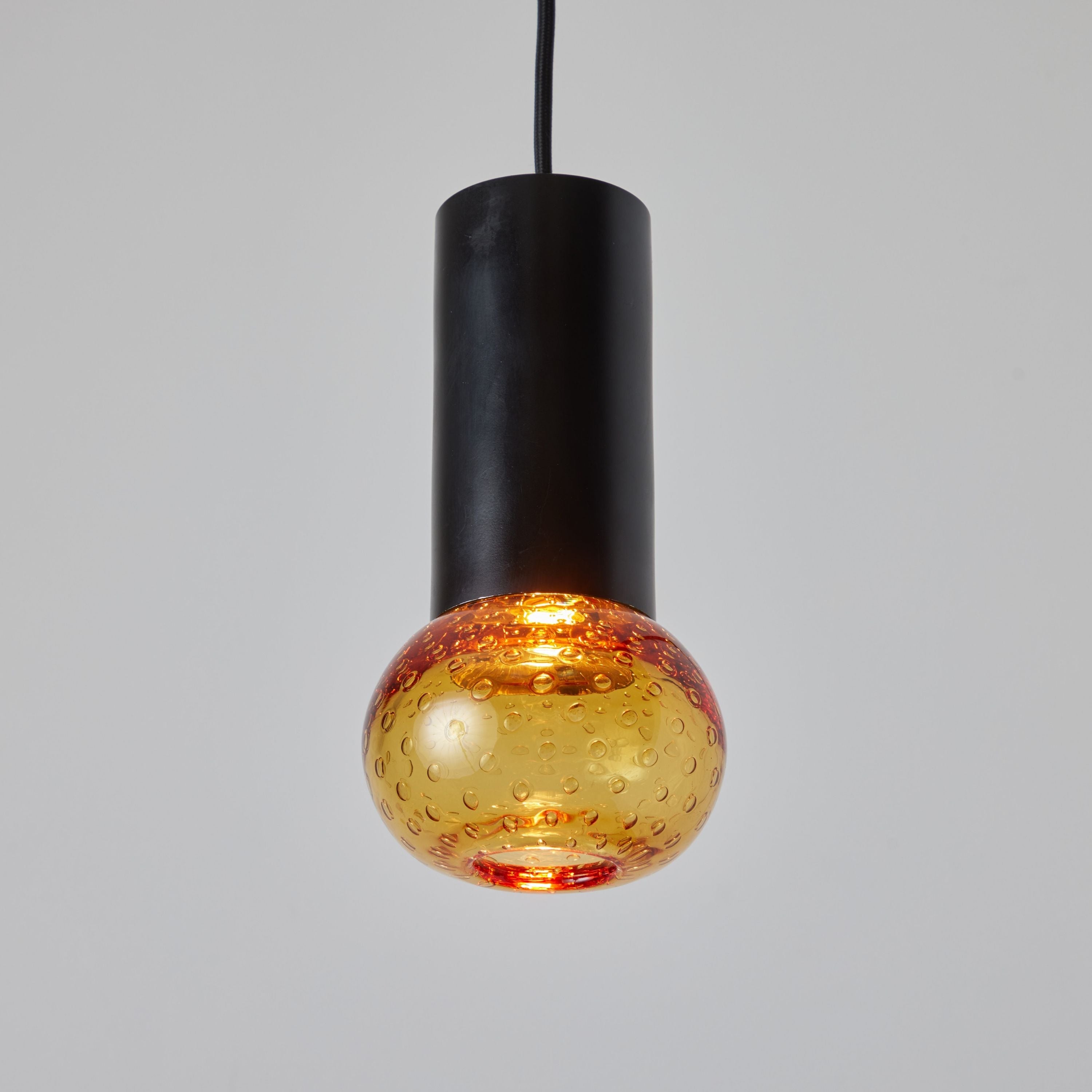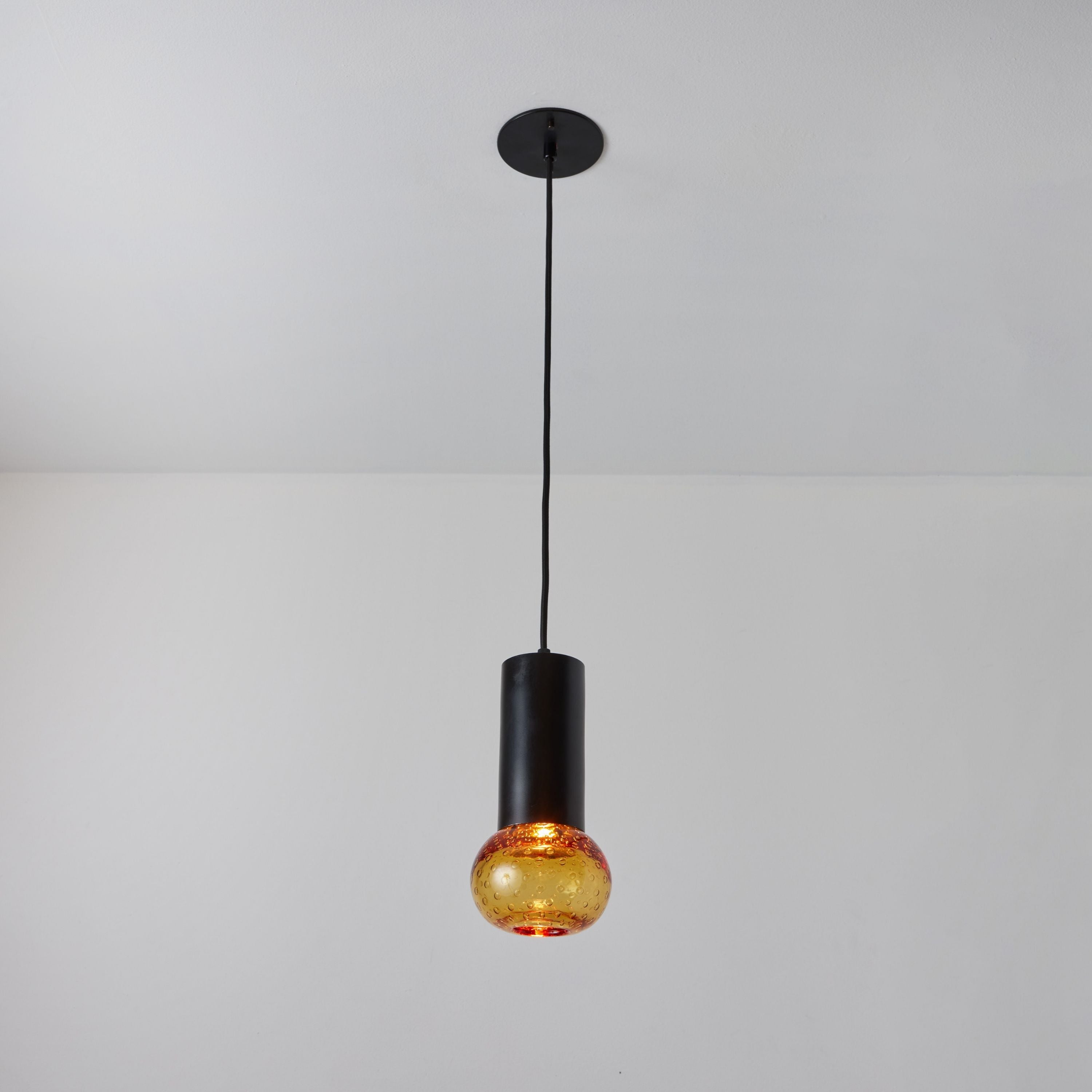 Executed in hand blown deep amber bubbled Seguso glass and painted metal. The simplicity of Sarfatti's design and the sculptural shaping of the materials make for an incredibly refined example of the lighting master's influential approach.