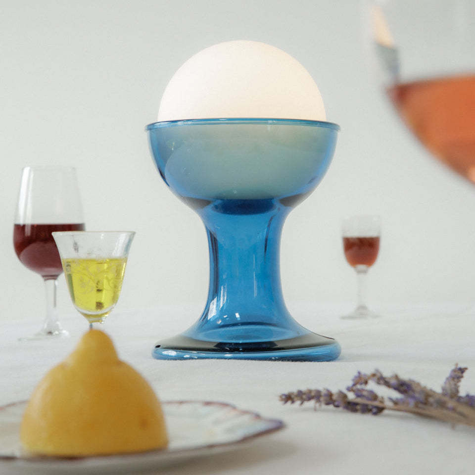 Originally designed in the 1960s by Murano-based Carlo Nason, 'Gelato' has been re-engineered into a playful portable lamp bringing Nason's artistic philosophy into 21st century technology. The lamp's colorful mouth-blown base holds an orb of acid-etched opaline glass. The sphere is lit by a replaceable custom-made LED bulb operated by a three-step dimming switch and is powered by a magnetically charged battery.