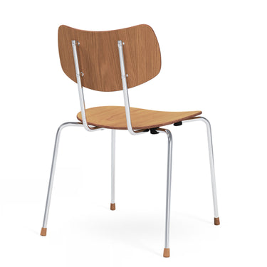 First introduced in 2022 in a partnership with Vilhelm Lauritzen Architects, the 'VLA26 Vega' chair’s functionalist design appears effortlessly simple and timeless, but still with a very clear character. Originally offered in an elegant mix of black powder-coated steel, oak, and an optional upholstered seat, the newest variant is now available in polished chrome. The result is a contemporary look to the chair, as well as broader configurable options for personalized design. True to Vilhelm's original characteristics, the 'VLA26 Vega' chair is meticulously crafted to exacting standards by Carl Hansen & Son.