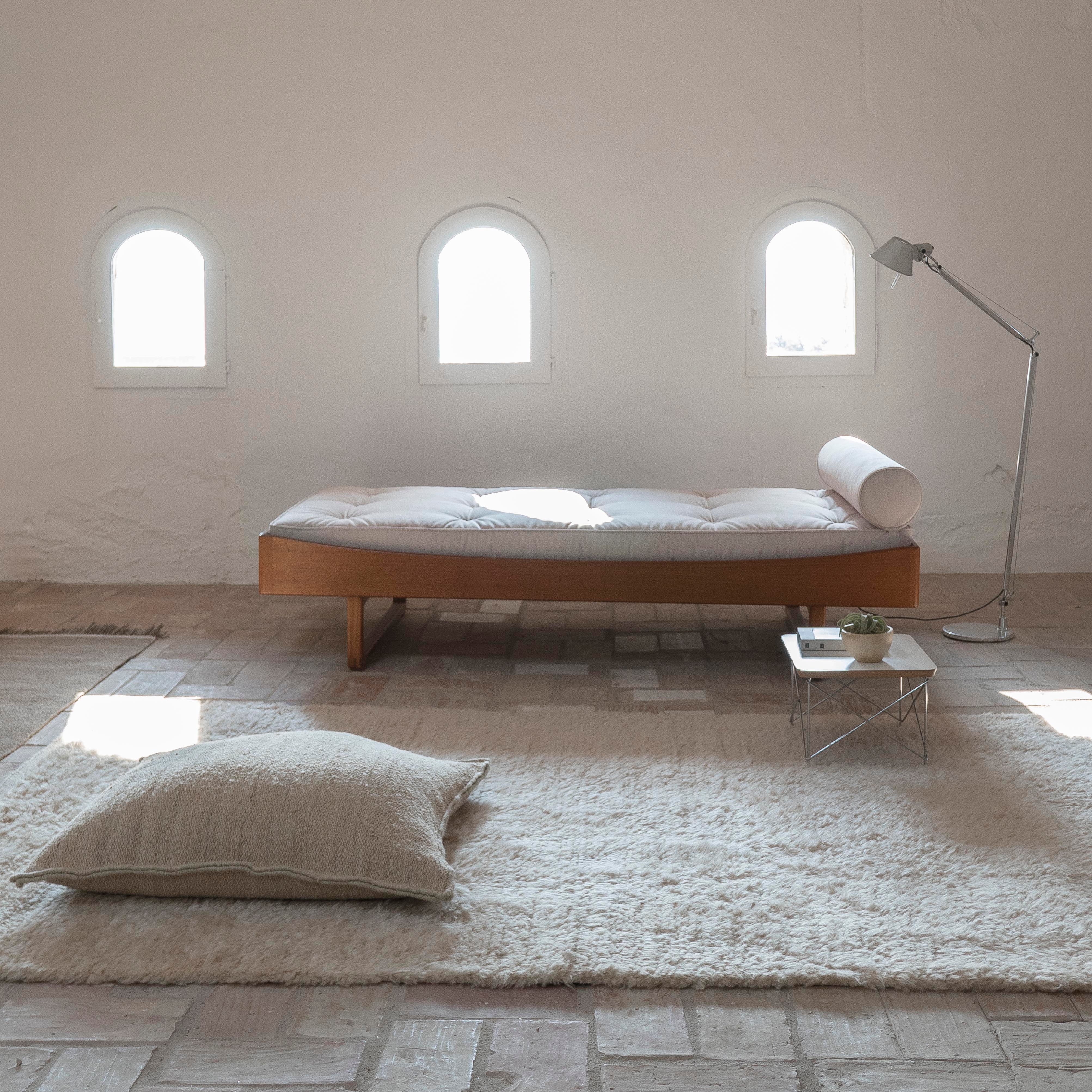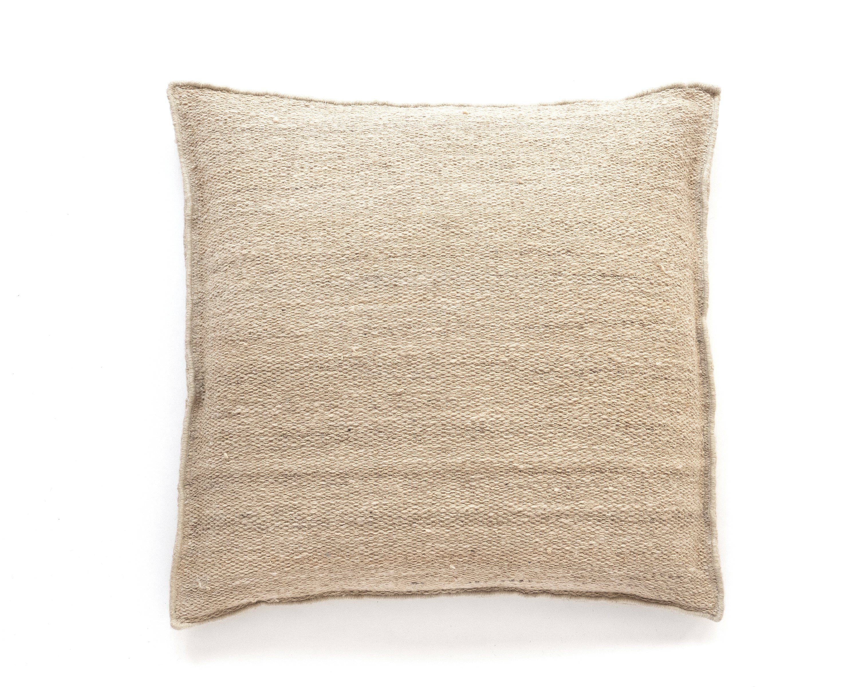 Conceived by reknowned designer Ilse Crawford, the Wellbeing textile collection for Nanimarquina uses hand-spun Afghan wool, nettle, jute, linen, Tussar silk, as well as cork, wood, raw wool and raw cotton. Each material is carefully sourced. These large, heavy floor pillows are executed in natural, sustainable and local fibers that are hand-spun, bleach-free and dye-free and made by local artisans using traditional craft techniques. Ideal for home meditation areas, yoga studios, or media rooms.