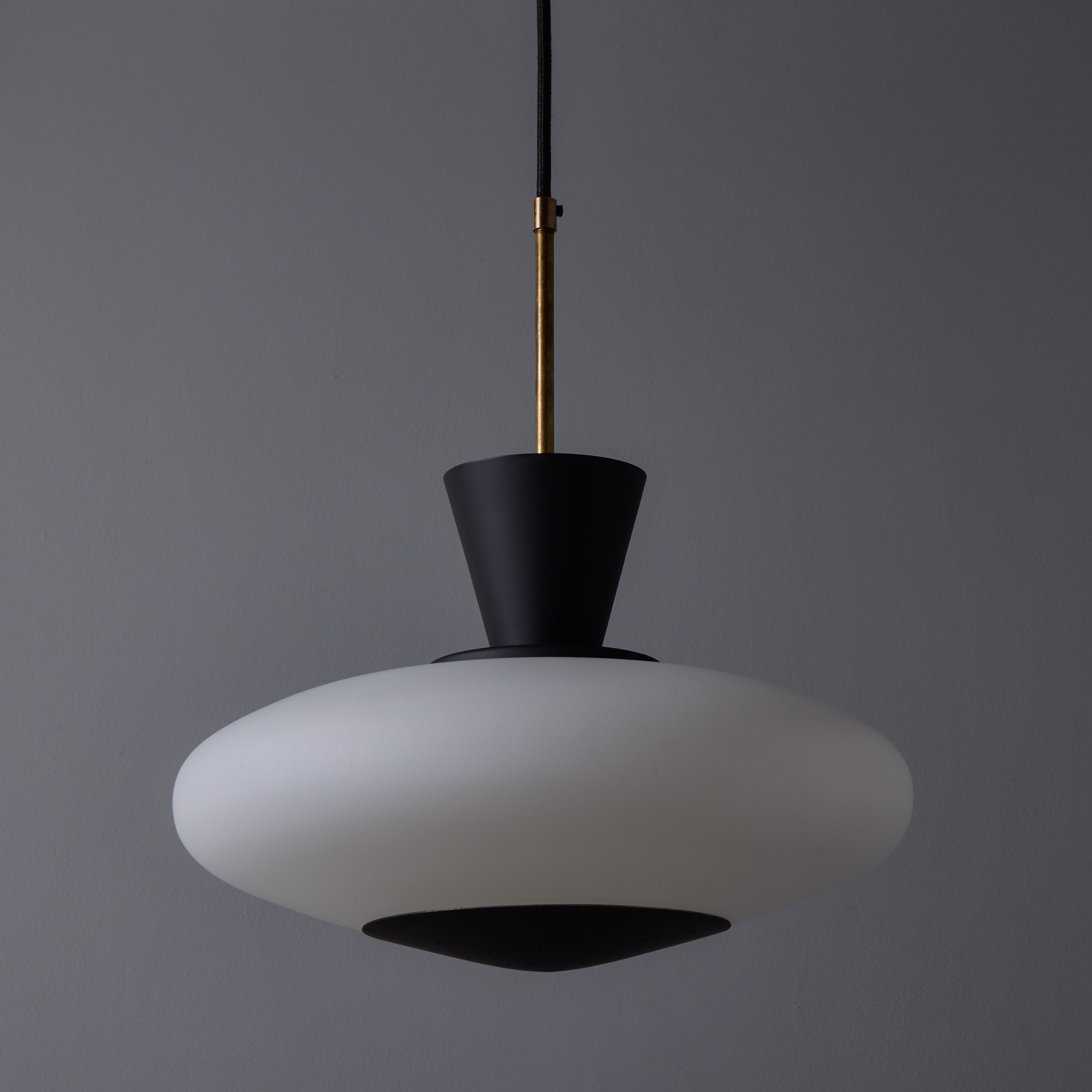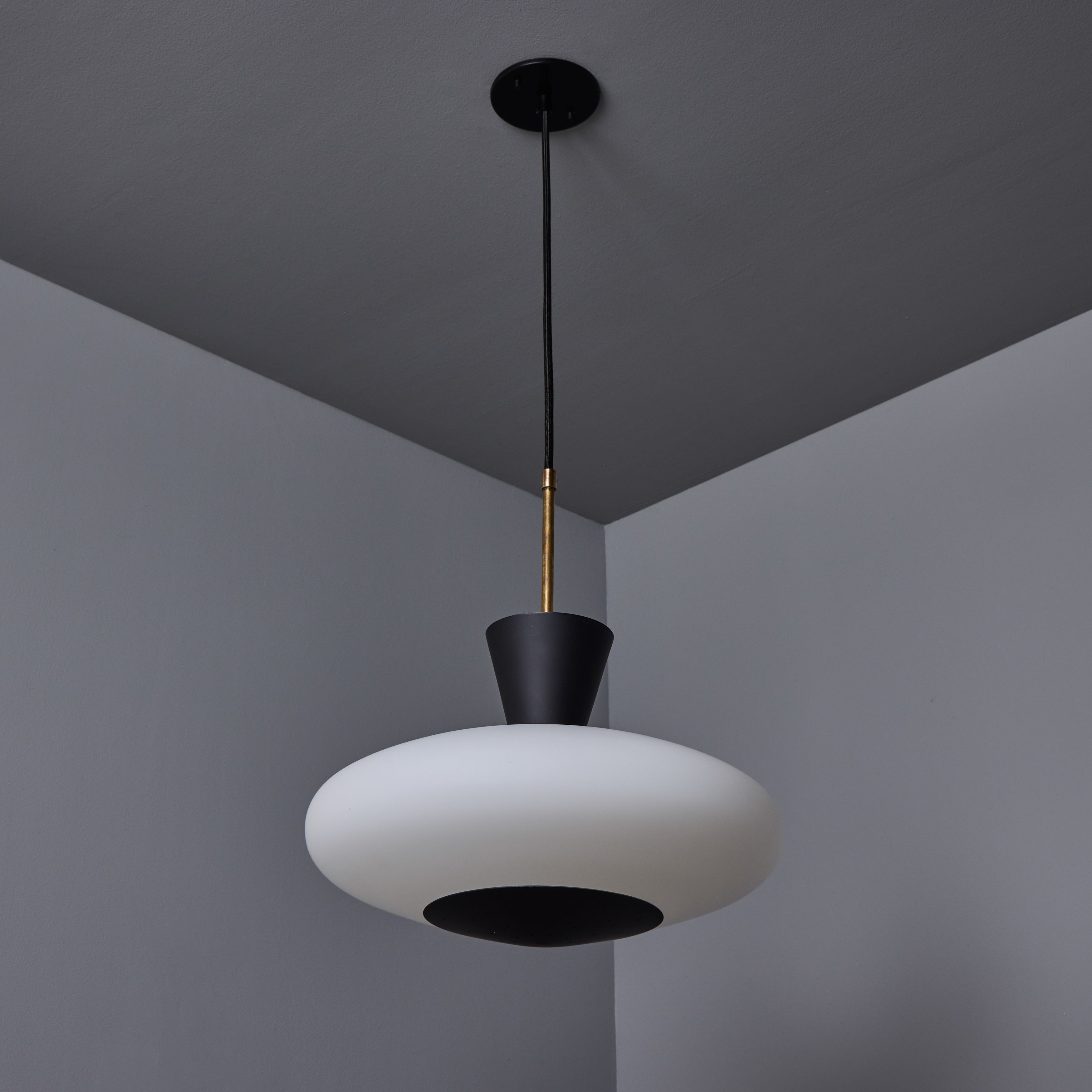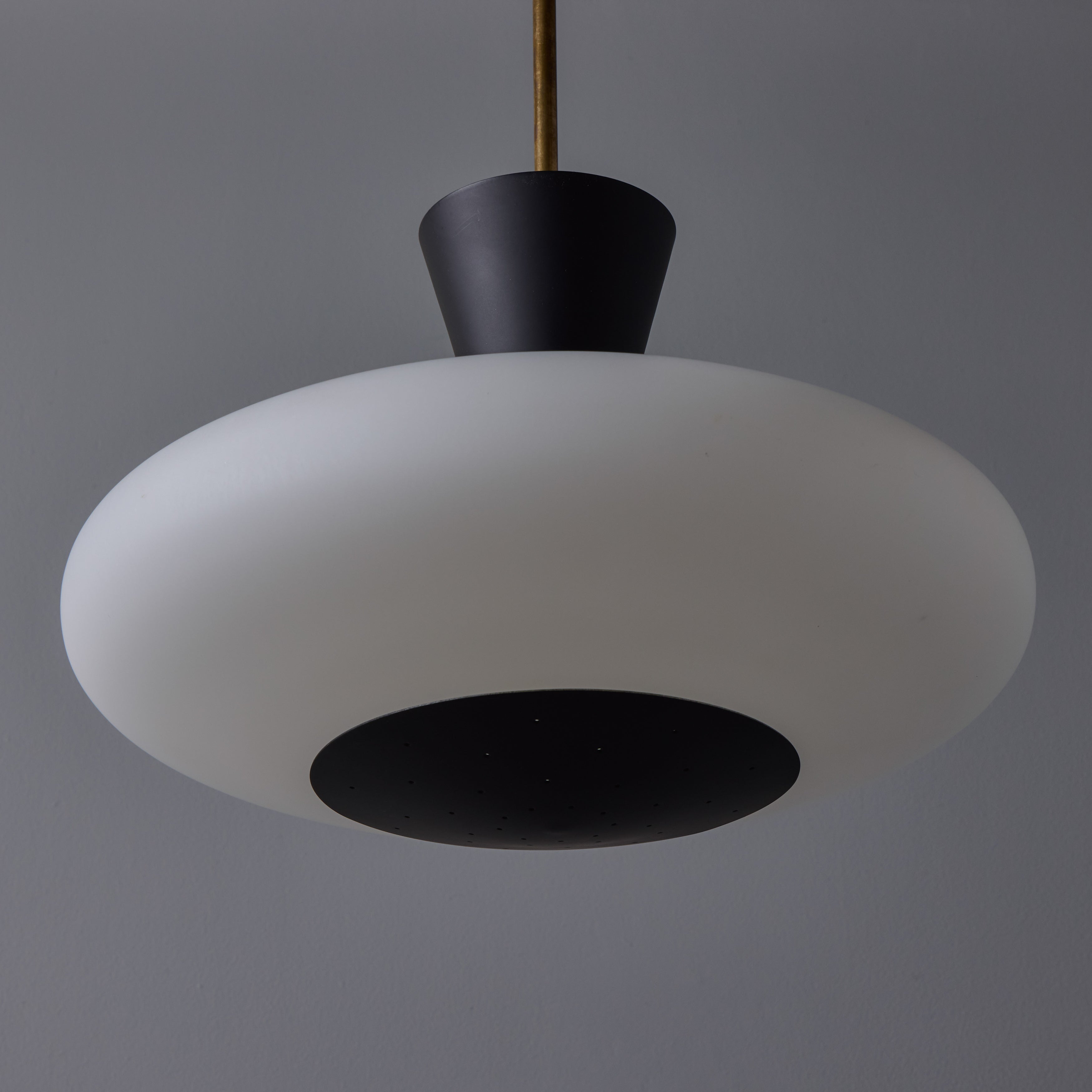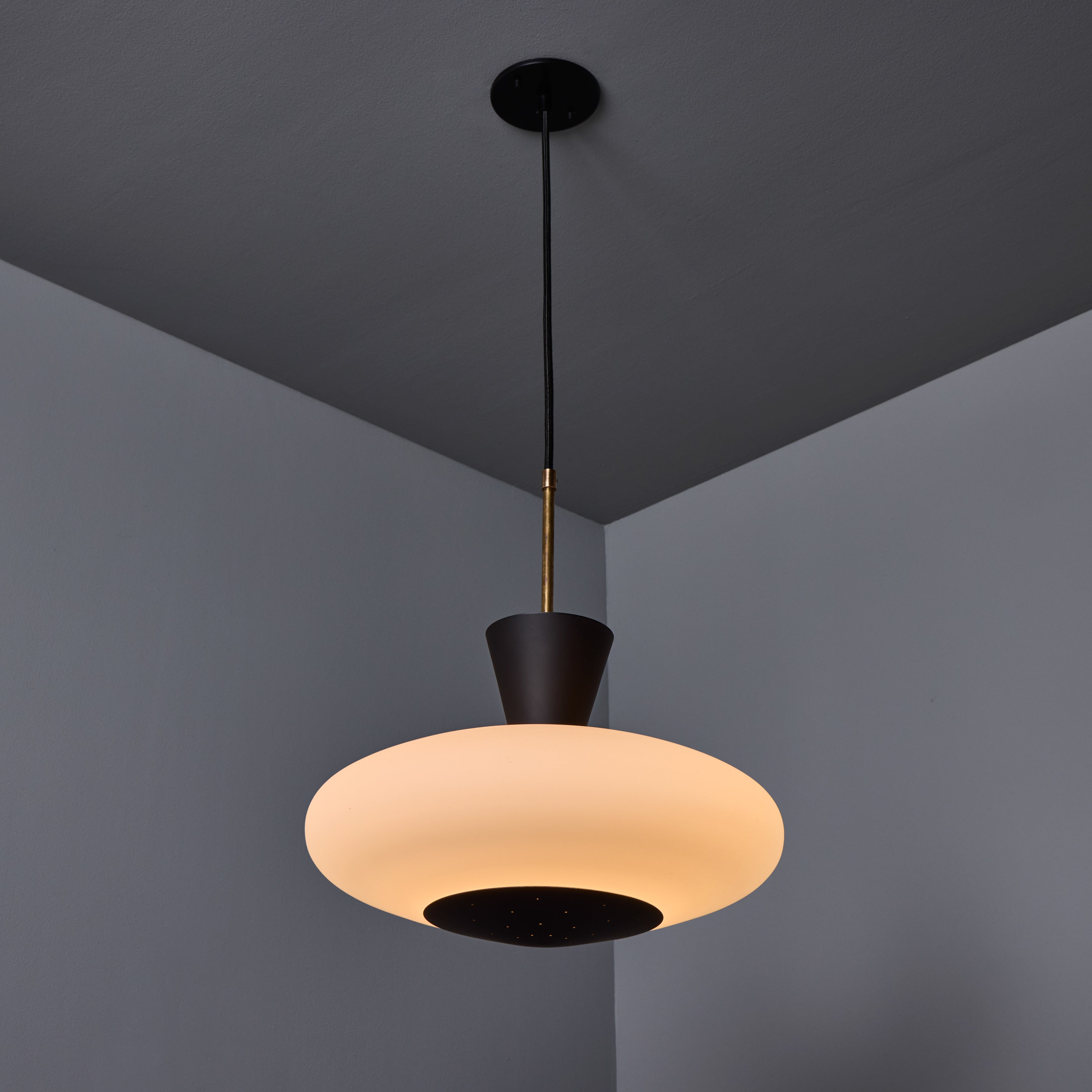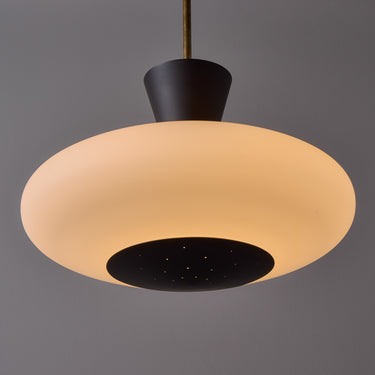 1950s Stilux Opaline Glass and Perforated Metal Pendant Lamp