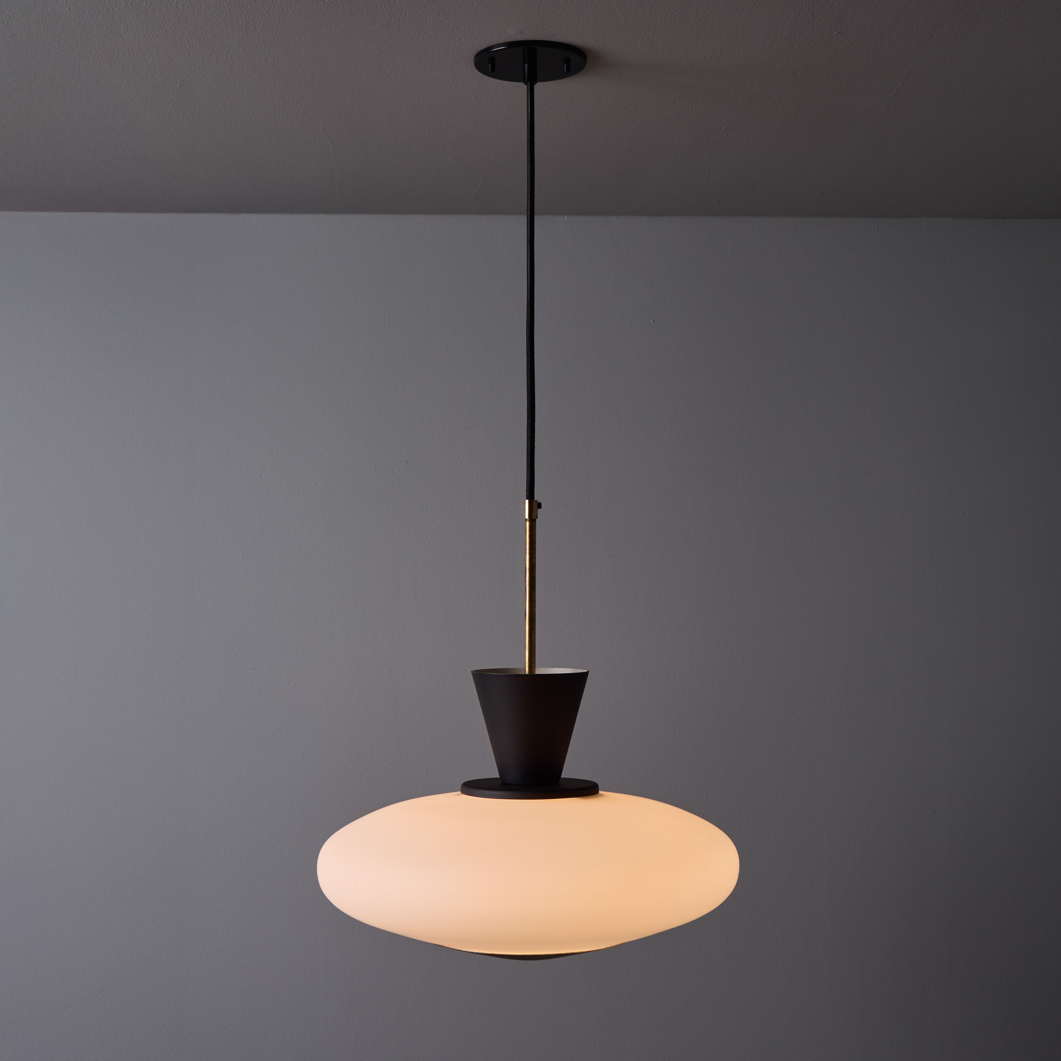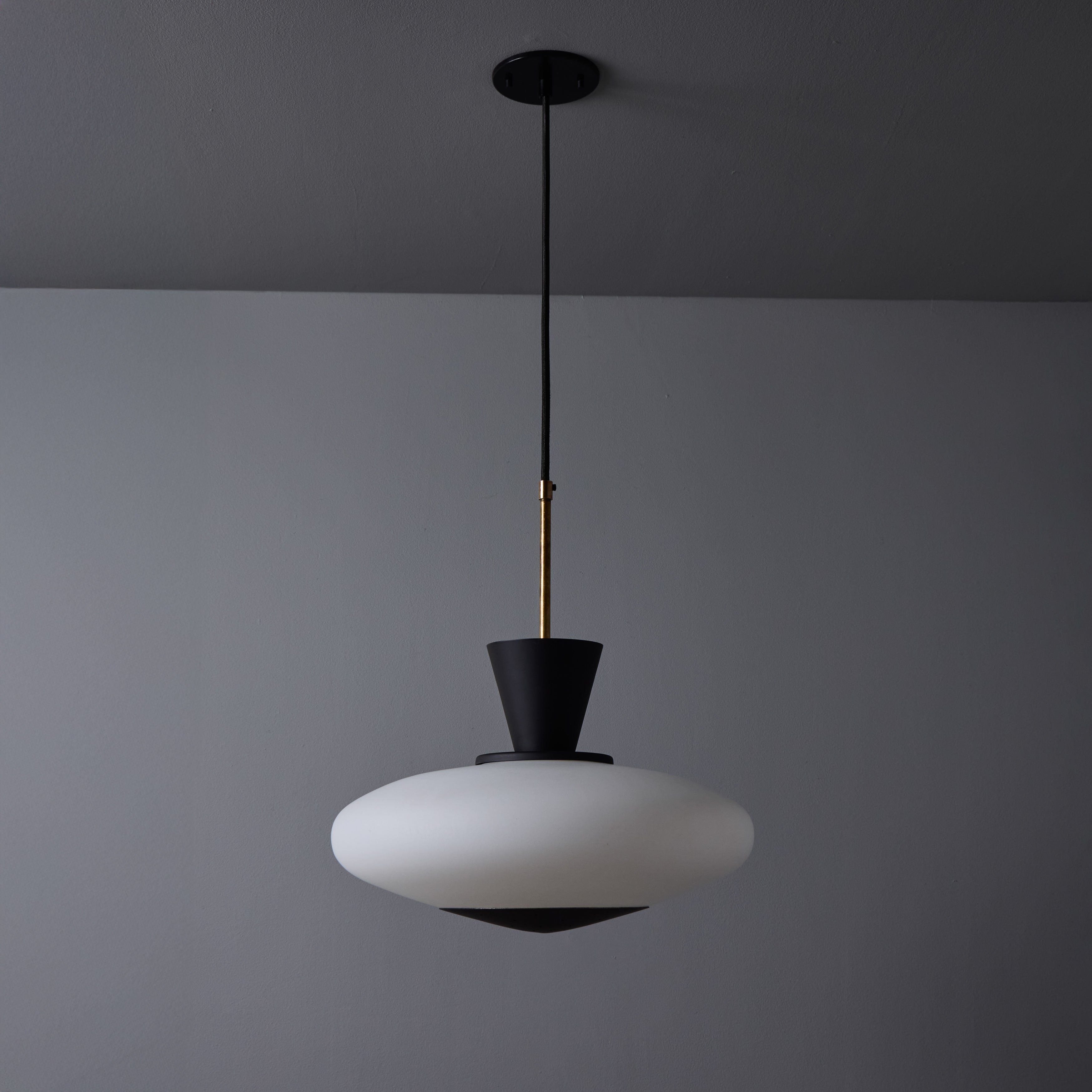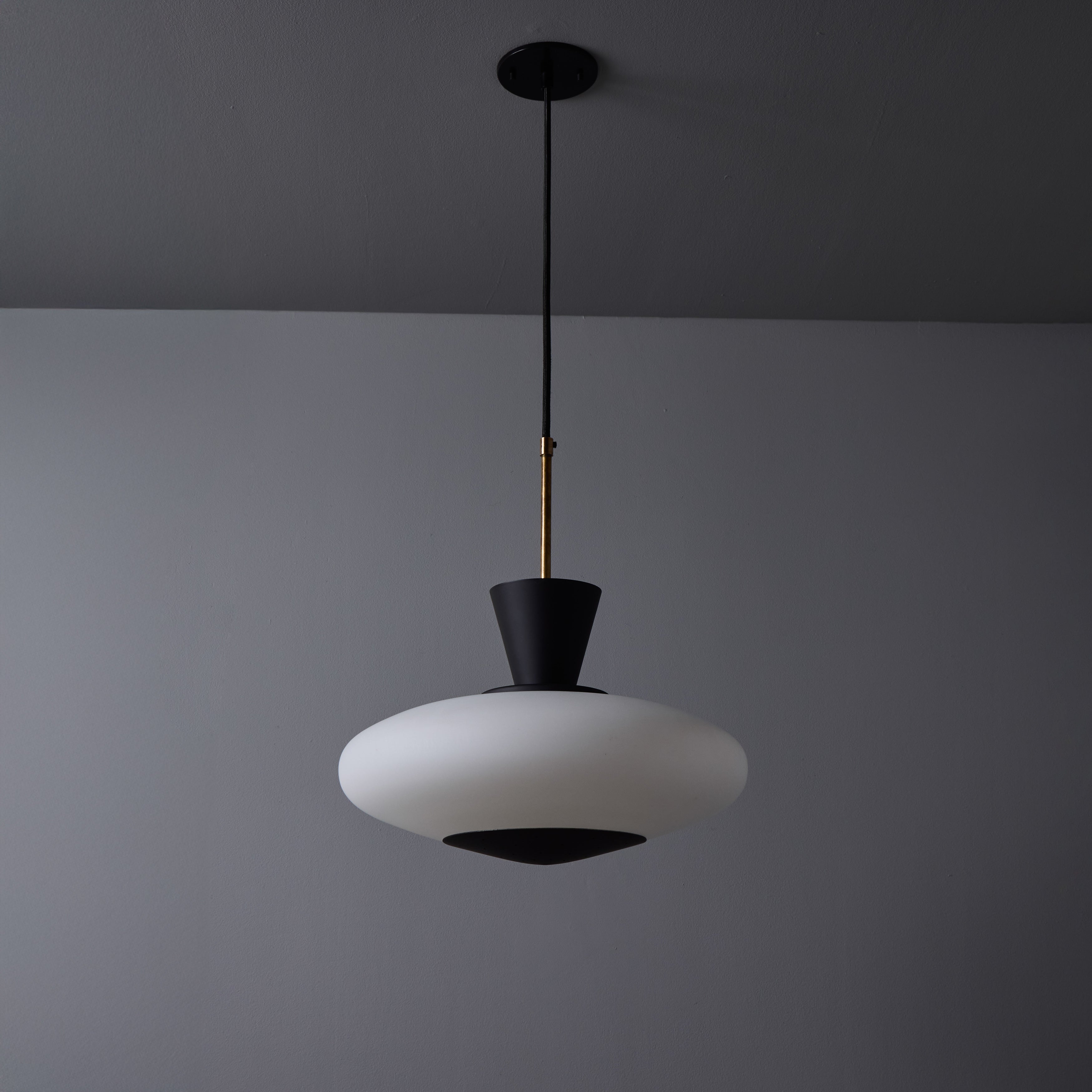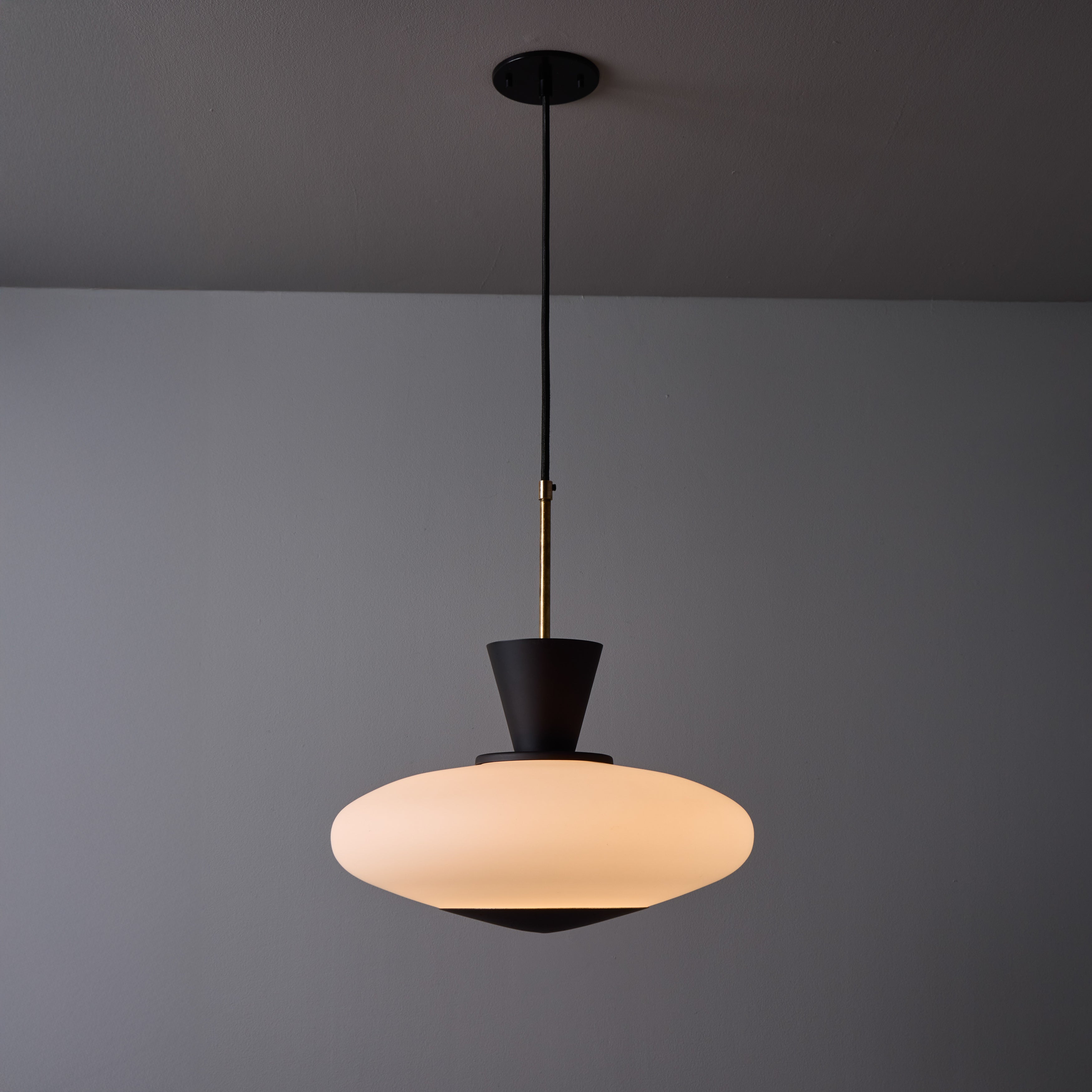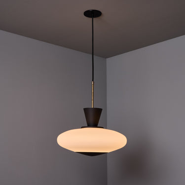 1950s Stilux Opaline Glass and Perforated Metal Pendant Lamp
