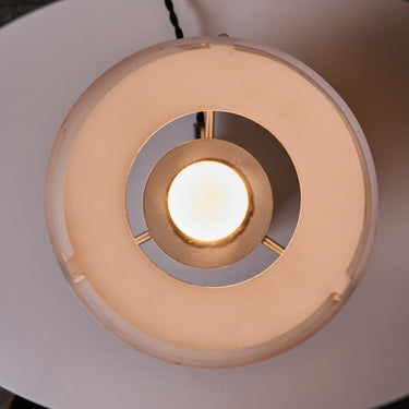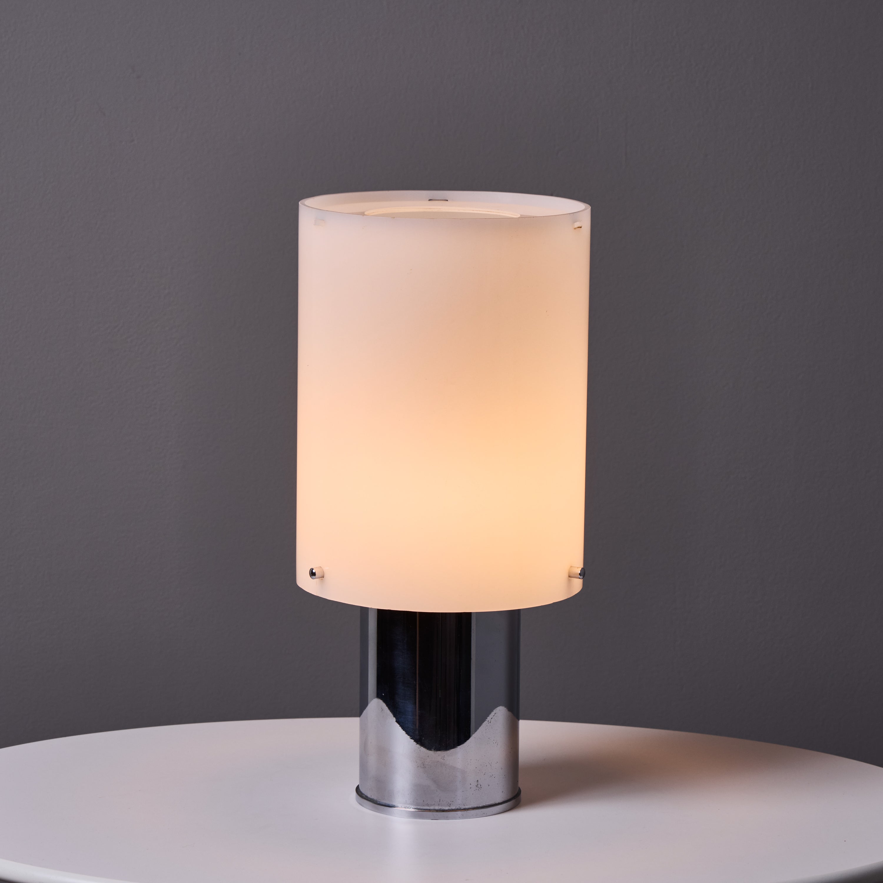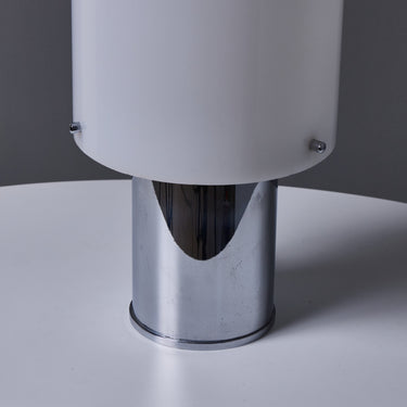 Executed in chromed metal and opaline perspex (acrylic). The simplicity of Jakobsson's design and the sculptural shaping of the materials make for an incredibly refined example of his highly influential approach to lighting. Marked with manufacturer's label.