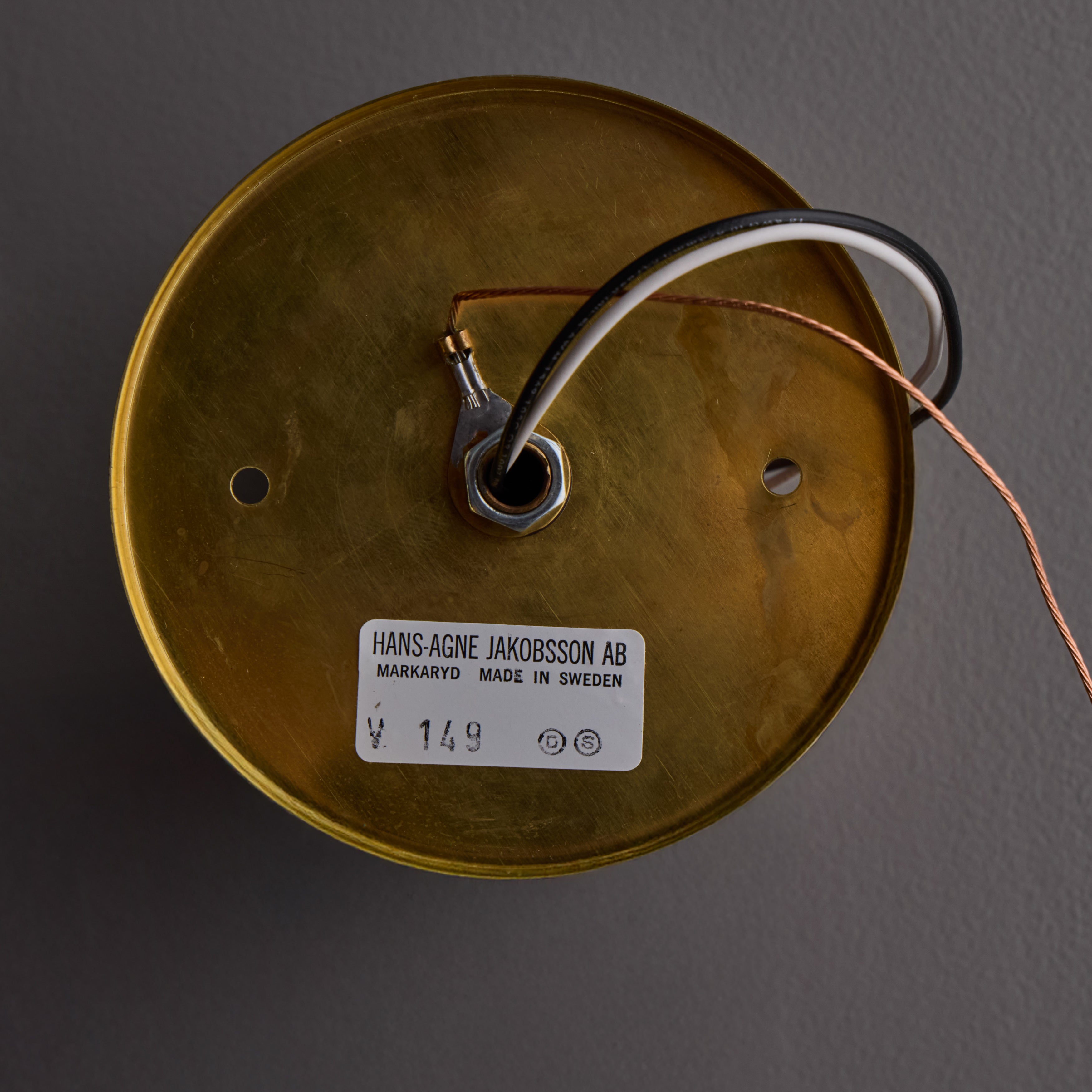 1960s Hans Agne Jakobsson #V149 Glass & Brass Wall Lamp for Markaryd