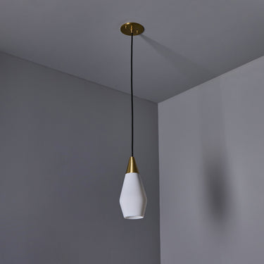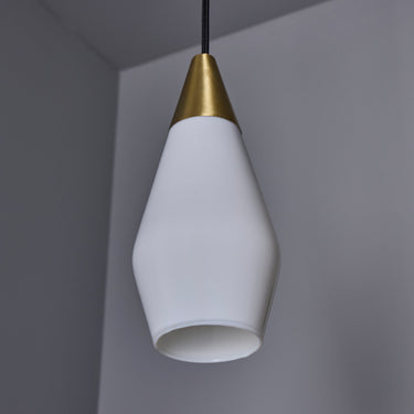 1960s Opaline glass geometric pendant lamp attributed to Mauri Almari.