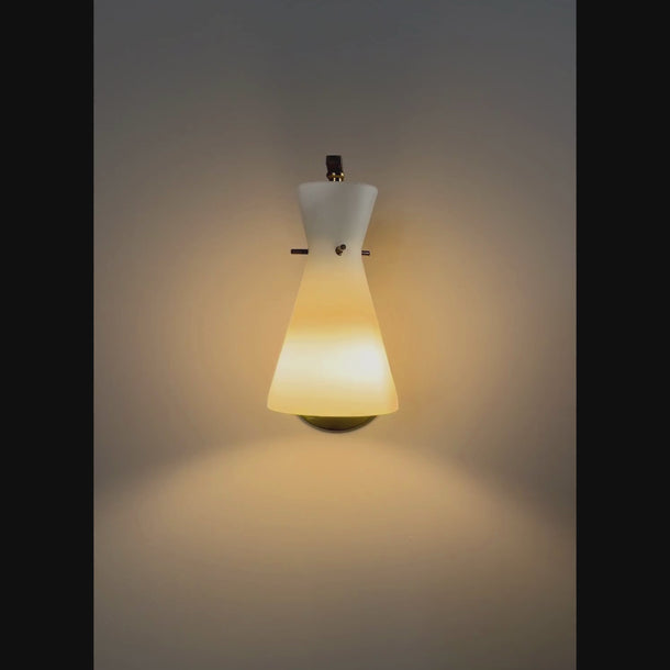 1960s Stilnovo Sculptural Opaline Glass and Brass Wall Lamp.