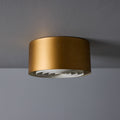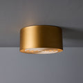 A simple geometric flush mount executed in brassed metal. Manufactured by Stockmann Orno, Finland. Unmarked. A contemporary of Paavo Tynell, the refined work of Yki Nummi has made him an increasingly valued midcentury Finnish designer by collectors in the know. (Ref literature: Stockmann Orno Catalog 1966-1969 pages 4-5).