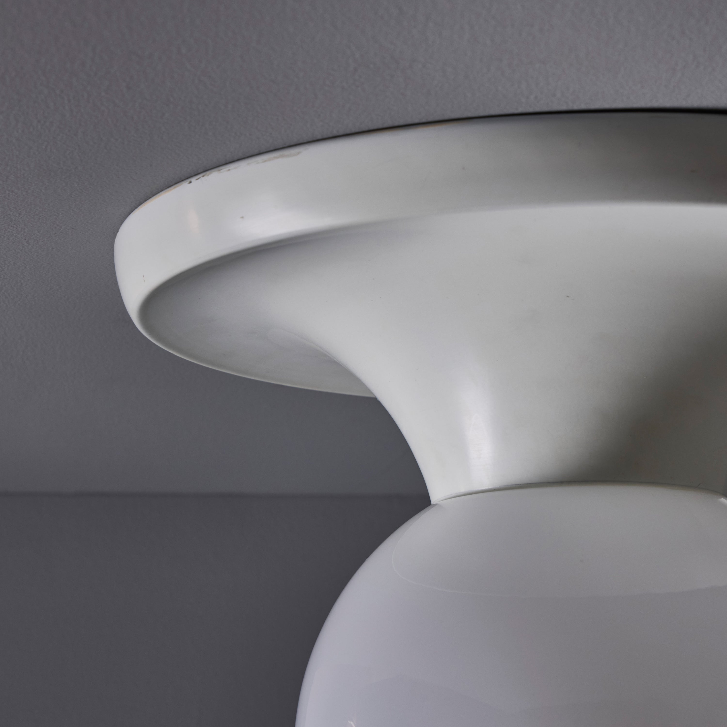 Designed in 1965, this 12.75-inch diameter light ball from Flos has a soft white finish and an opaline glass diffuser. An incredibly refined and iconic midcentury design that is quintessentially Italian. Also available in several other finishes and sizes in separate listings.