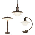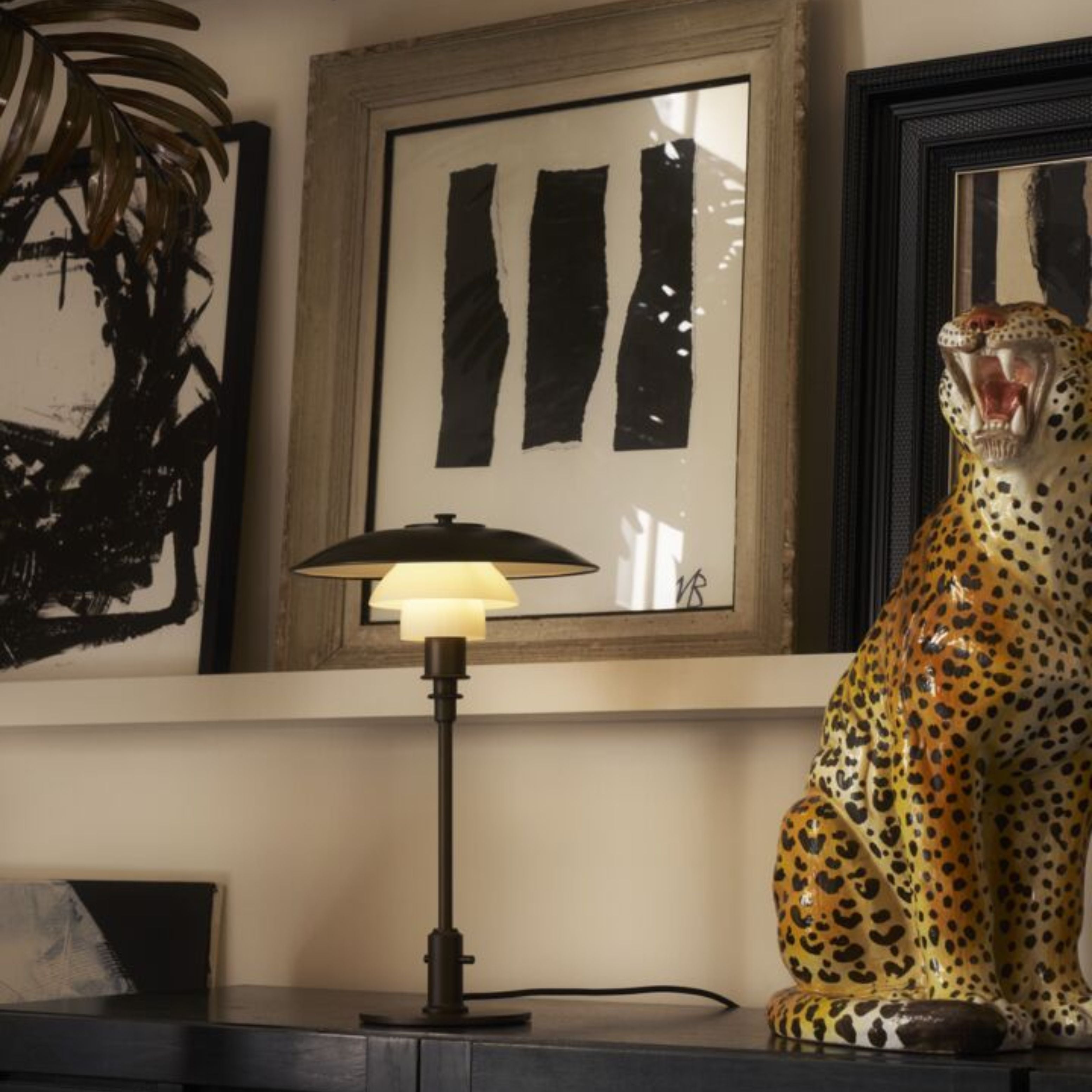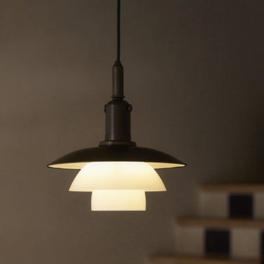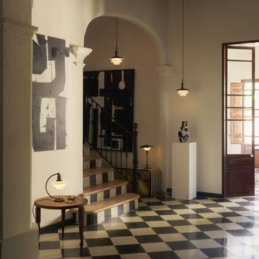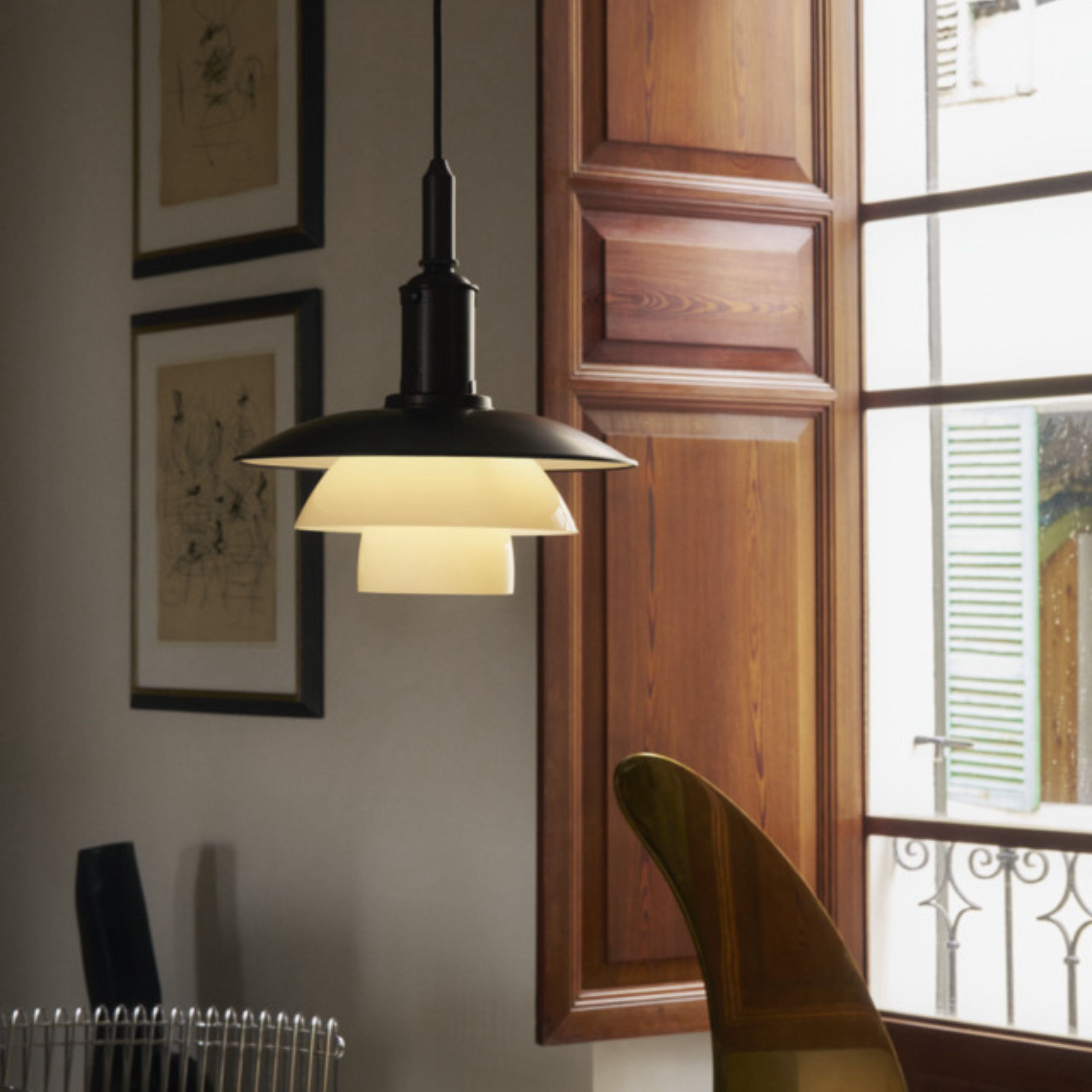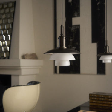The collection features mouth-blown opal white glass shades and a beautiful lacquered dark brown aged brass finish, reminiscent of the original PH lamps from the 1920s and 1930s. Paired with elegant opal white glass shades, they add a classic touch of elegance to any setting.