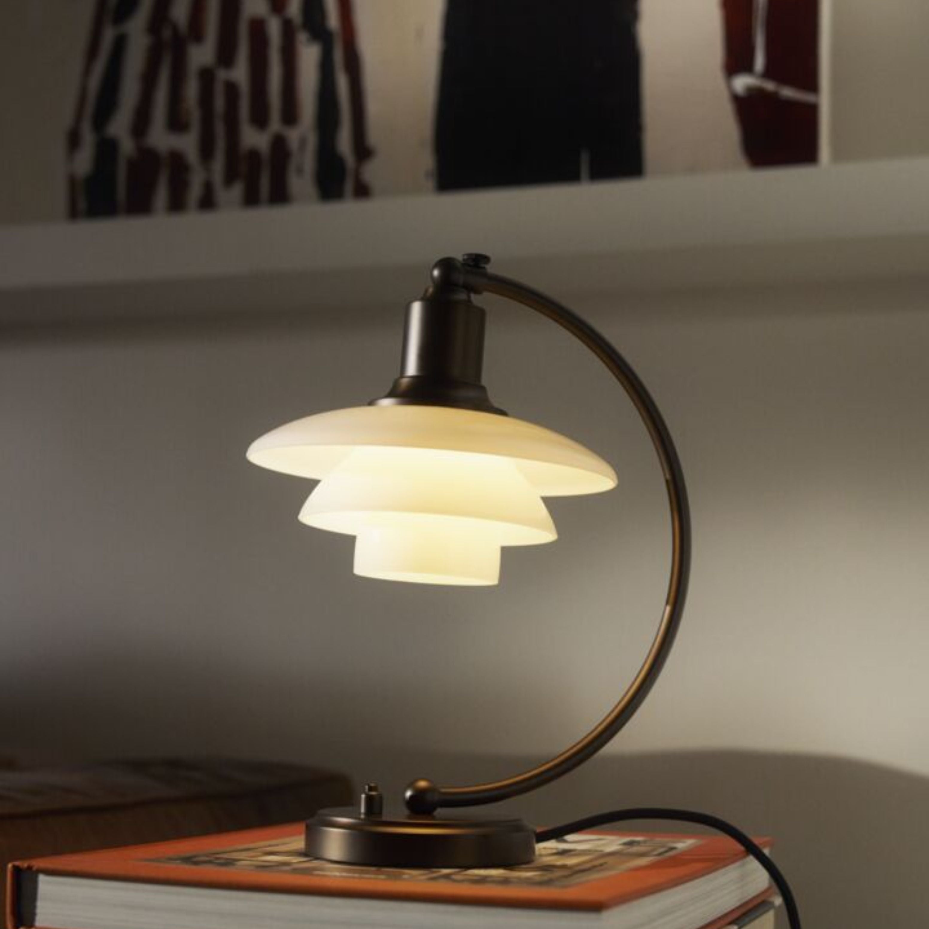 The PH Aged Brass collection consists of the PH 2/2 Luna Aged Brass Opal Table Lamp, the PH 3/3 Aged Brass Opal Pendant and the PH 3/2 Aged Brass Opal Table Lamp. Each offers the flawless lighting that Poul Henningsen’s designs are known for.