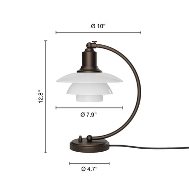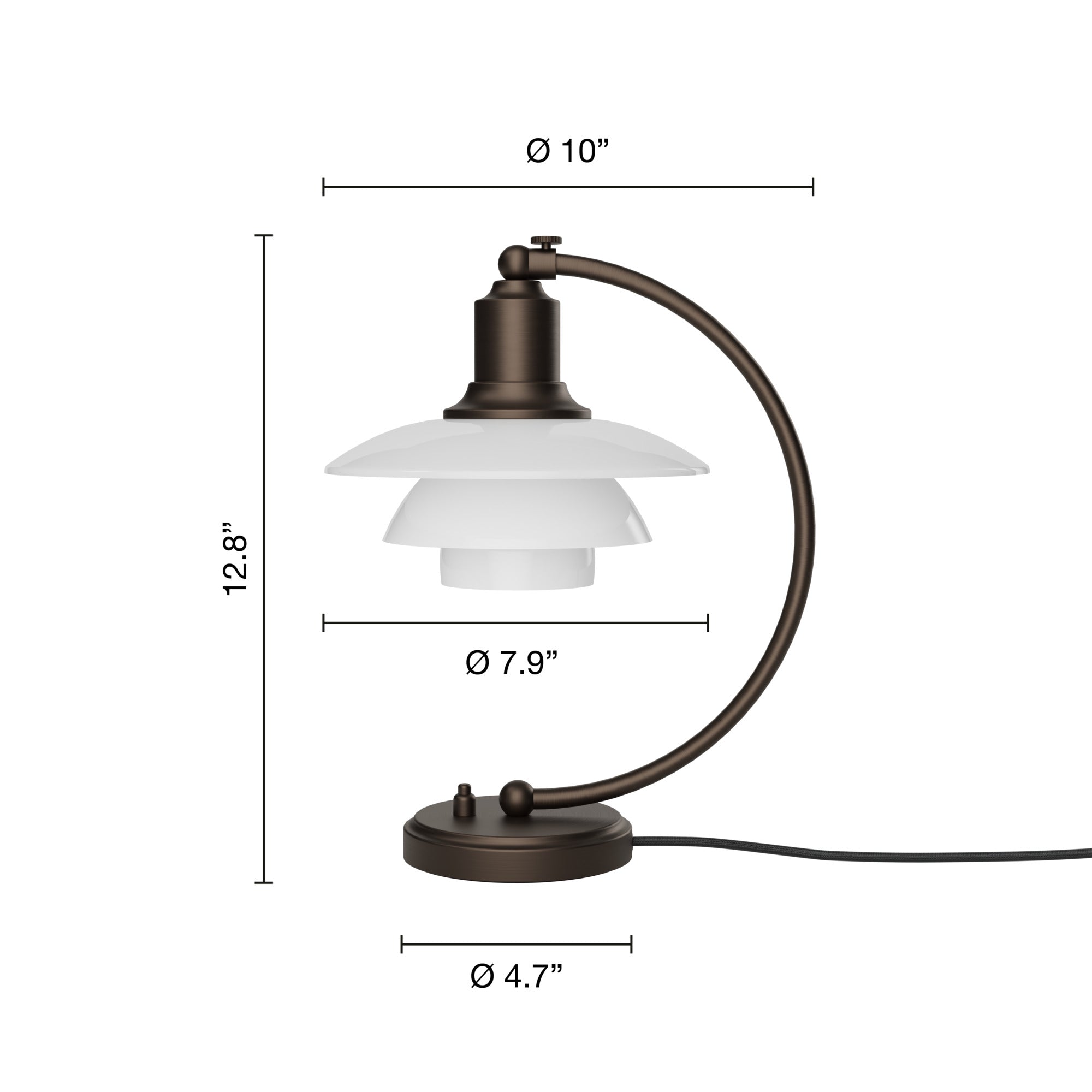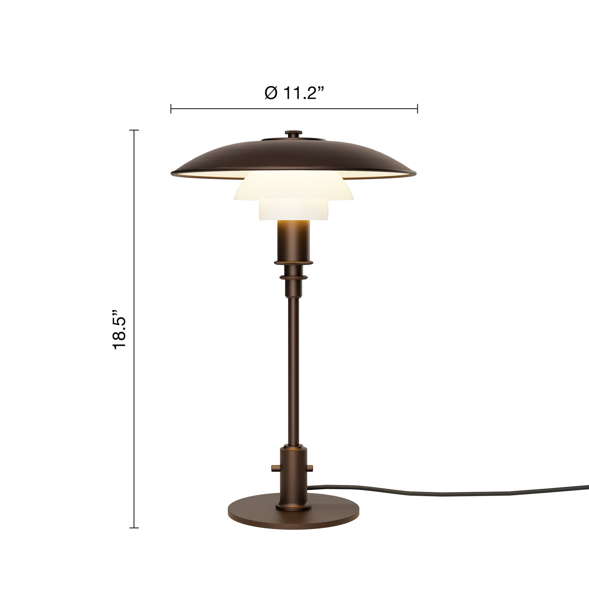 Dimensions: Luna Table Lamp Height: 12.8" Depth: 10"; PH 3/2 Table Lamp Height: 18.5" Diameter: 11.2" PH 3/3 Pendant Height: 11.8" Diameter: 11.2"