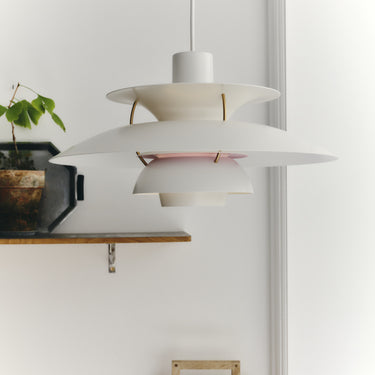 Poul Henningsen introduced his iconic 'PH 5' pendant light in 1958. Six decades later, the 'PH 5' remains the bestselling design in Louis Poulsen's portfolio, with a wide variety of hues and finishes providing elegant, iconic, glare-free light. The 'PH 5' Pendant is executed in spun steel and aluminum with rolled aluminum struts and a frosted glass diffuser.