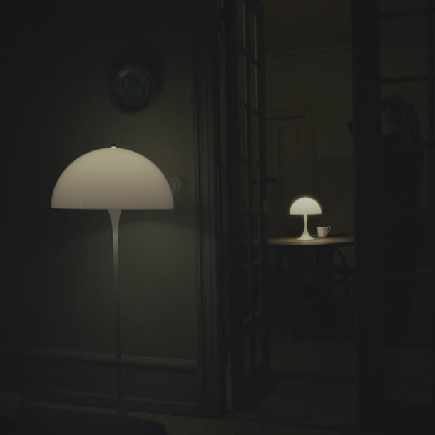 The 'Panthella' Collection was designed by Verner Panton in 1971 and remains one of his most popular lighting designs. Panton developed the Panthella lamp to give off an organic shape and have both the foot and the shade serve as a reflector.