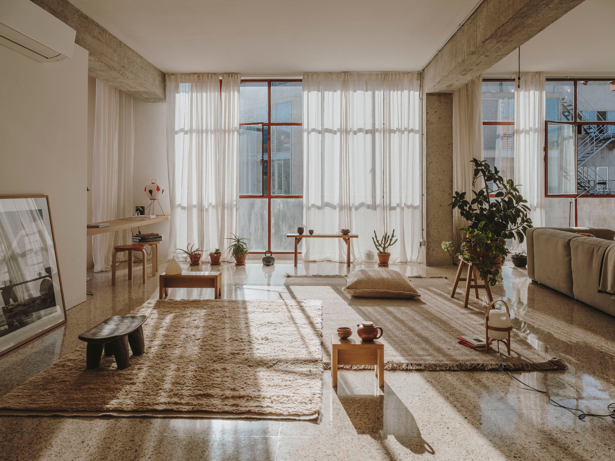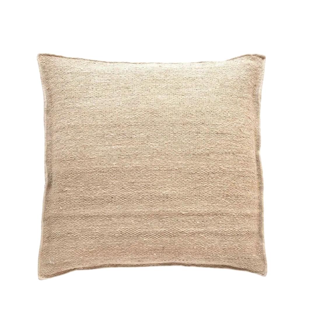 Conceived by reknowned designer Ilse Crawford, the Wellbeing textile collection for Nanimarquina uses hand-spun Afghan wool, nettle, jute, linen, Tussar silk, as well as cork, wood, raw wool and raw cotton. Each material is carefully sourced. These large, heavy floor pillows are executed in natural, sustainable and local fibers that are hand-spun, bleach-free and dye-free and made by local artisans using traditional craft techniques.