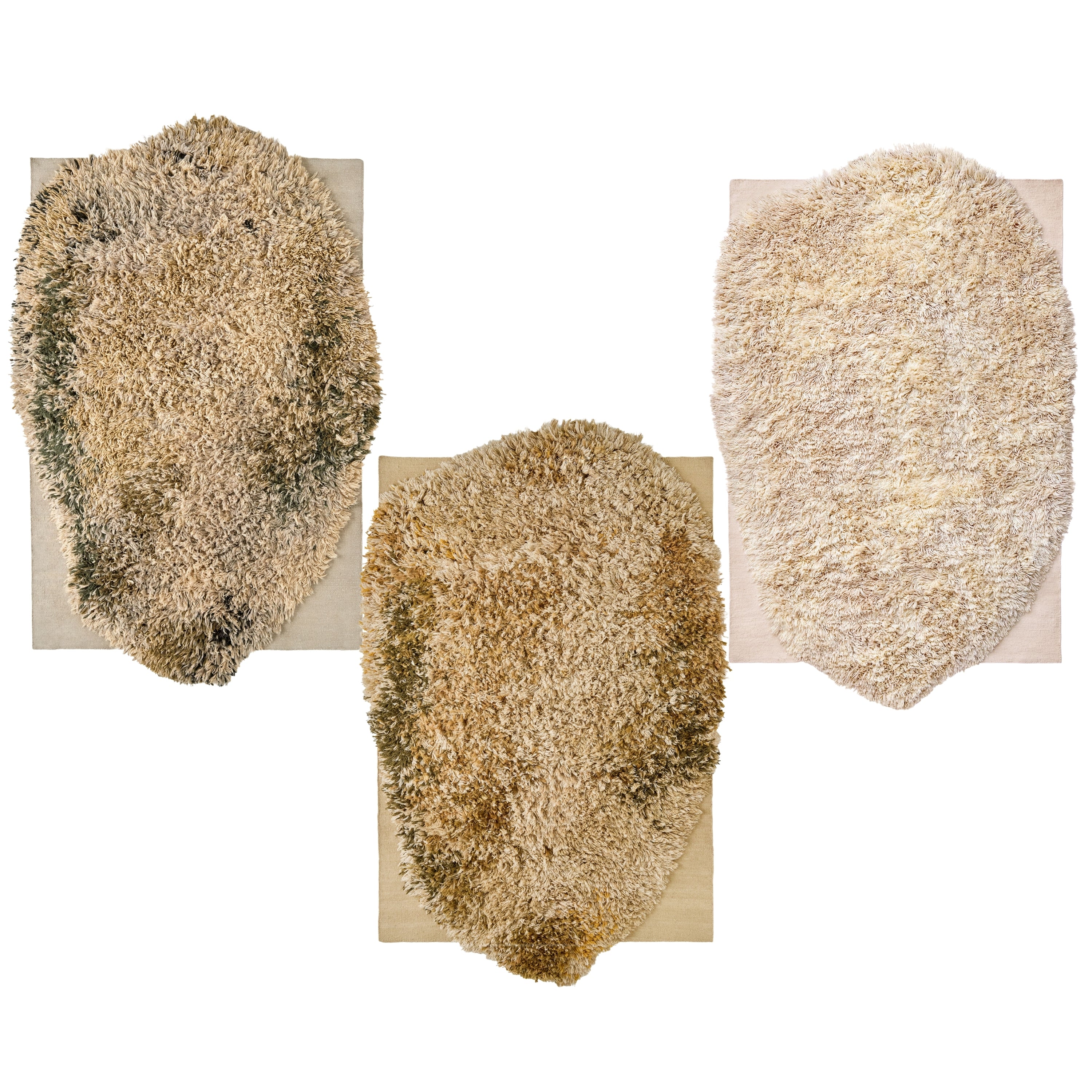 Price per item. Executed in Afghan wool, New Zealand wool, new wool and jute. Alga is available in 3 colors (Off White, Ochre and Grey) and 4 sizes. Ships within 10 days for two smaller sizes. Lead time for two larger sizes is 16 weeks. Please contact us for time-sensitive projects or custom orders.