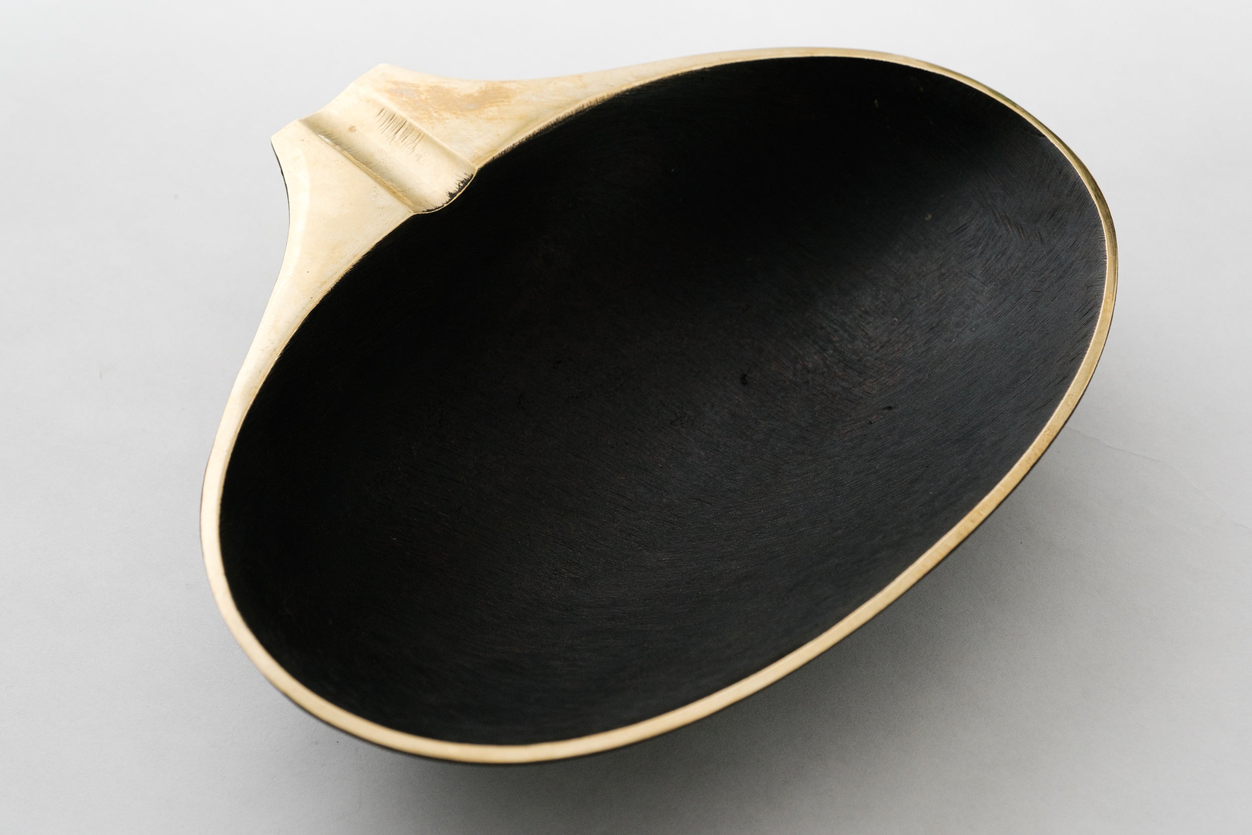 Designed in the 1950s, this incredibly refined and sculptural Viennese bowl is executed in polished and darkly patinated brass. Originally conceived as an ashtray, this decorative vessel can be used for a variety of purposes as a handsome catch-all