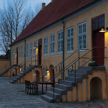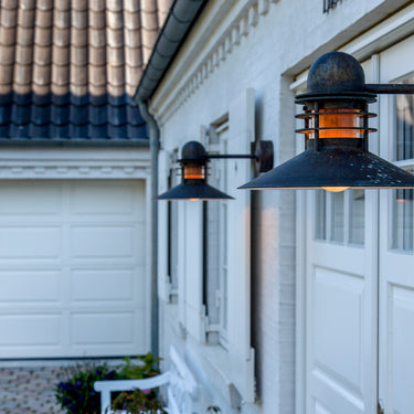 The 'Nyhavn' wall lamp was originally created by Alfred Homann and Ole V. Kjær for a 1976 design competition held by Louis Poulsen for lighting in heritage urban areas. Still in production today, the Nyhavn is available in unlimited quantities and is ideal for residential or commercial exterior lighting.