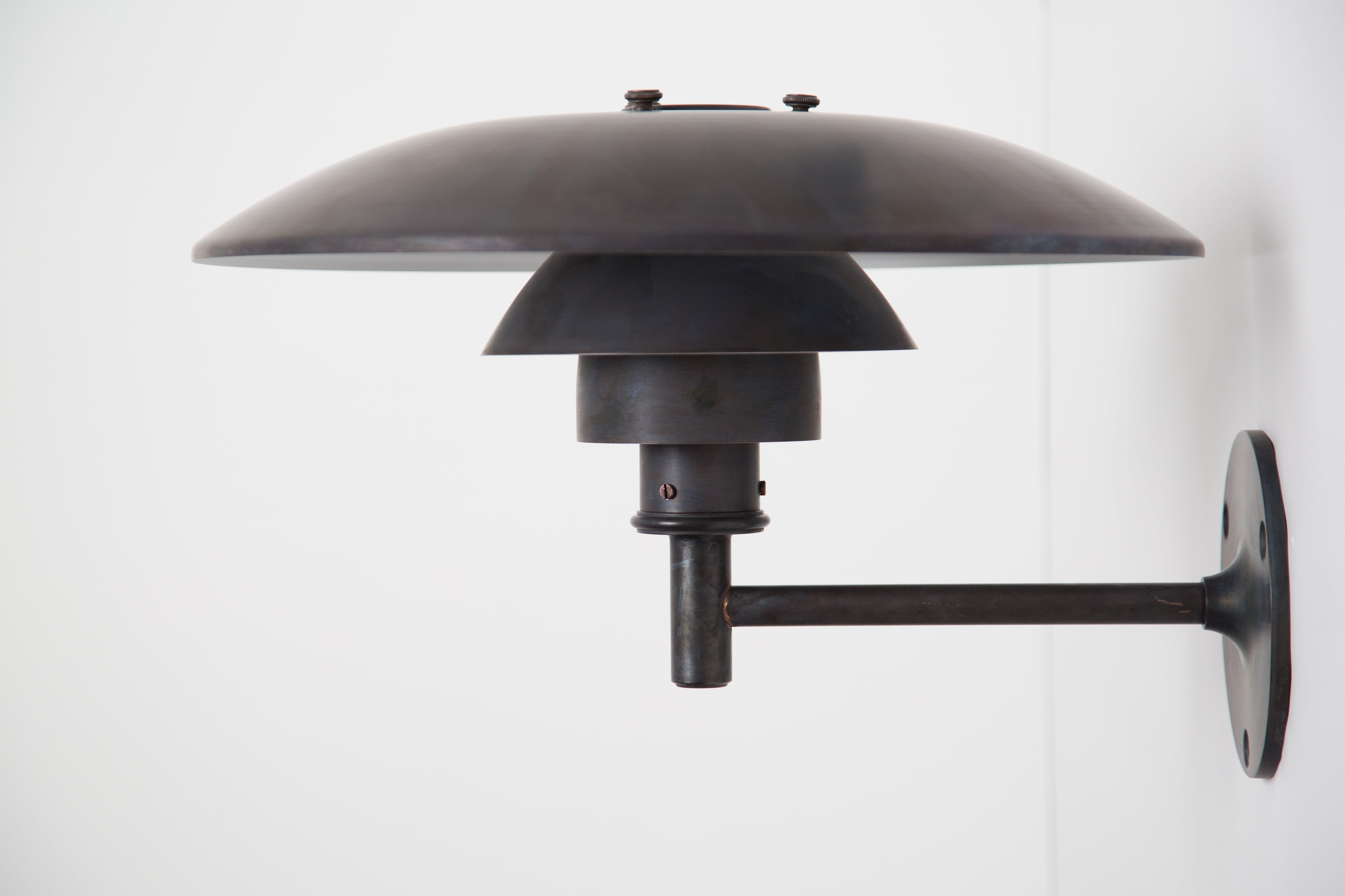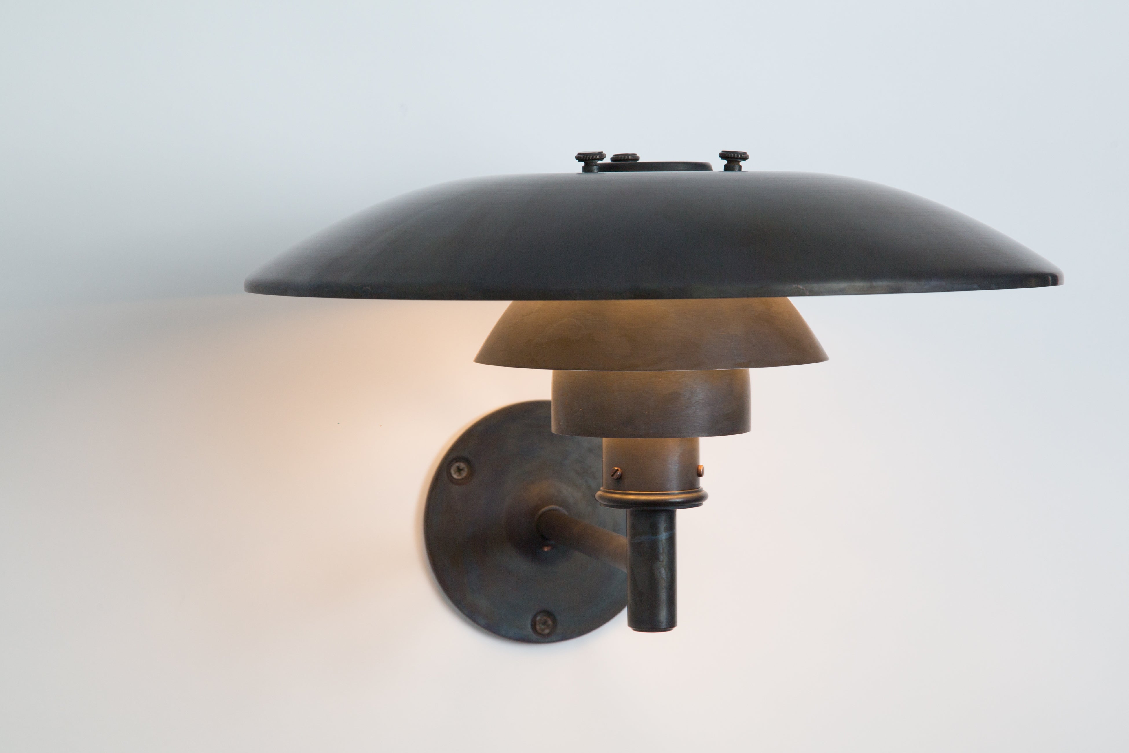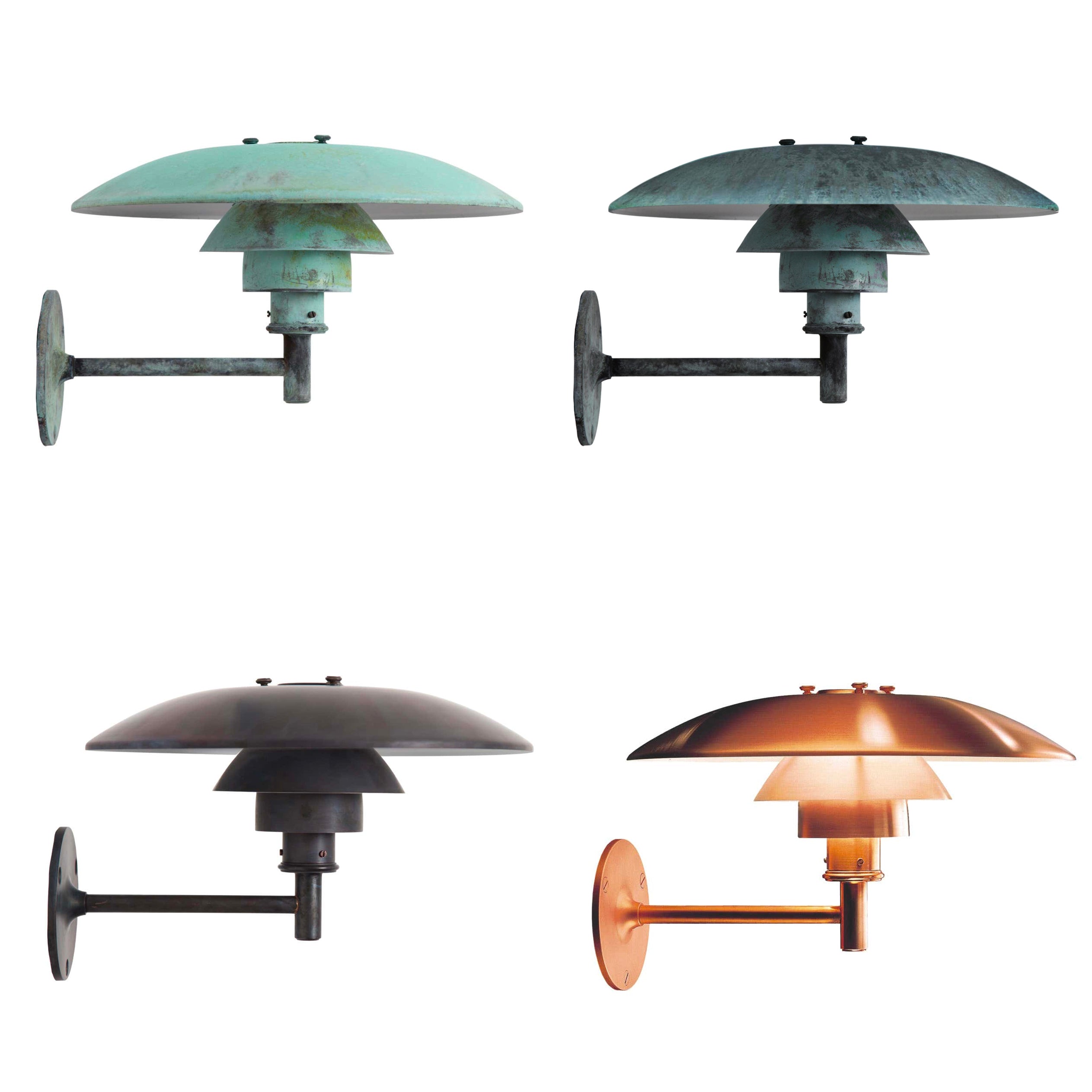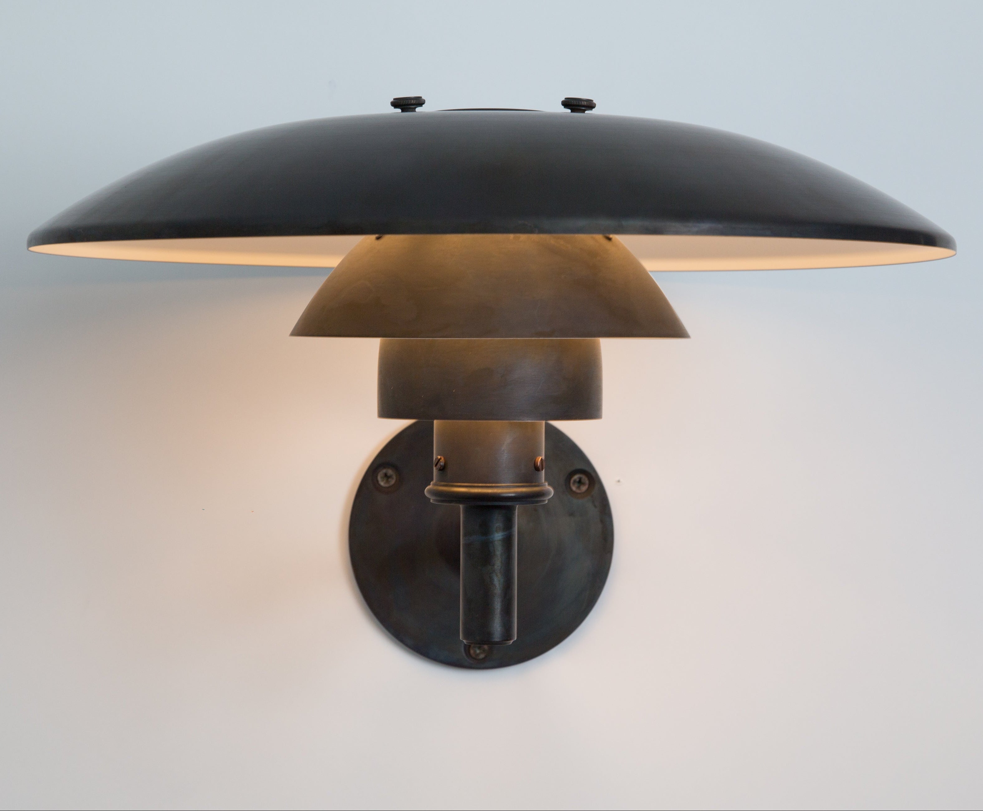 Executed in spun copper and available in raw or choice of three custom patinations, the shades of the 'PH Wall' have a matte white painted inside to ensure diffuse, comfortable light distribution.