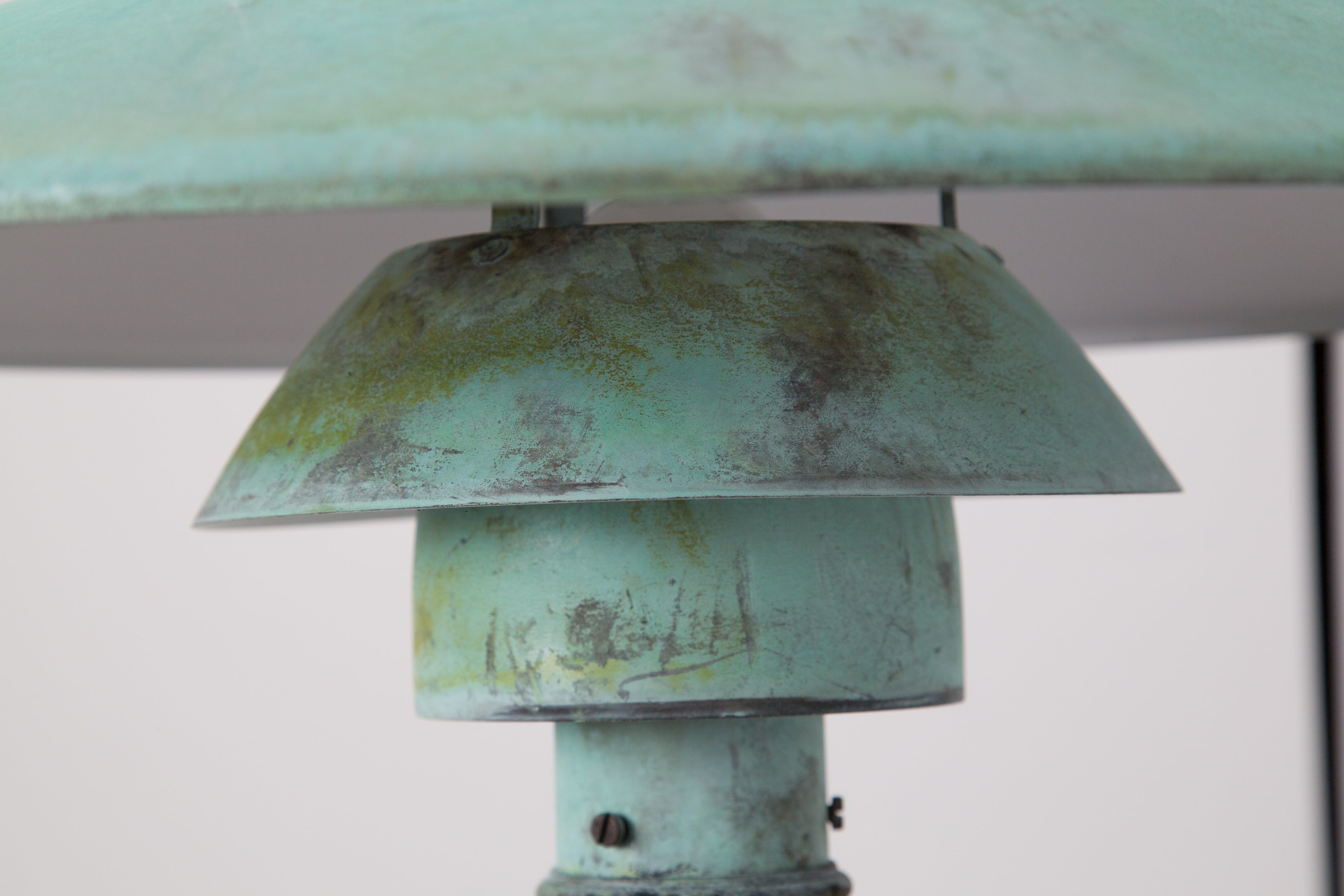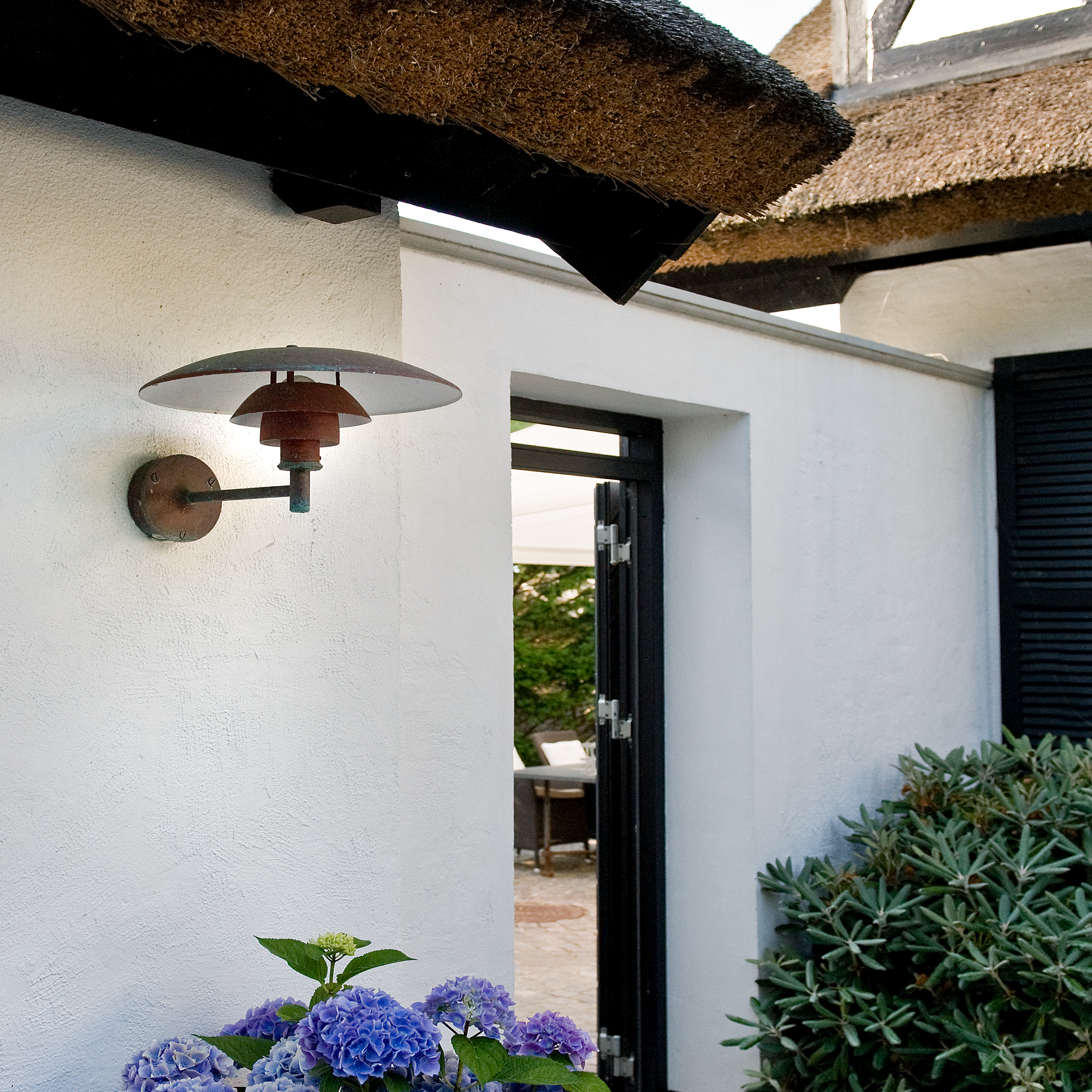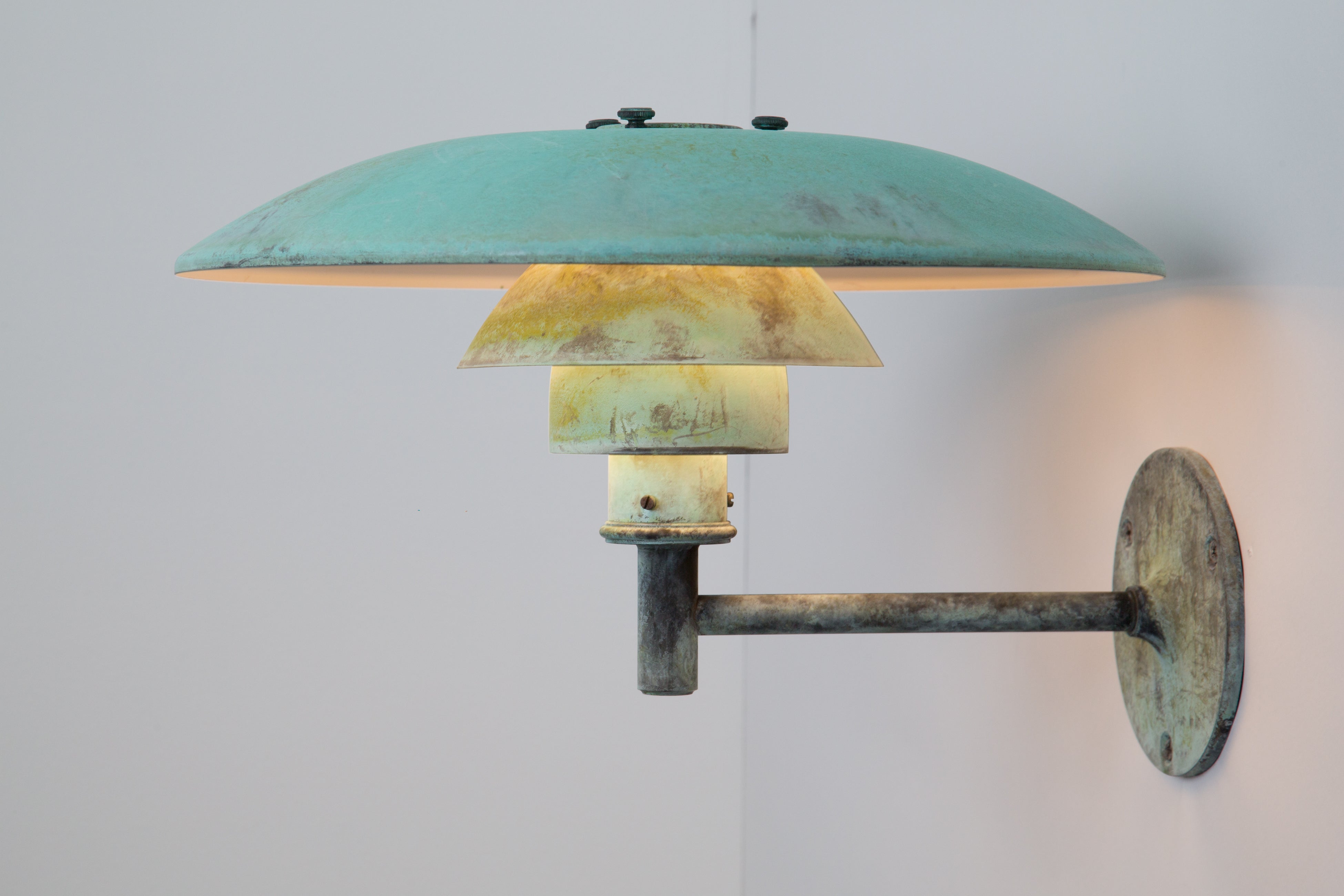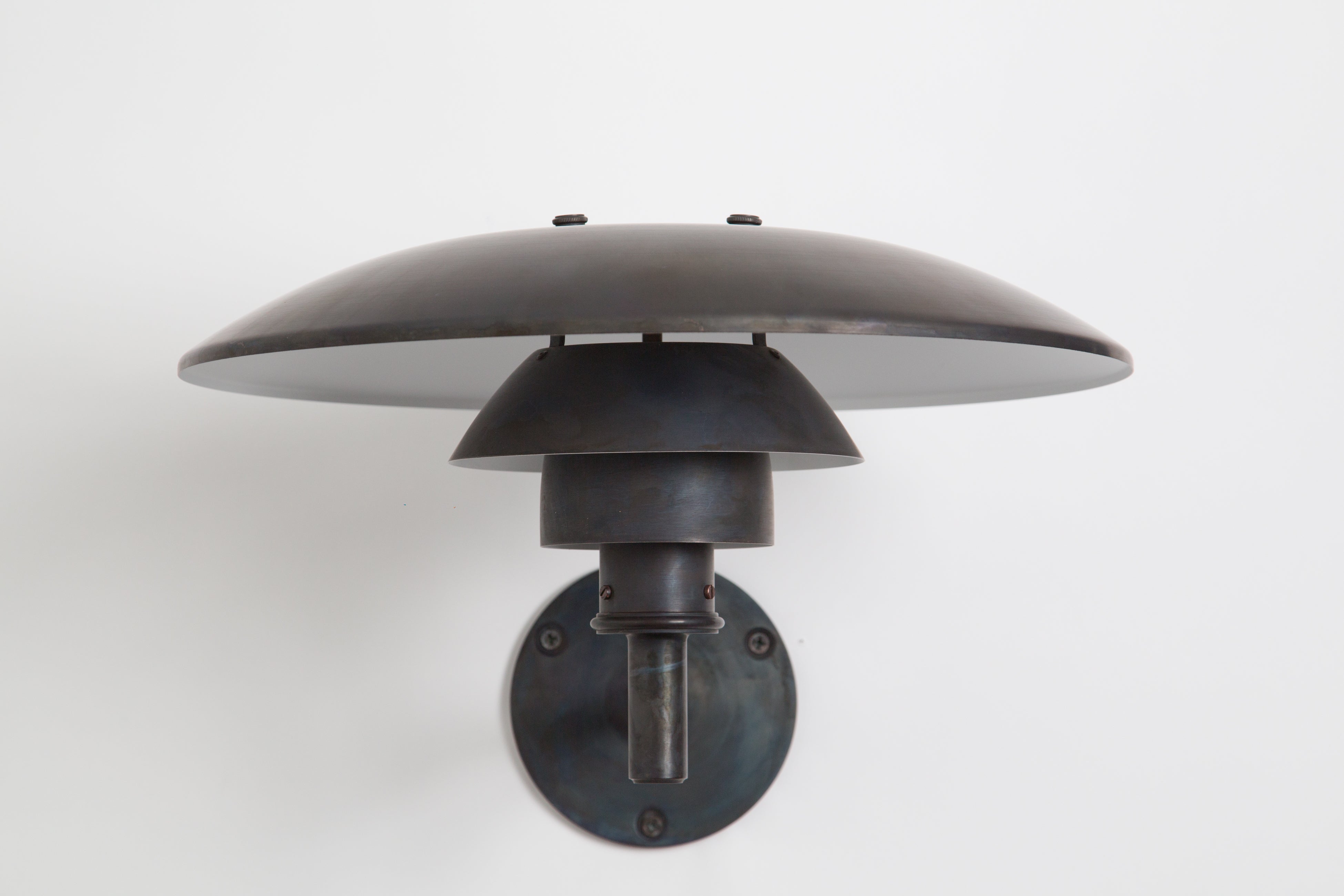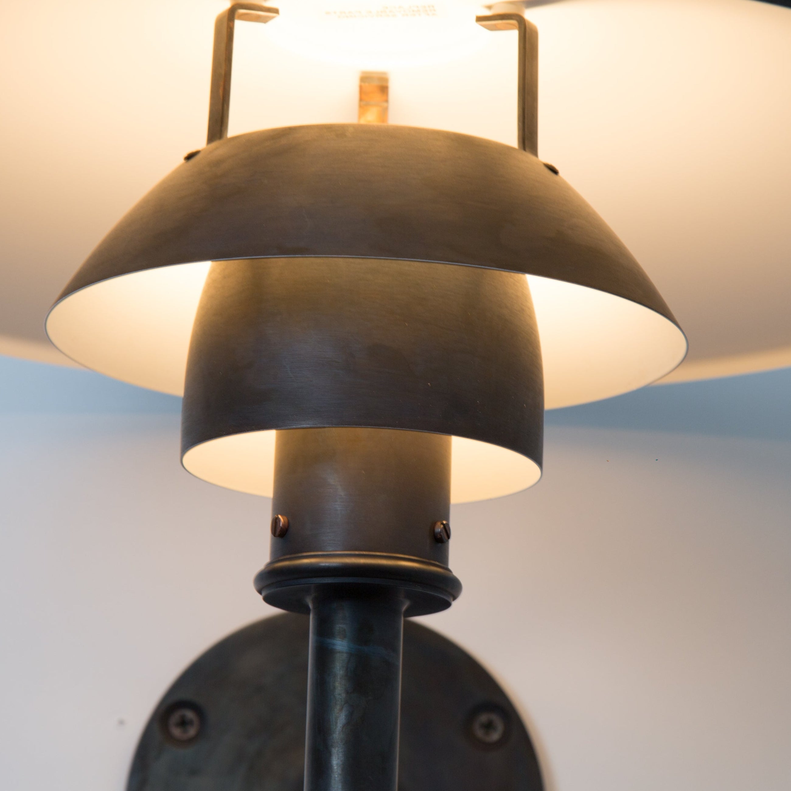 Executed in spun copper and available in raw or choice of three custom patinations, the shades of the 'PH Wall' have a matte white painted inside to ensure diffuse, comfortable light distribution.