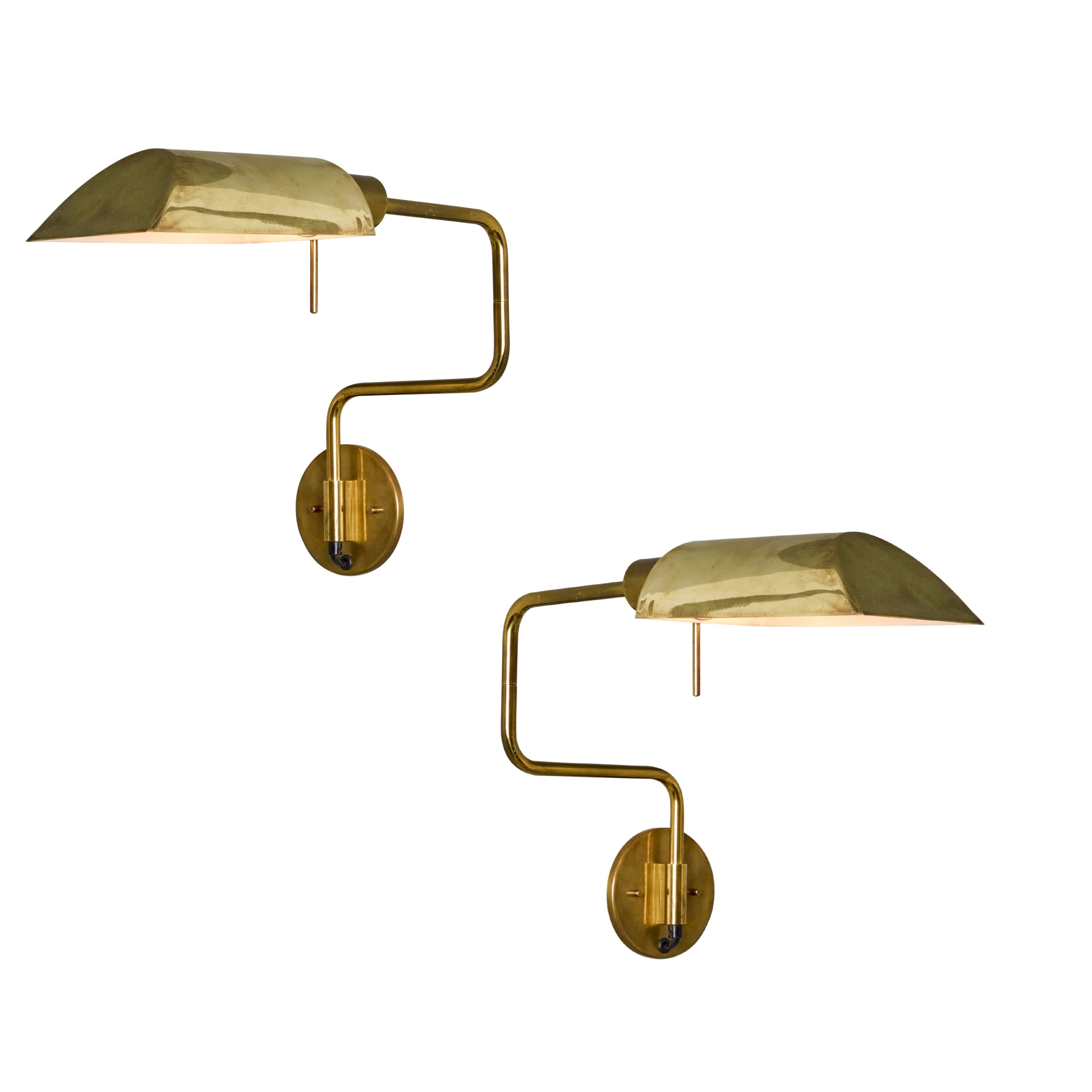 Pair of 1970s Zonca Articulating Brass Wall Lamps