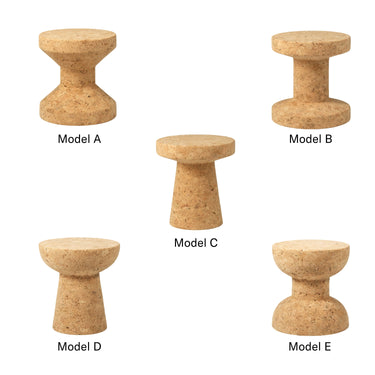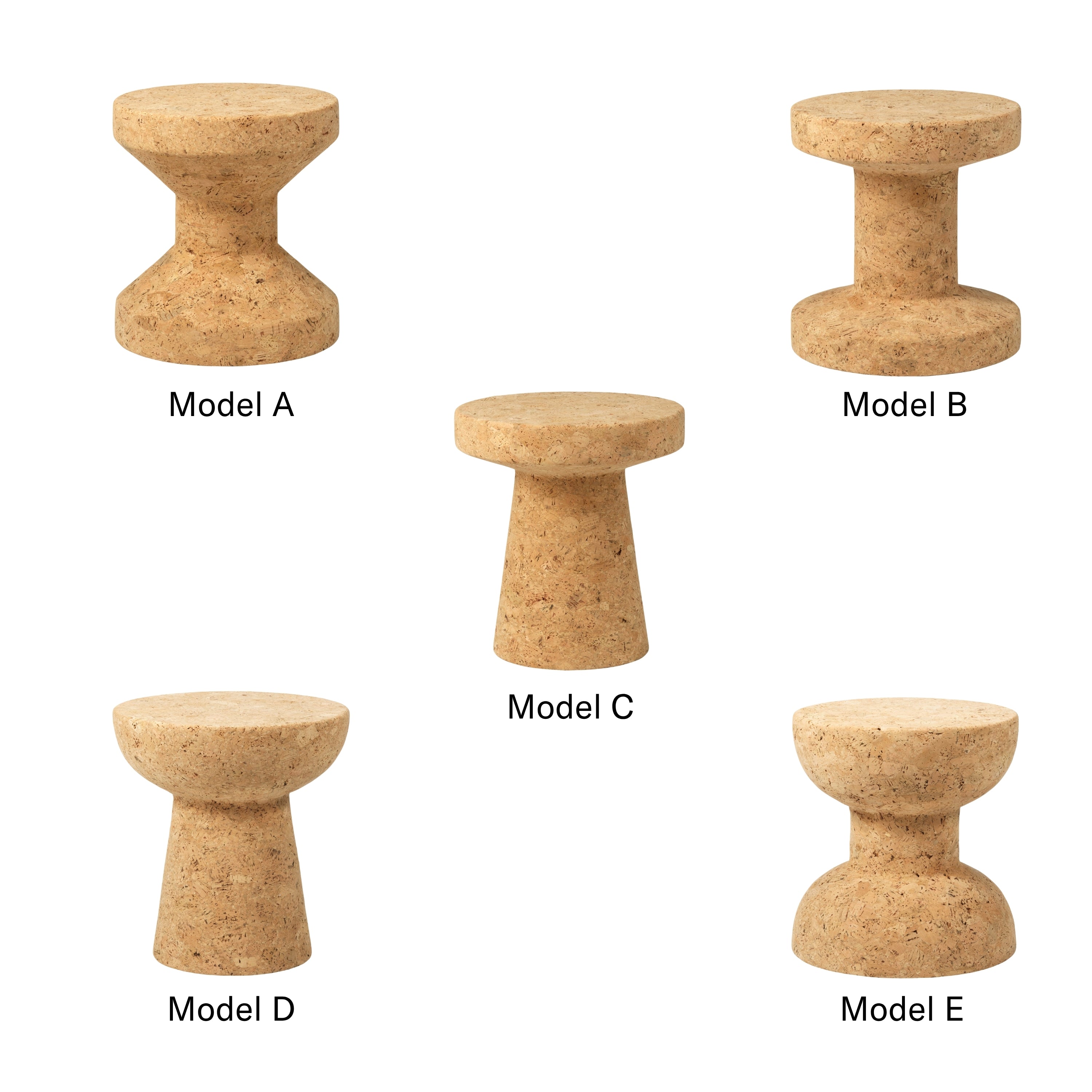 Executed in solid lathe-turned cork, the Cork Family stands firm, making them suited for use as side tables or as stools. Jasper Morrison has worked together with Vitra since 1989. His designs breathe new life into everyday objects through his unique reinterpretations and refinement. With the stools, the natural properties of cork make these pieces both lightweight and extremely durable. Their velvety surface is pleasant to the touch. Ideal as occasional tables for drinks or books, or seating or footrests in tight spaces. Each piece is stamped "Vitra" on the bottom. Please note that due to the nature of the natural cork used, color and appearance may differ from the representative sample pictured here. Every piece includes a certificate of authenticity.