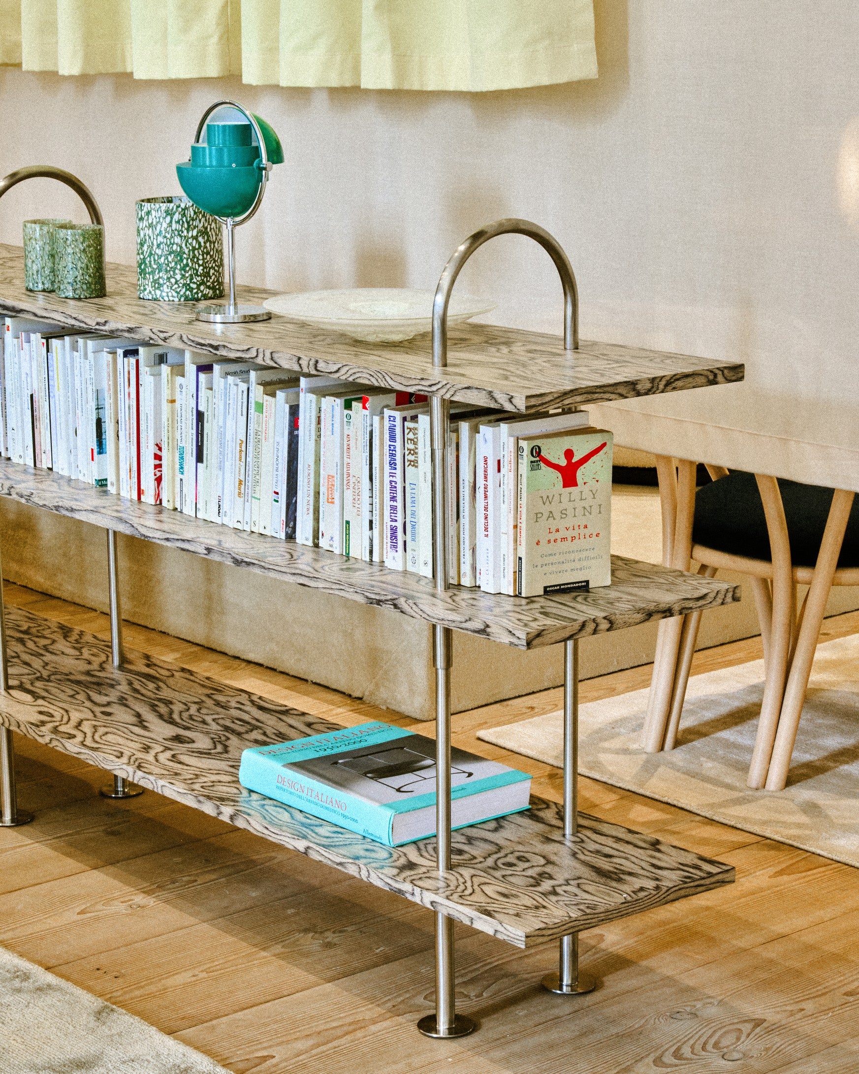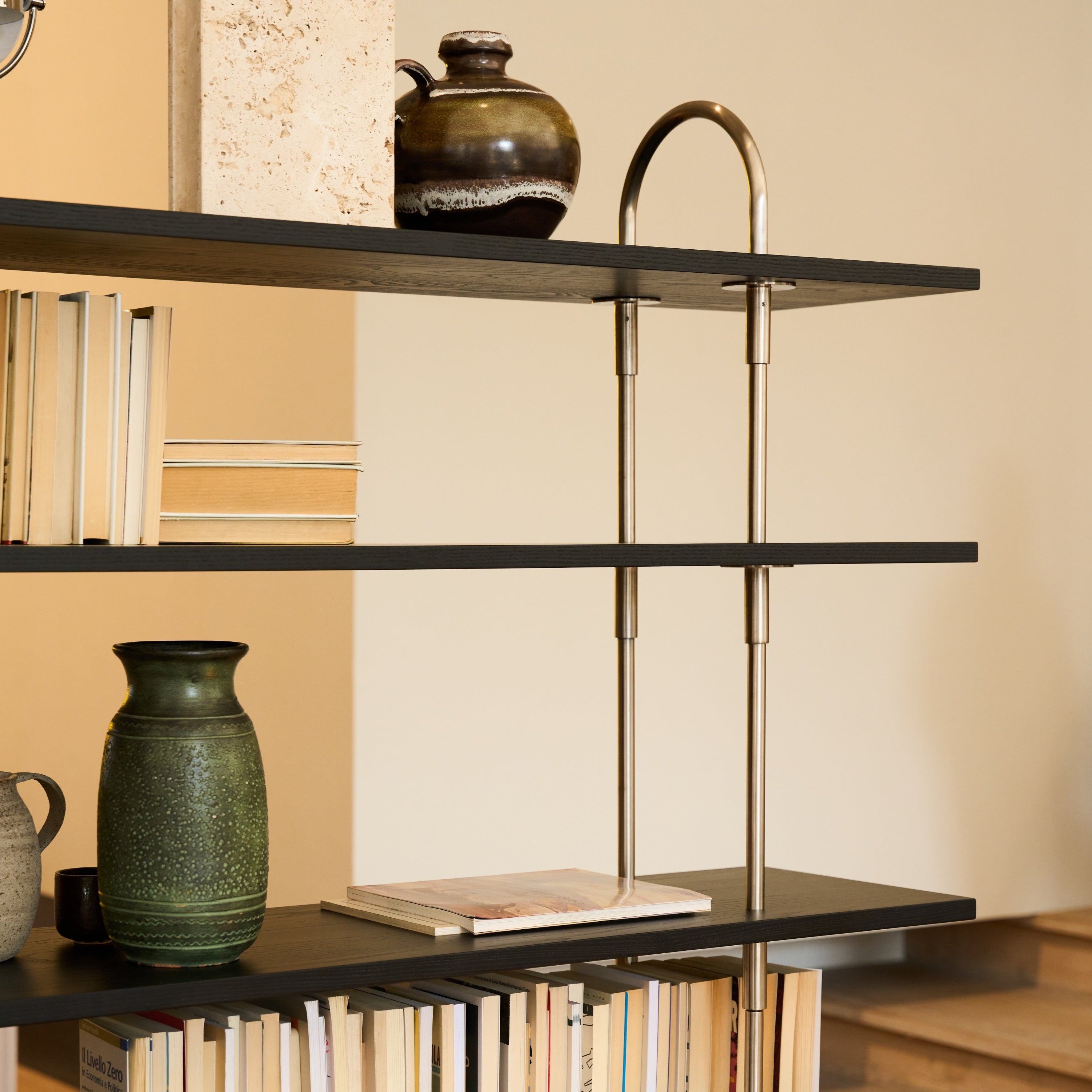 Created for GUBI by Linda Korndal’s studio, Toko Among Friends, Keen is a modular shelving system defined by architectural structure, expressive personality, and quiet adaptability. Designed to evolve with its user, Keen expands both vertically and laterally through an intuitive rod-and-bracket system that keeps the composition visually complete at every stage. The system brings sculptural rhythm, material depth, and emotional resonance to homes, hospitality settings, and workspaces alike.