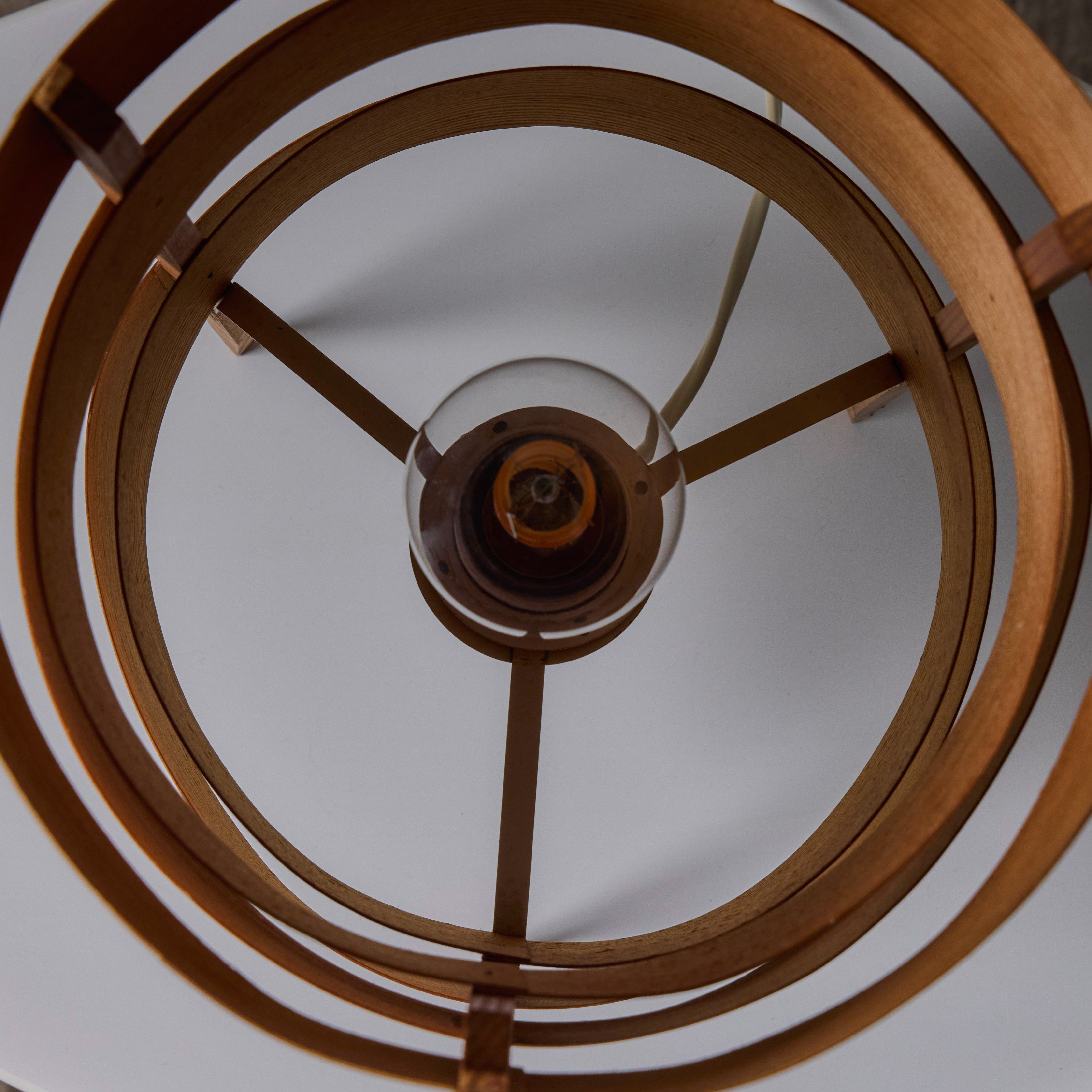 Designed and produced by Jakobsson in Markaryd, Sweden and executed in thin bentwood with solid tripod base structure. This is a small sculptural lamp that is ideal for ambient accent lighting in a variety of interior spaces, from midcentury and Scandinavian to contemporary.