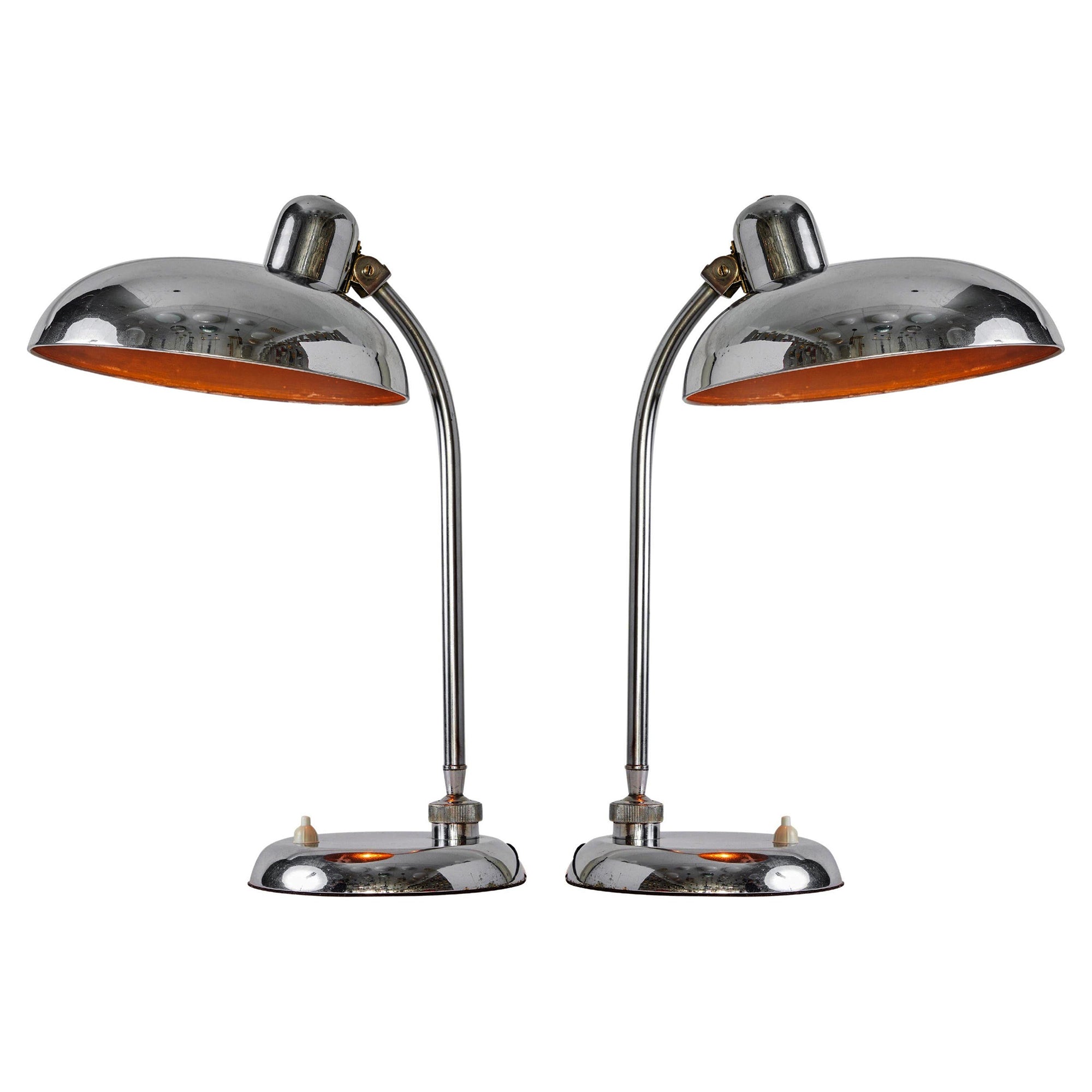 Produced circa 1940 and executed in polished chrome with swiveling arm and rotating adjustable shade. Reminiscent of the early designs of Kaiser Idell. An elegant desk lamp with beautiful scale and presence.