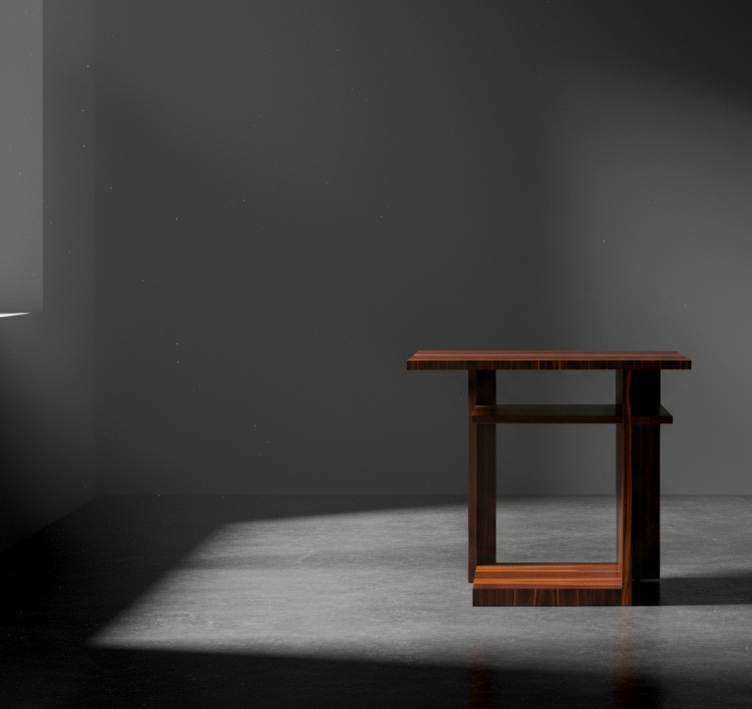 Handcrafted in the Los Angeles and French workshops of noted French designer and antiques dealer Denis de la Mésière, who meticulously pays homage to the work of Pierre Chareau with scrupulous attention to detail. Executed in the highest quality stained wood, this ultra-refined design adds a sculptural element and focal point of incomparable beauty.