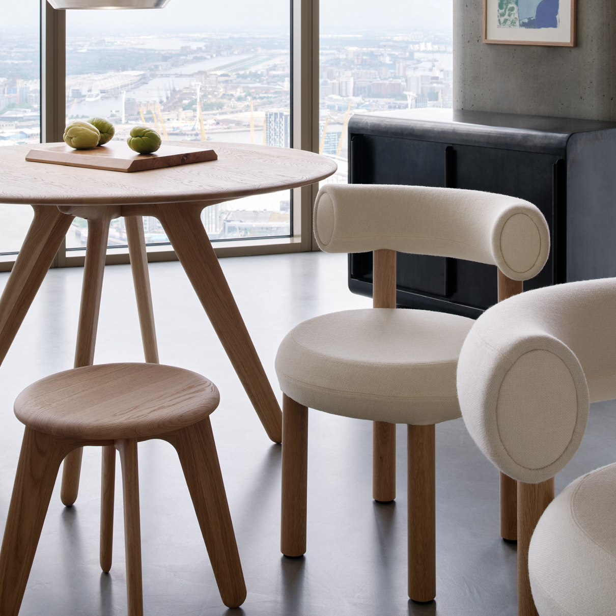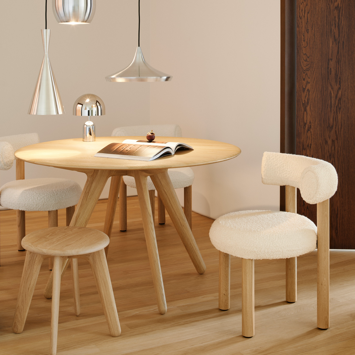 Originally designed in 2010 and updated in 2022, Tom Dixon's Slab table is constructed in simple geometric shapes that celebrate the natural beauty of solid oak. Each piece has generous proportions, solid materiality and is softened with a gentle radius edge and executed in solid oak sourced from sustainably managed forests. The wood's surface is deeply brushed to expose its natural grain and finished with a matte lacquer. Reminiscent of designs by Jean Prouvé or Pierre Chapo, the Slab table puts a contemporary spin on midcentury design.