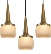 Glass on all pendants are in excellent condition. Some scuffs, scratches and dings noted only for accuracy. Note only one representative example shown in photos. Wear and patina vary some from lamp to lamp but overall the pieces present well as a set if desired.