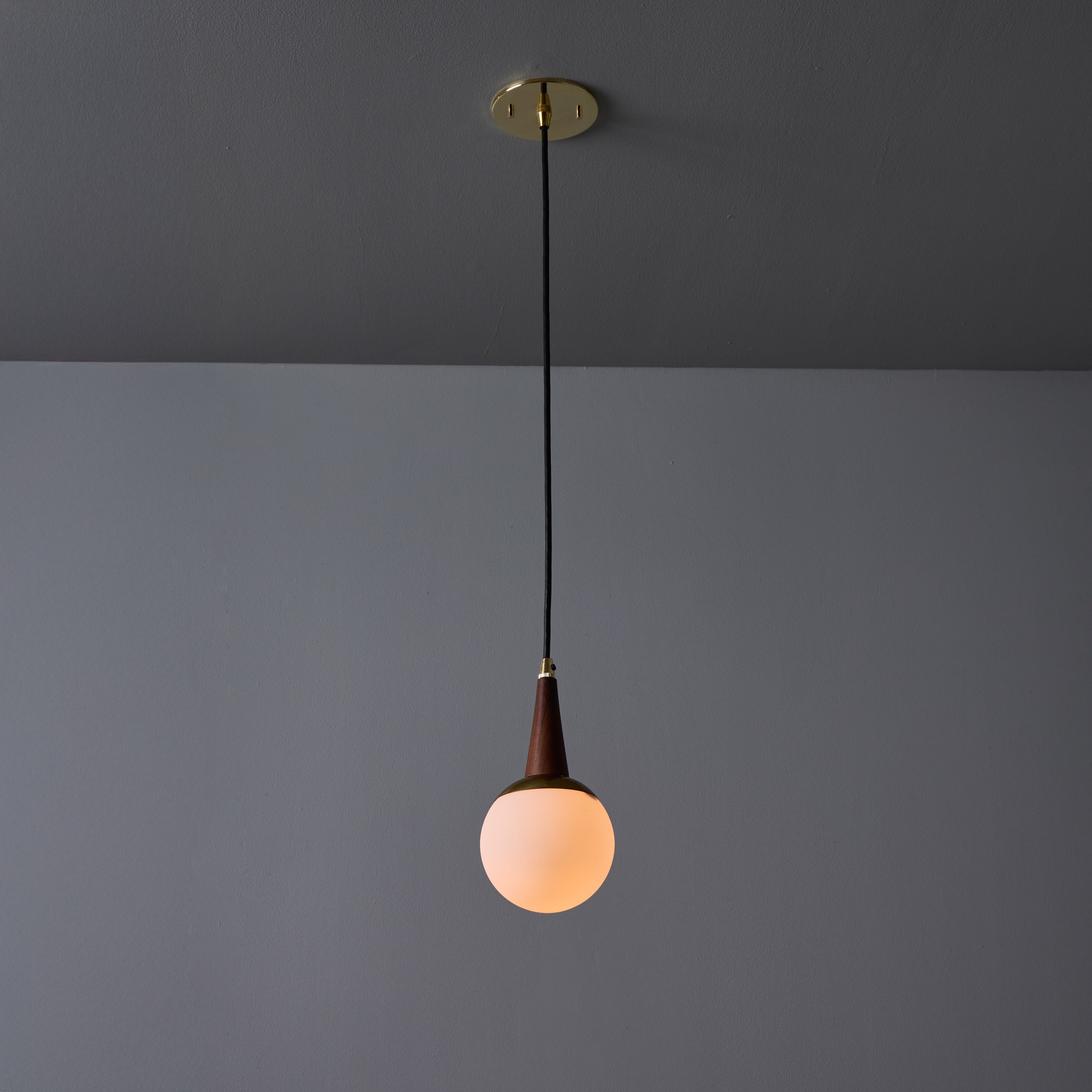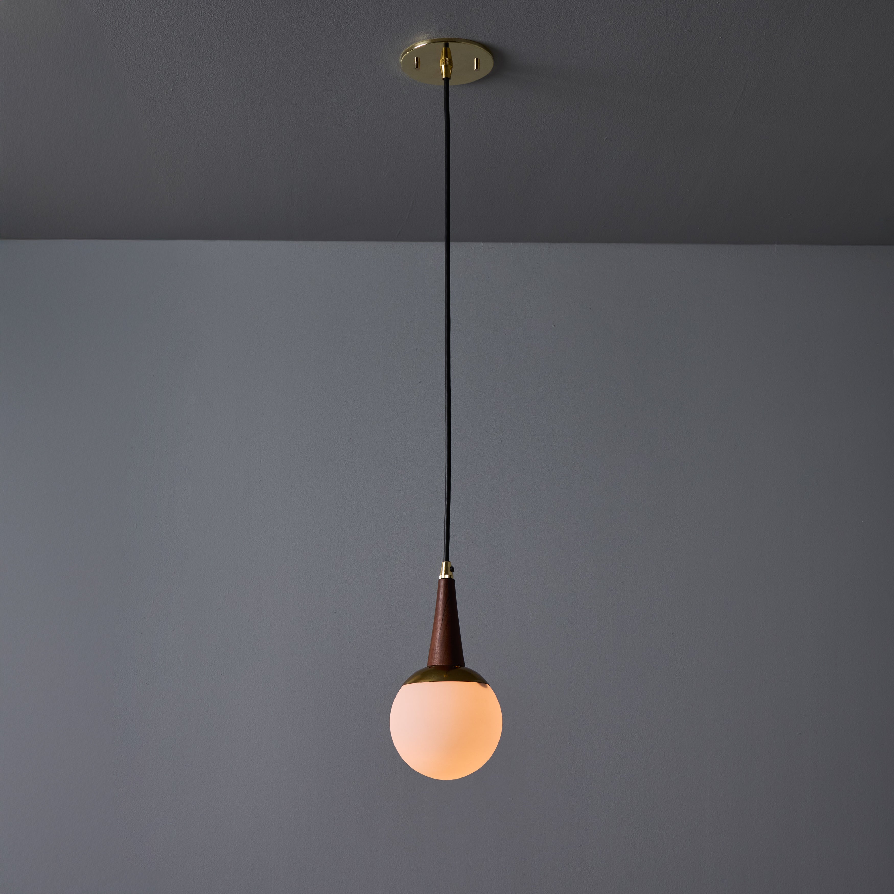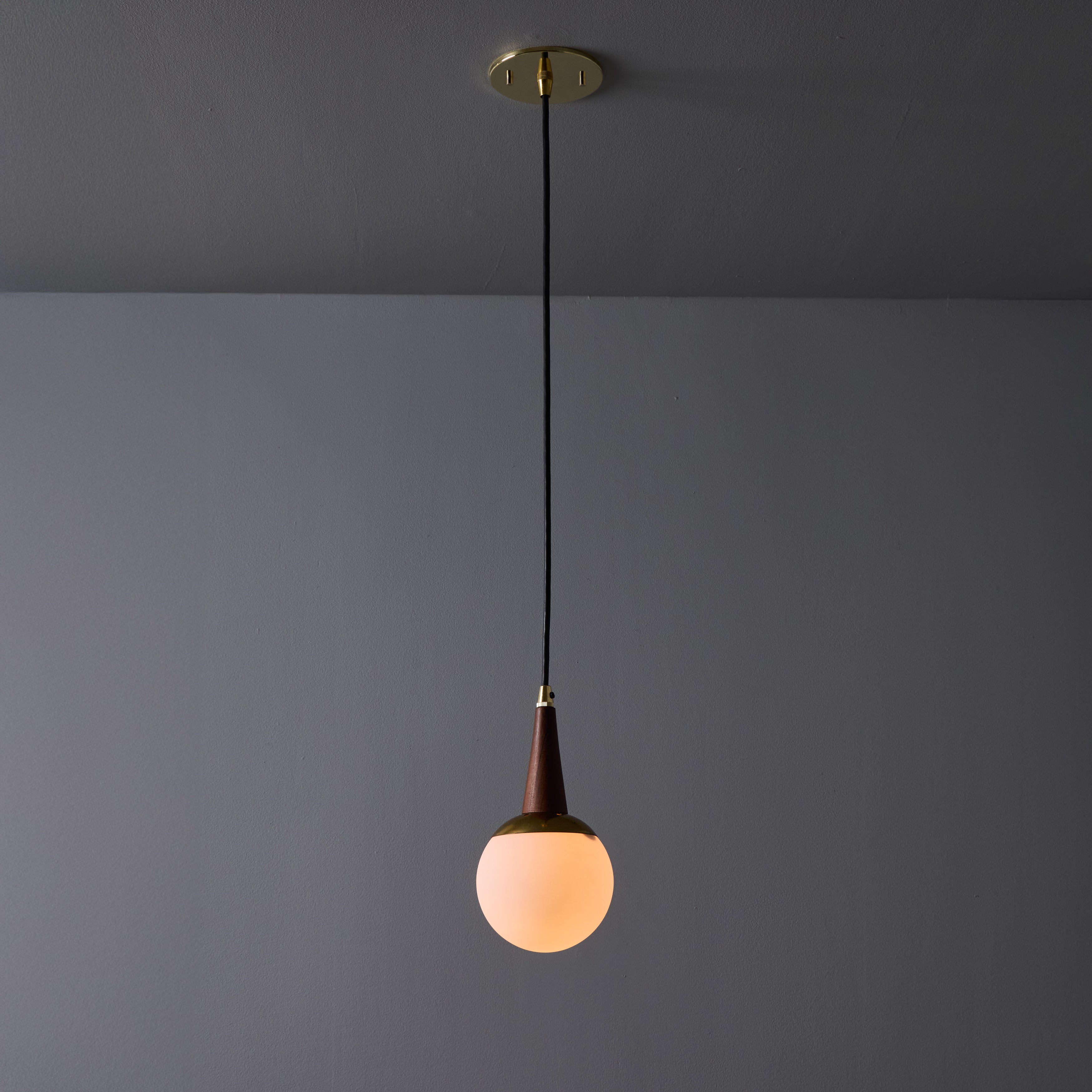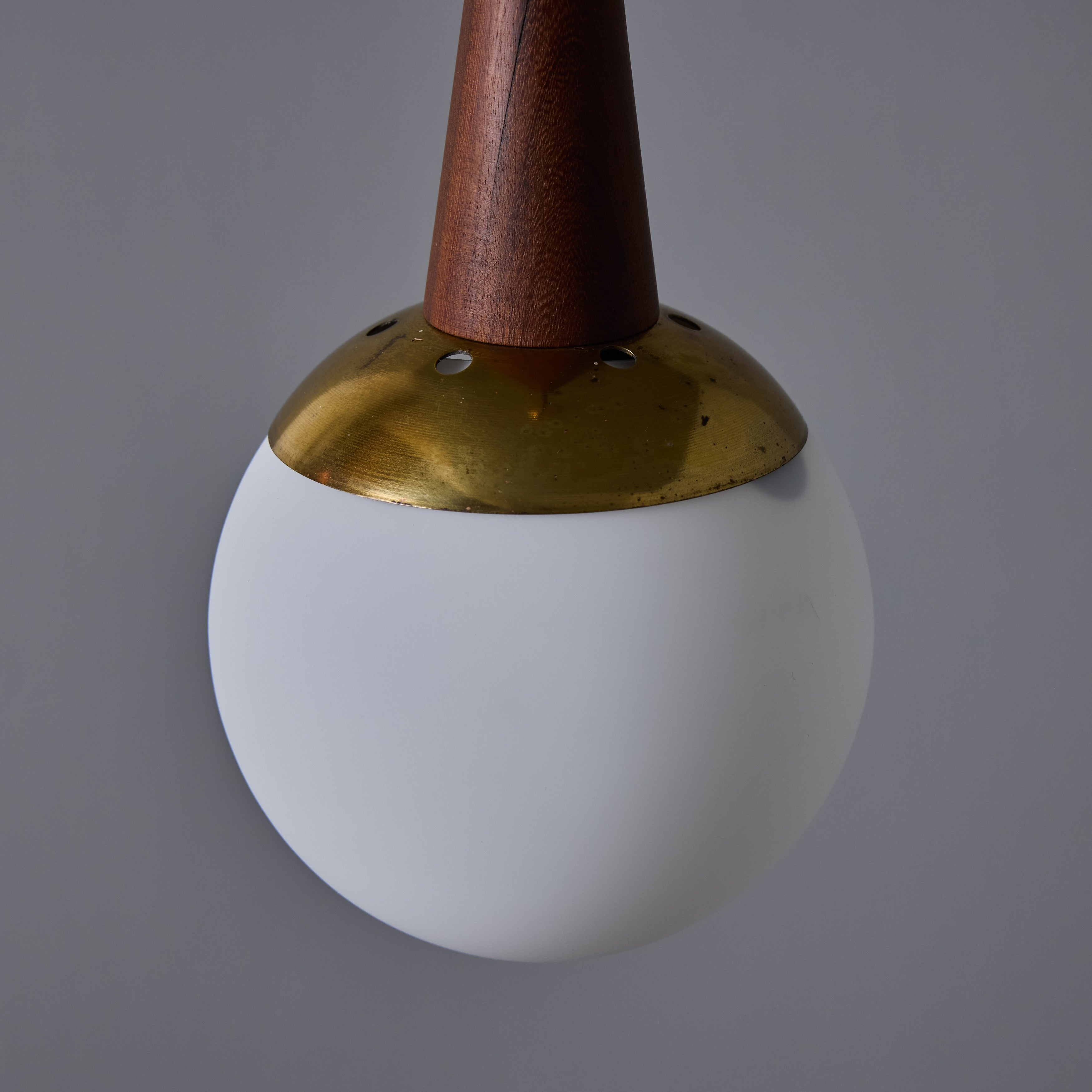 1950s Brass, Wood, and Opaline Glass Pendant Attributed to Stilnovo