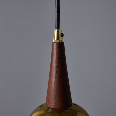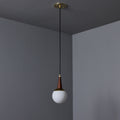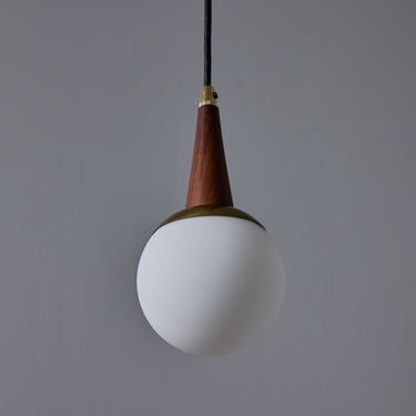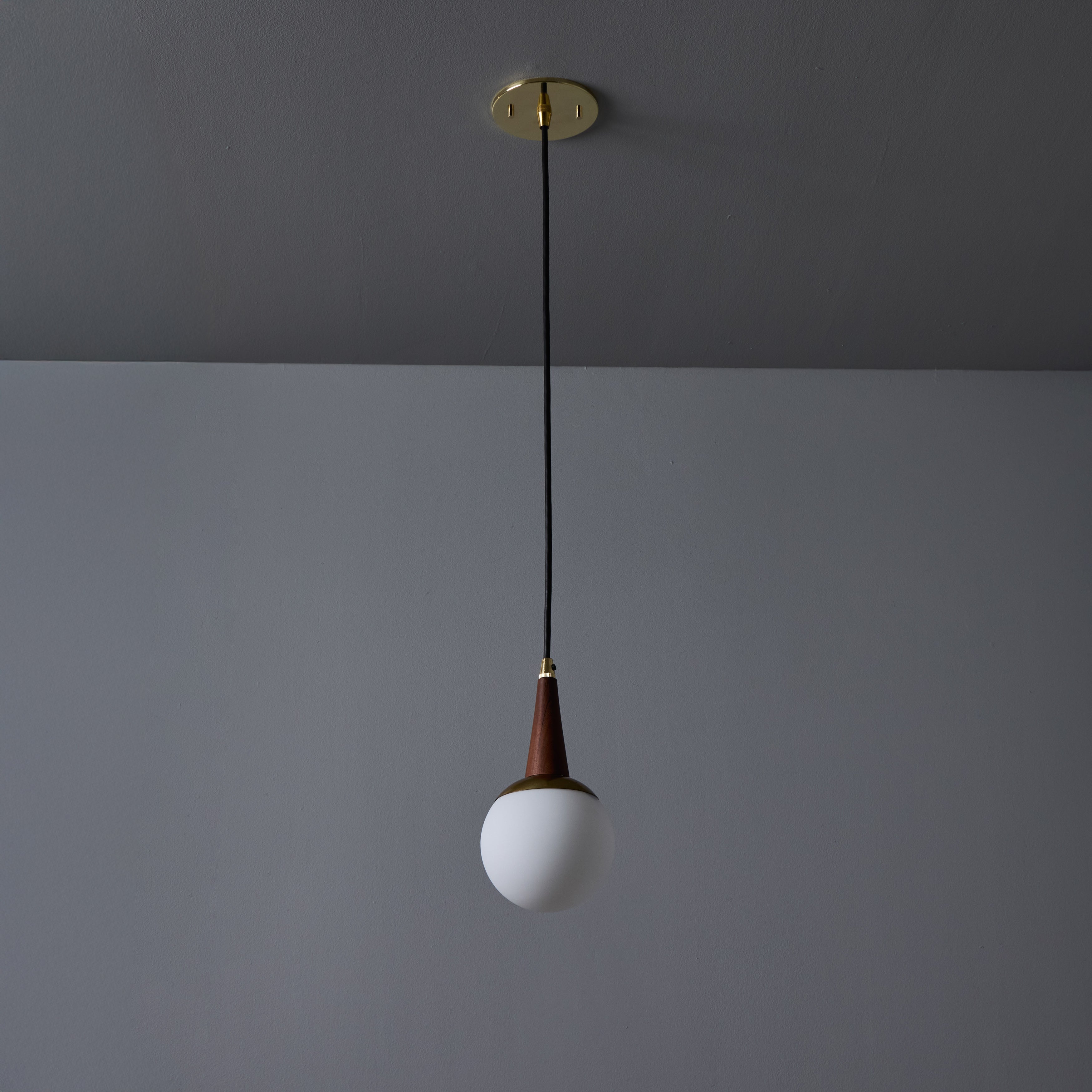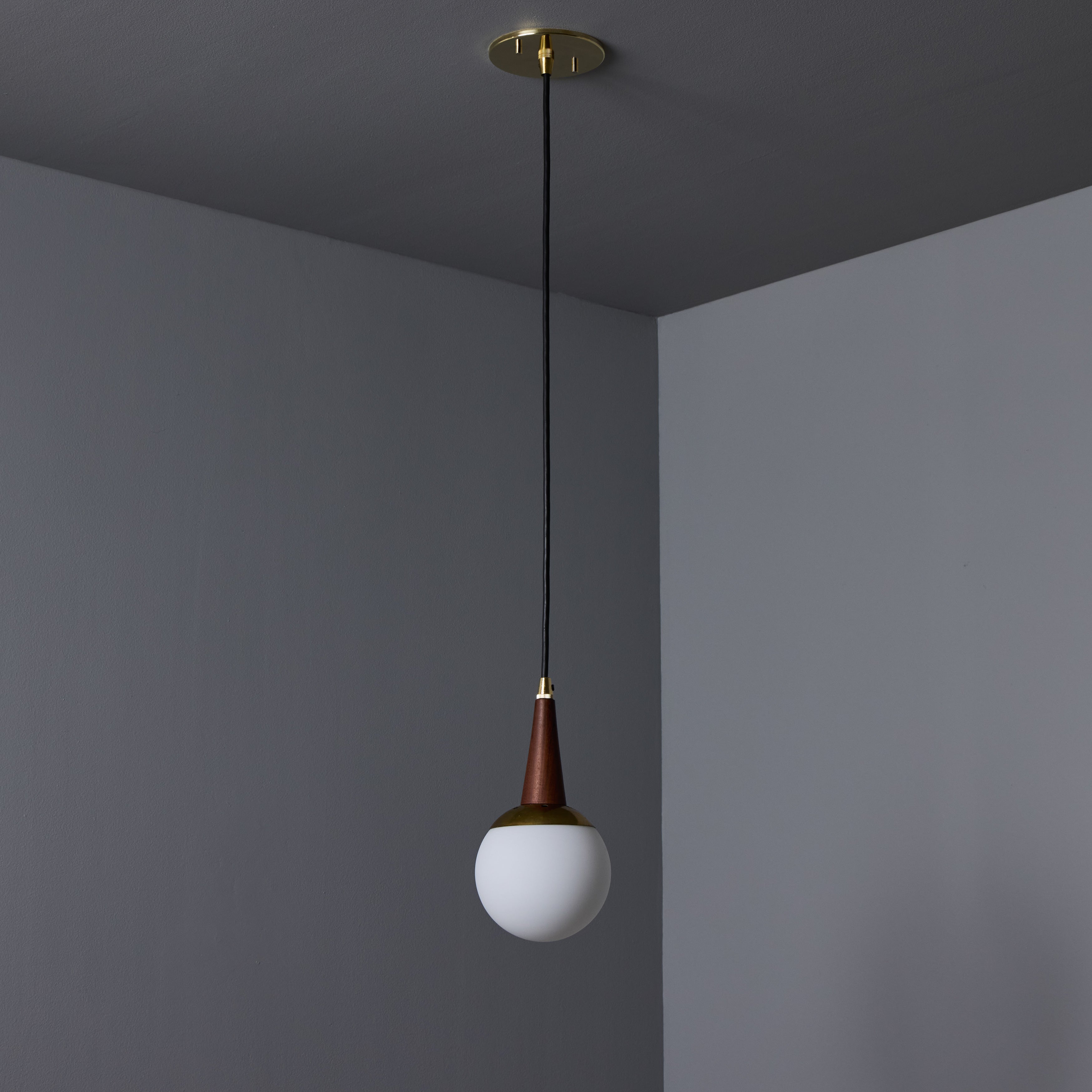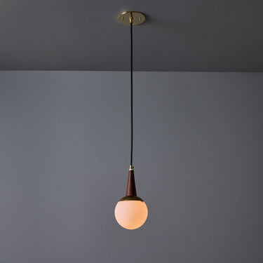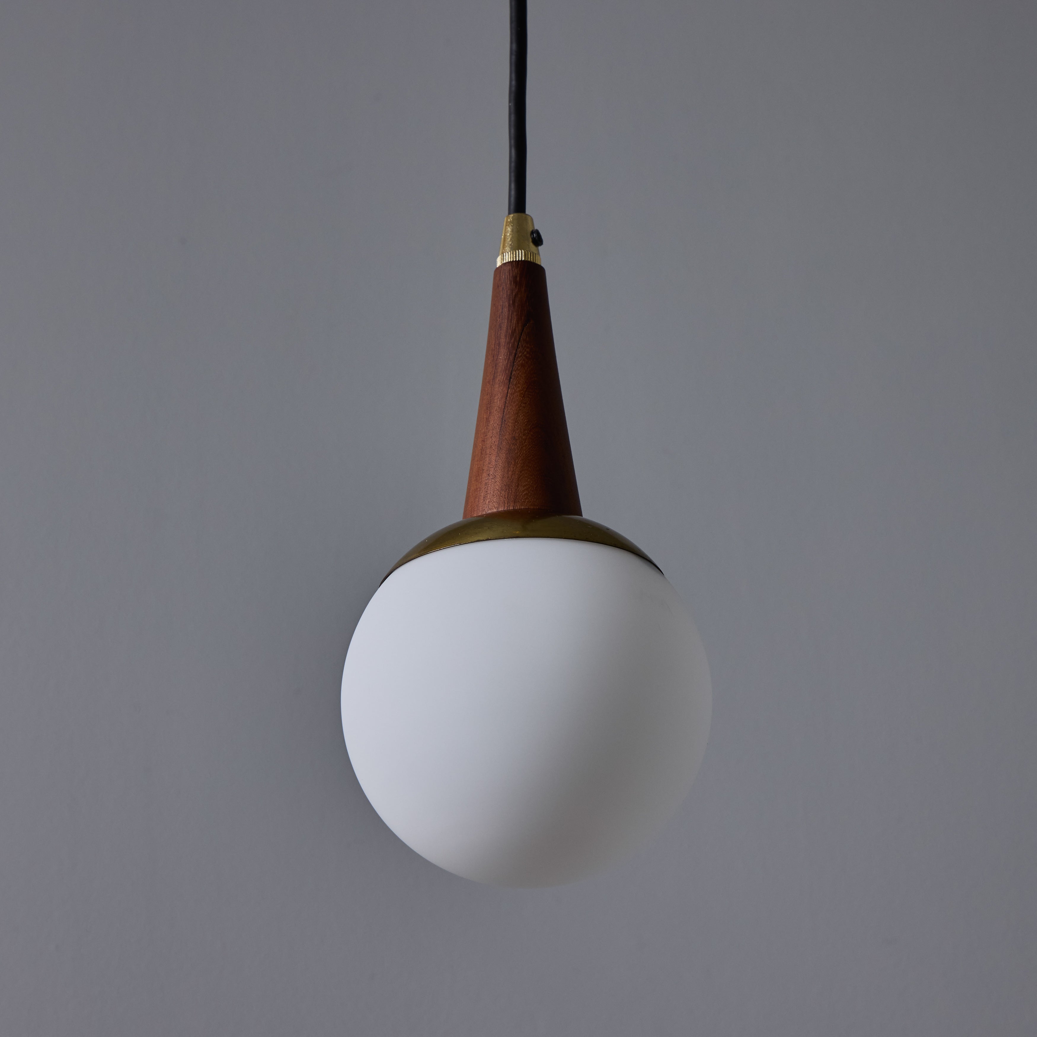1950s Brass, Wood, and Opaline Glass Pendant Attributed to Stilnovo