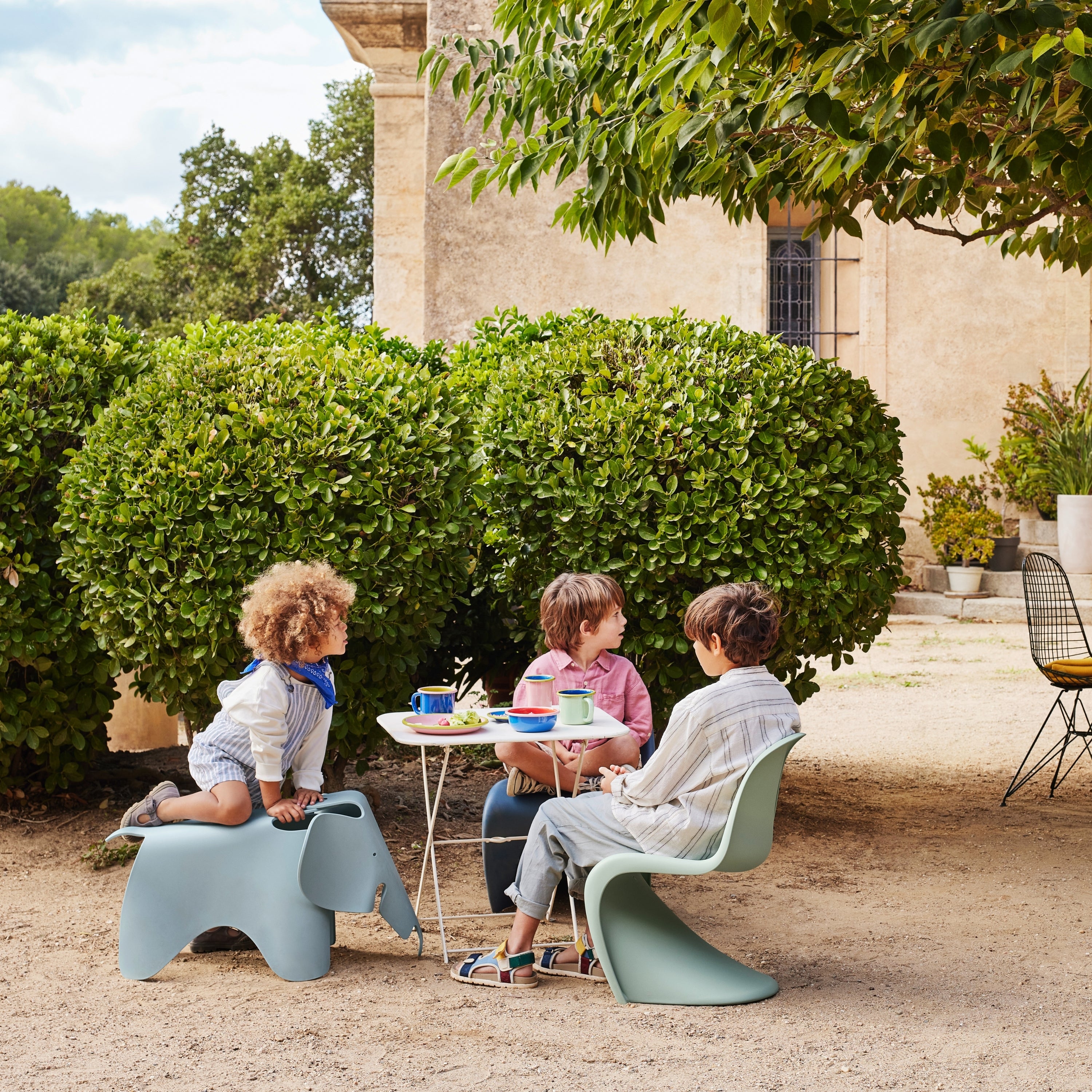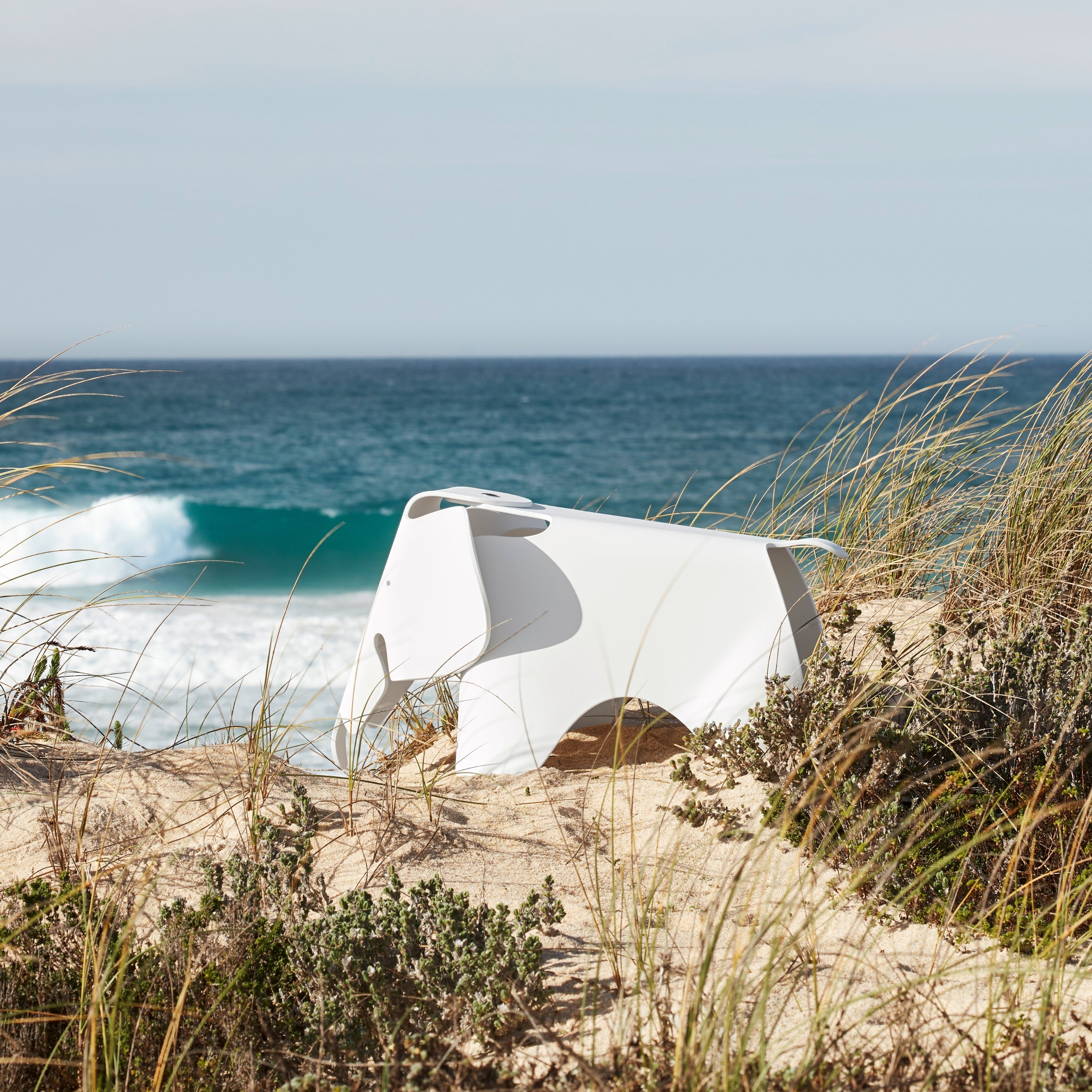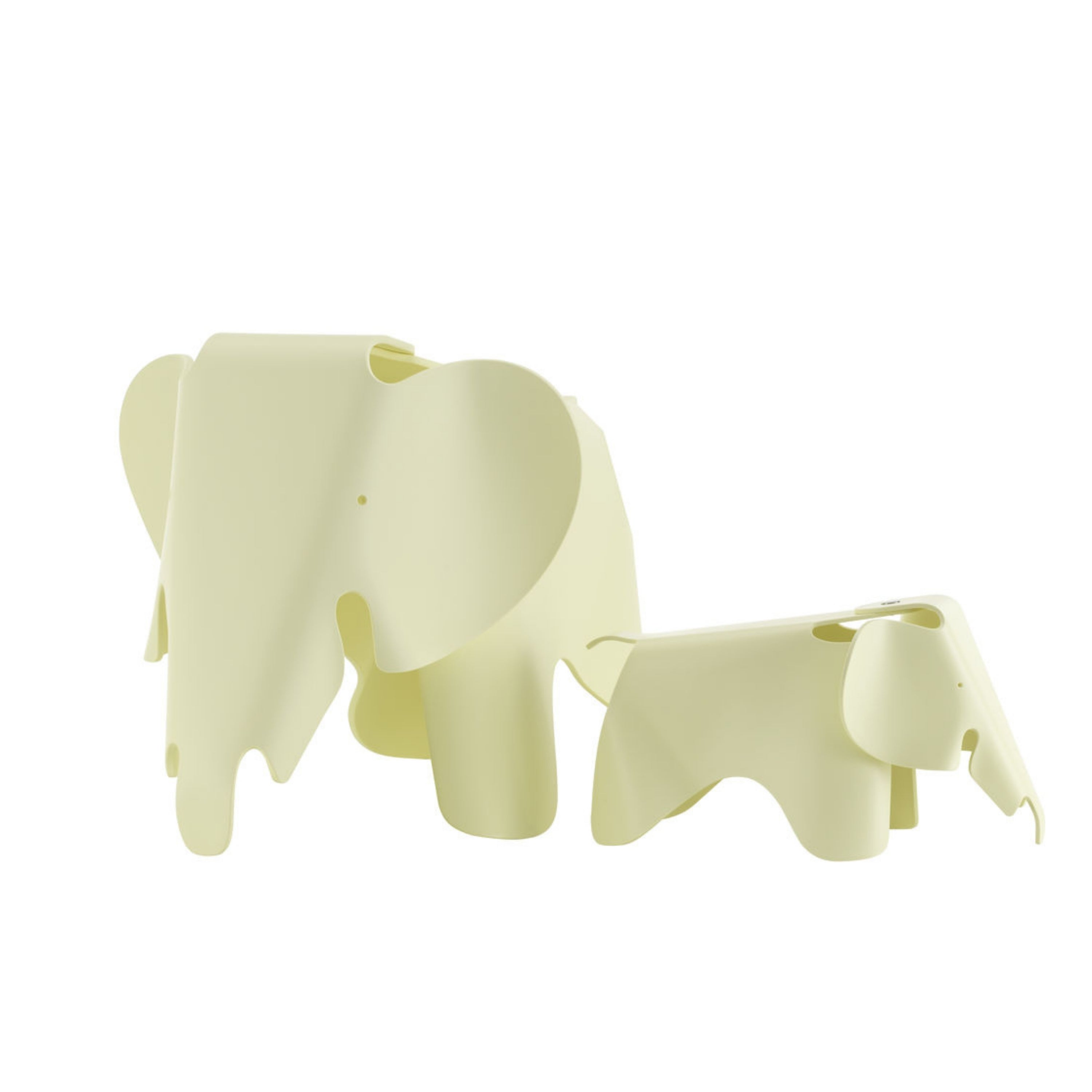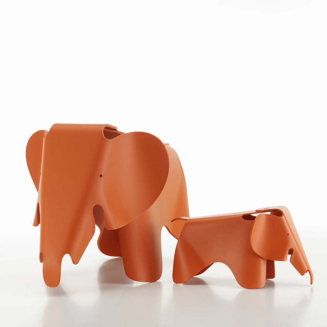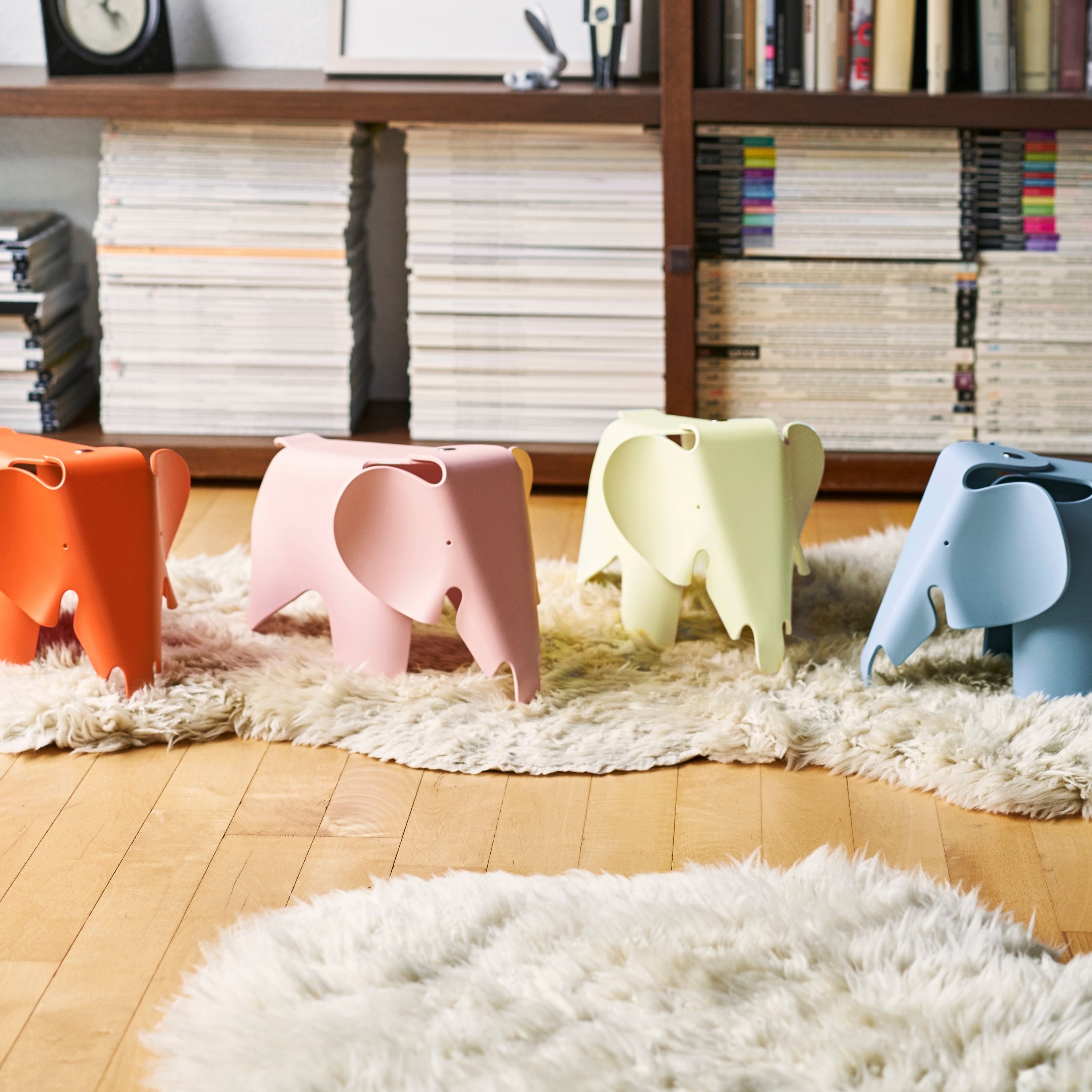 In the early 1940s, Charles and Ray Eames spent several years developing and refining a technique for moulding plywood into three-dimensional shapes, creating a series of furniture items and sculptures in the process. Among these initial designs, the two-part elephant proved to be the most technically challenging due to its tight compound curves, and the piece never went into serial production until Vitra took up the challenge in 2007. Several years ago, the Eames Elephant was also launched in plastic, making it available to the target group for which it was originally intended: children. And a smaller version – with an identical design but reduced in scale – likewise comes in dyed-through post-consumer plastic in a rainbow of colors.