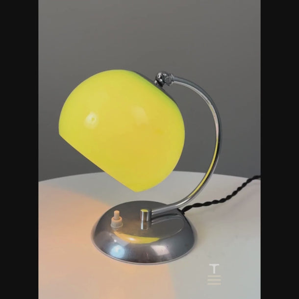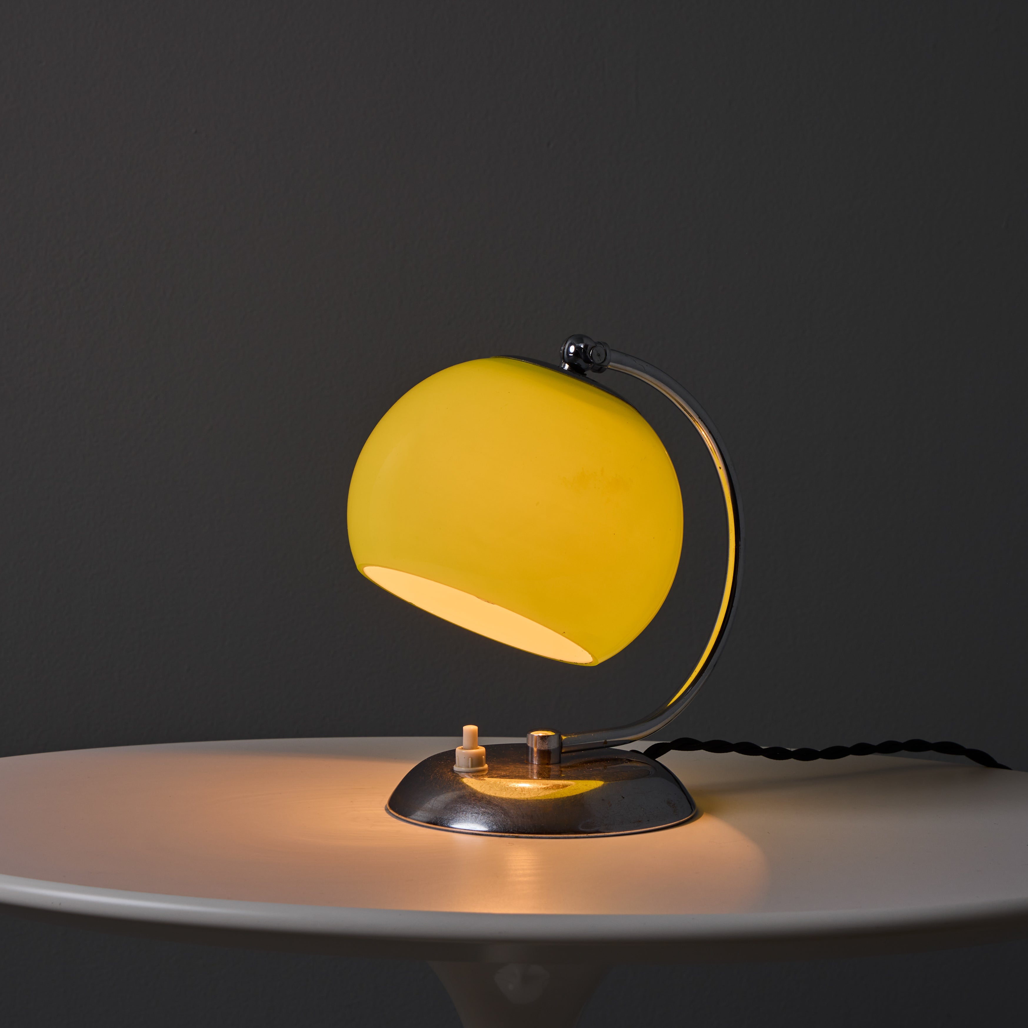 A rare and elegant lamp executed in chromed metal and blown green opaline glass. A contemporary of Paavo Tynell, Almari's ultra refined work has made him an increasingly valued Finnish designer in recent years by collectors worldwide.