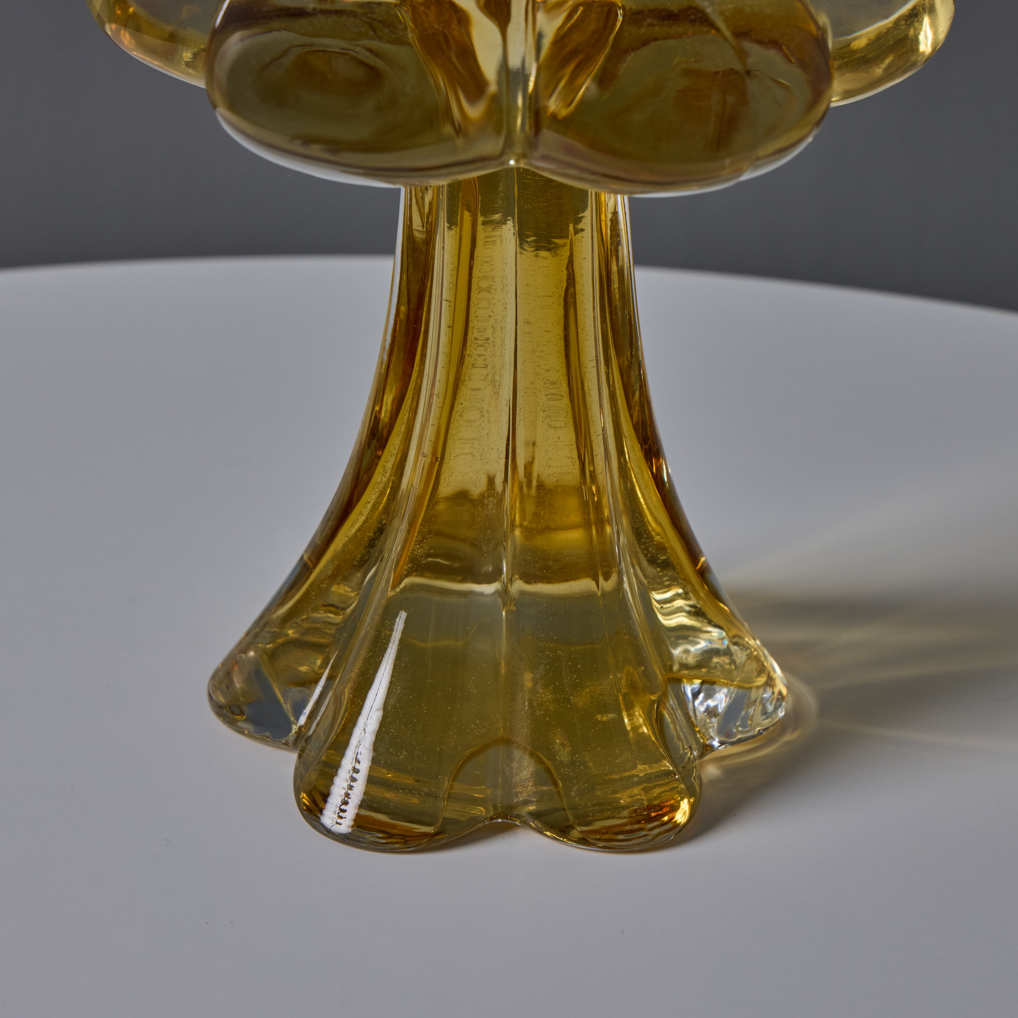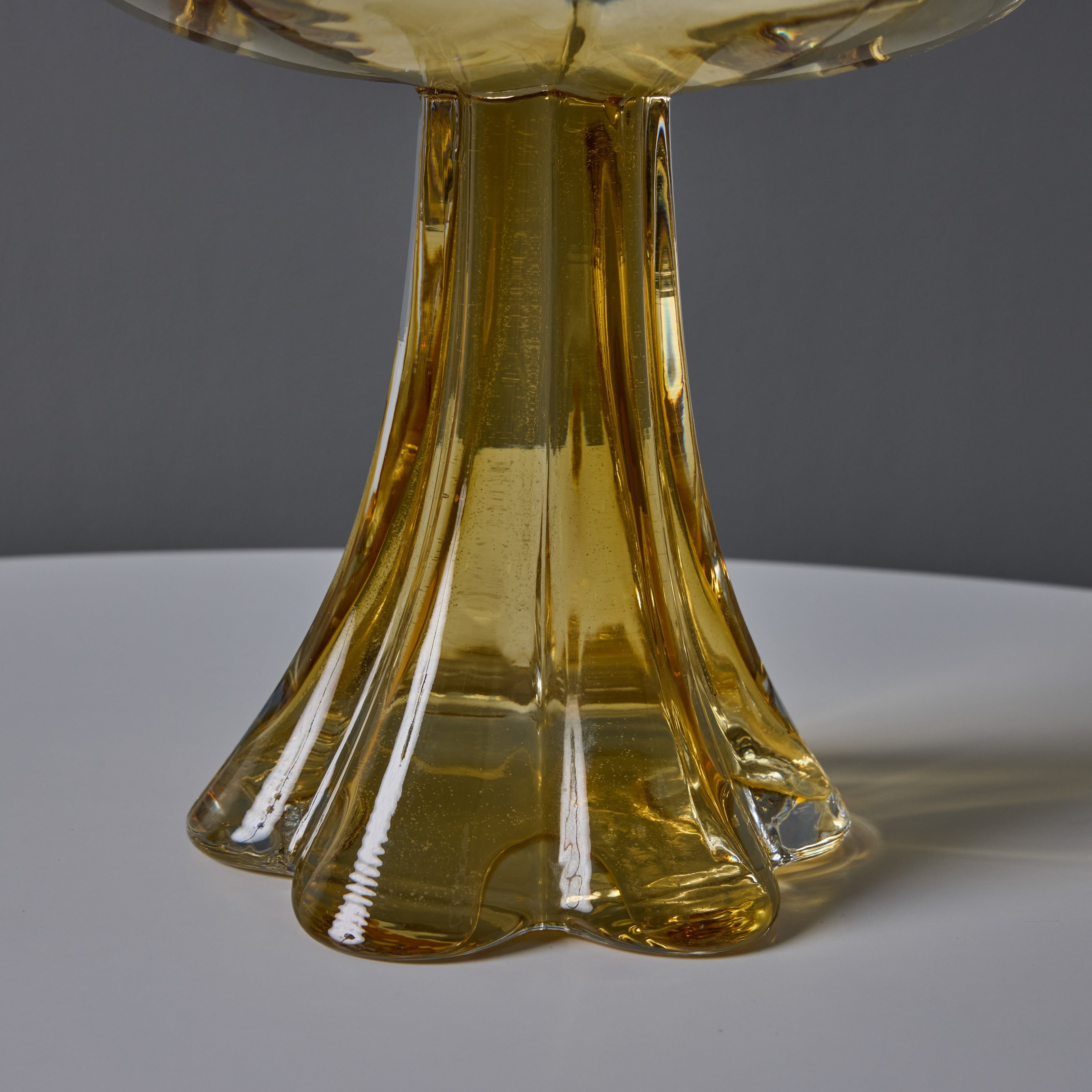 Helena Tynell (1916-2016), a contemporary of Paavo Tynell, was an iconic Finnish glass designer who was a pioneer in her field. Throughout her career, she collaborated with well-known makers such as Taito, Glashutte Limburg, and Riihimäki Glass. Wear consistent with age and use. This piece is in very good vintage condition with no chips or cracks. Please contact us for additional images or video.