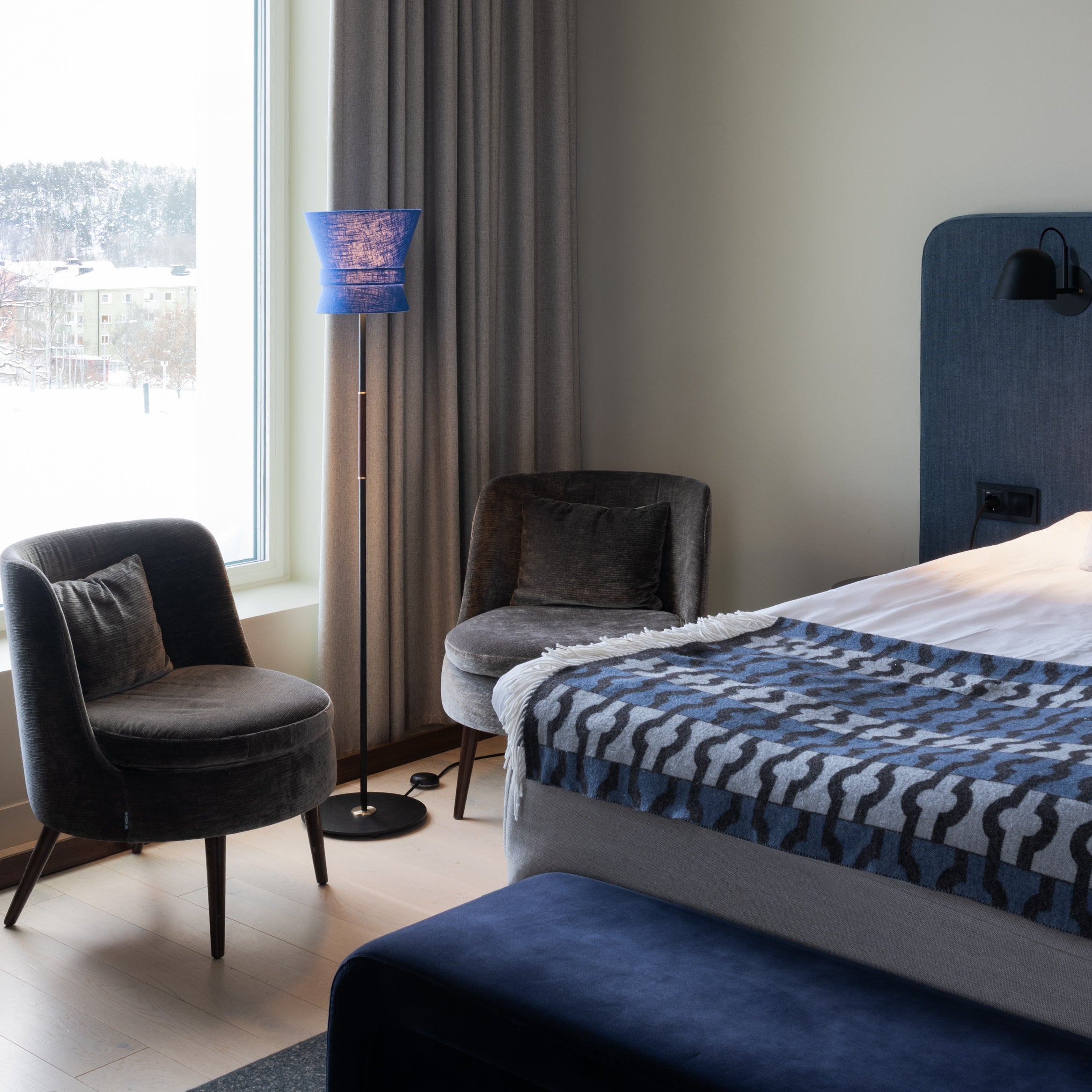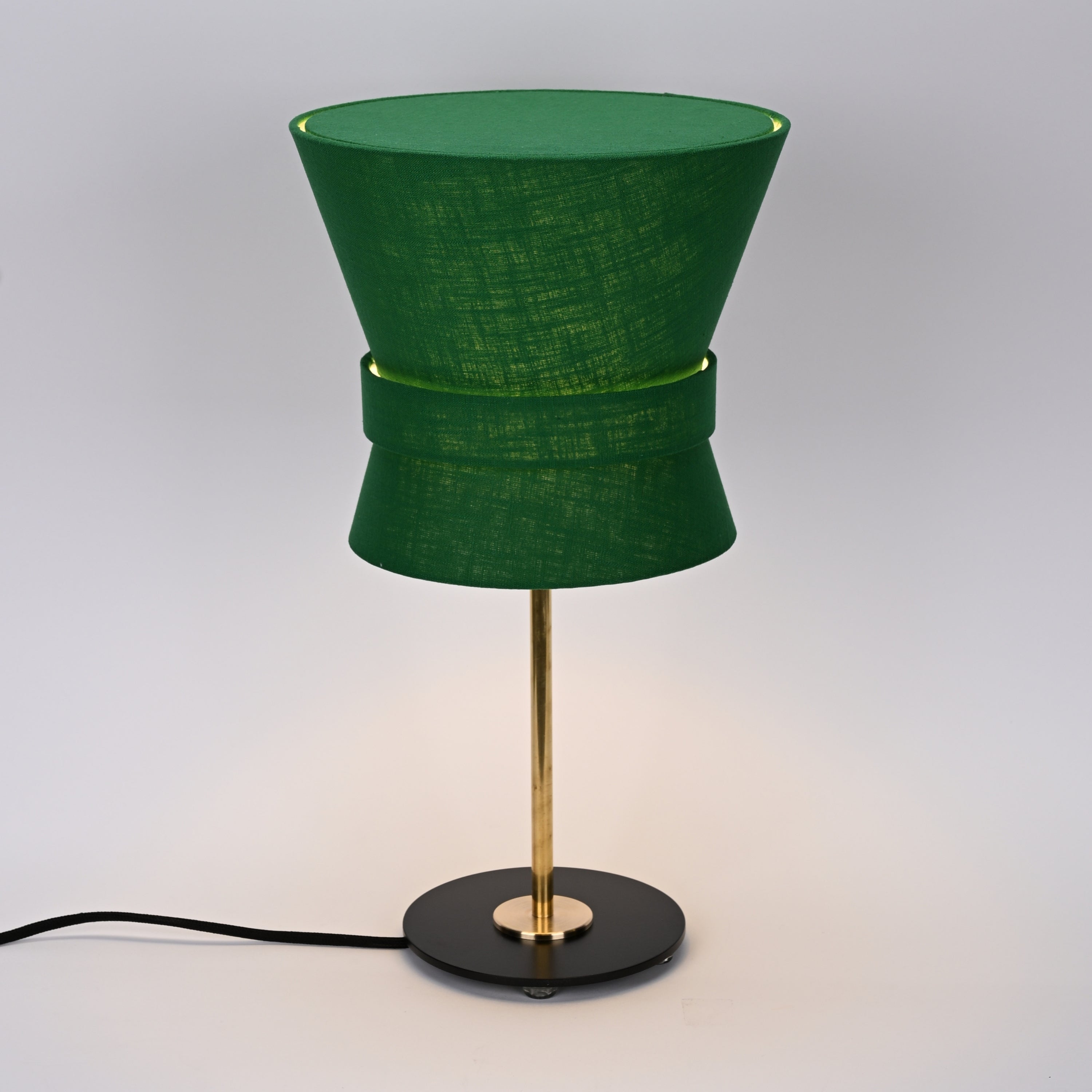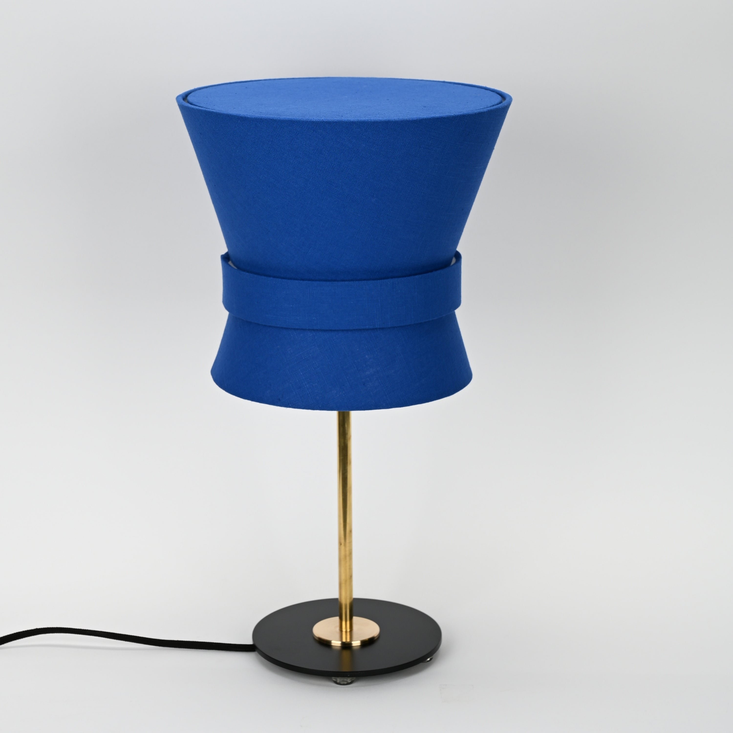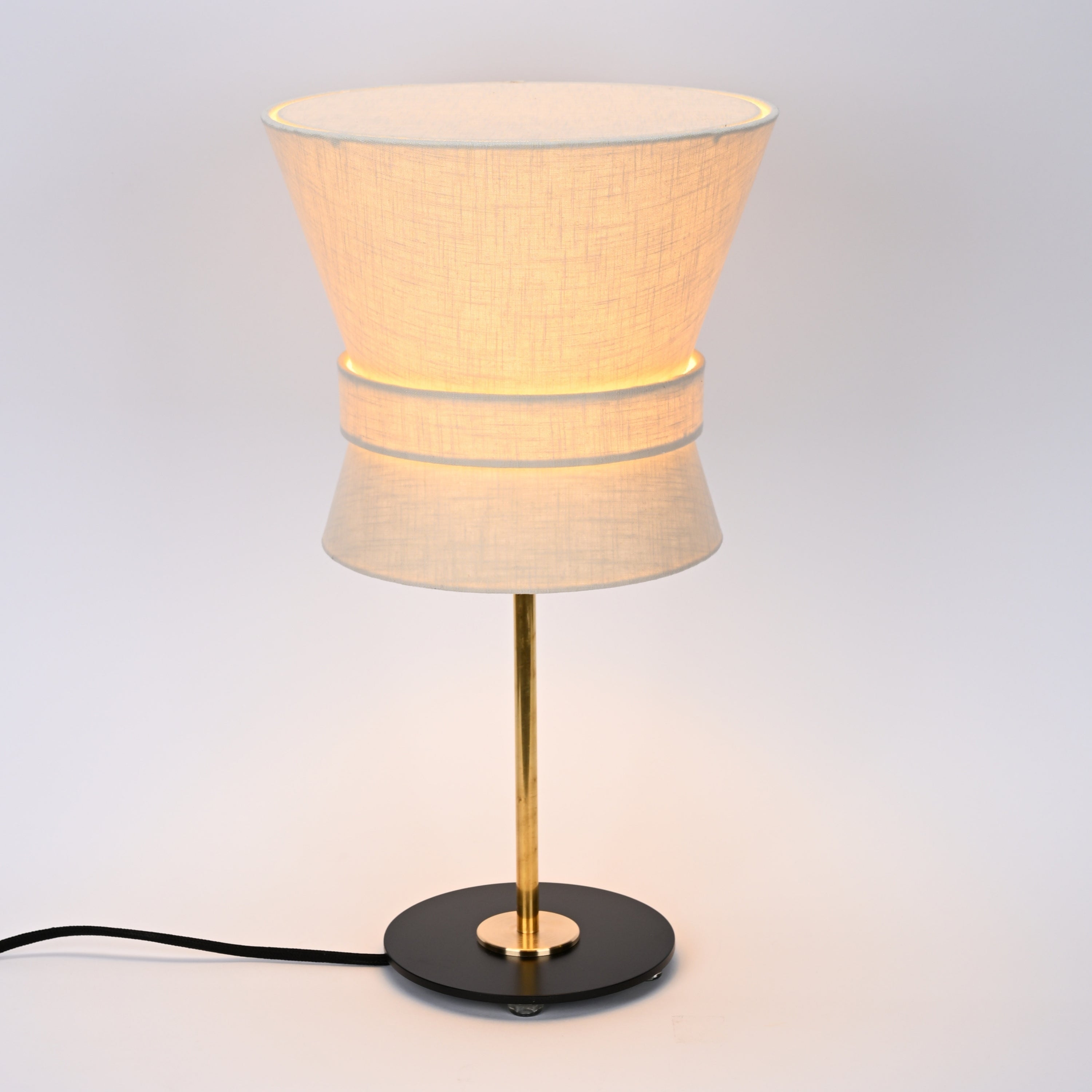 Executed in a black metal or brass or stem with an elegant textile shade, the Bow's elegant geometry and understated simplicity make it a lighting centerpiece. A quintessentially Swedish design that is a fresh take on iconic midcentury lighting.