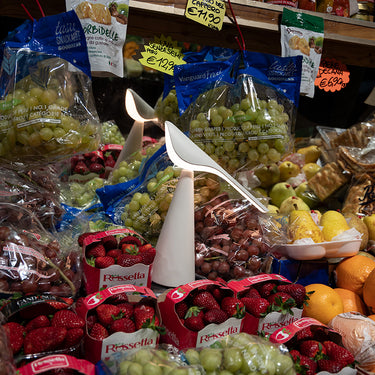 These brilliantly designed bird-like lamps use a futuristic form to animate and evoke character. The flawless acrylic shade balances above a metal formed base resulting in a dynamic pairing. Tiki is a modern and exquisite portable lamp designed to bring a refined approach in lighting, whether displayed individually or in a flock.