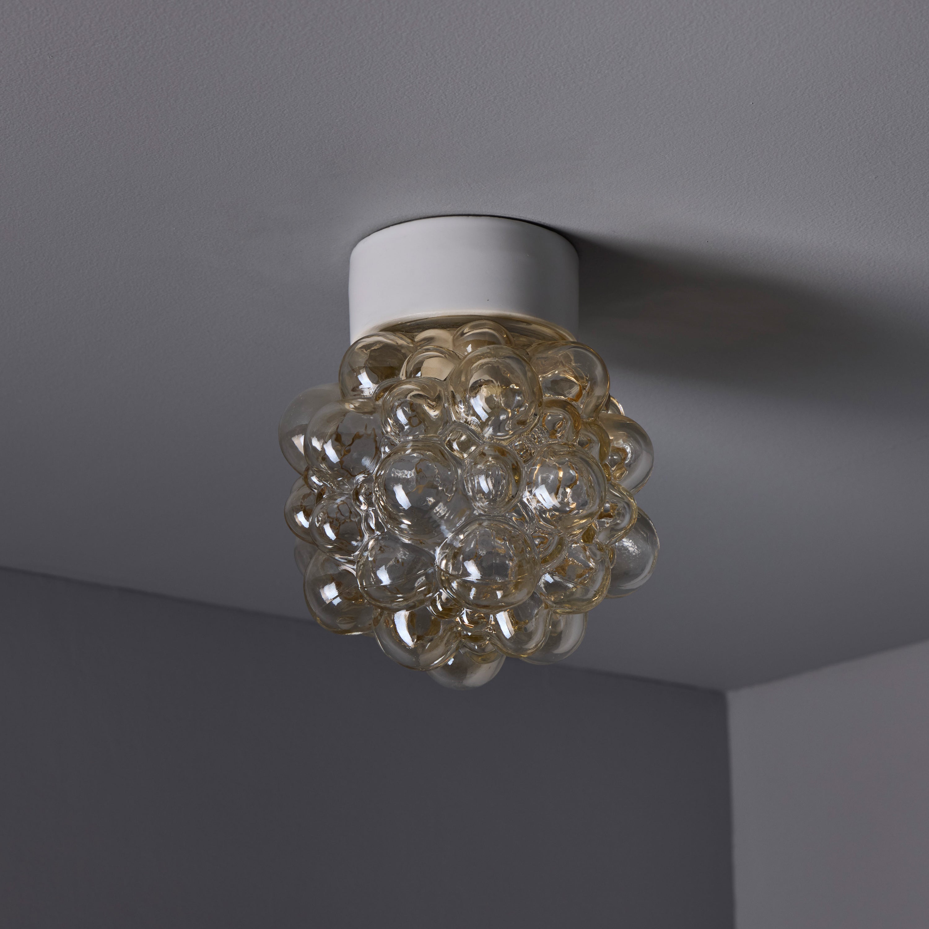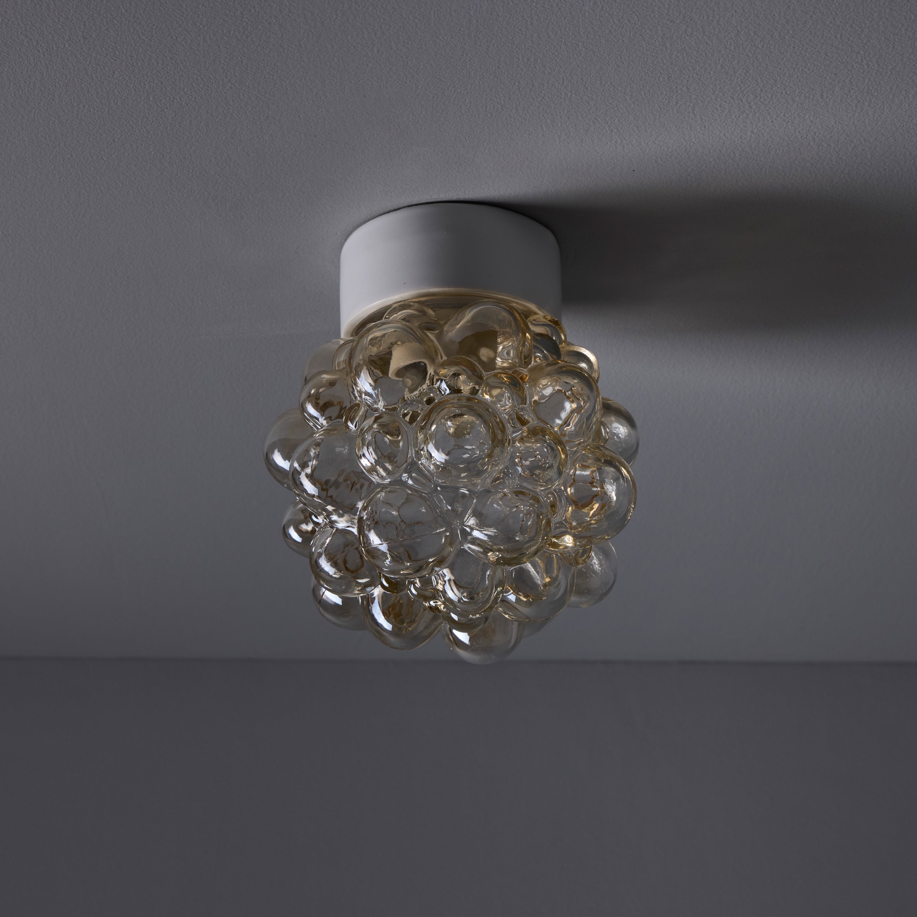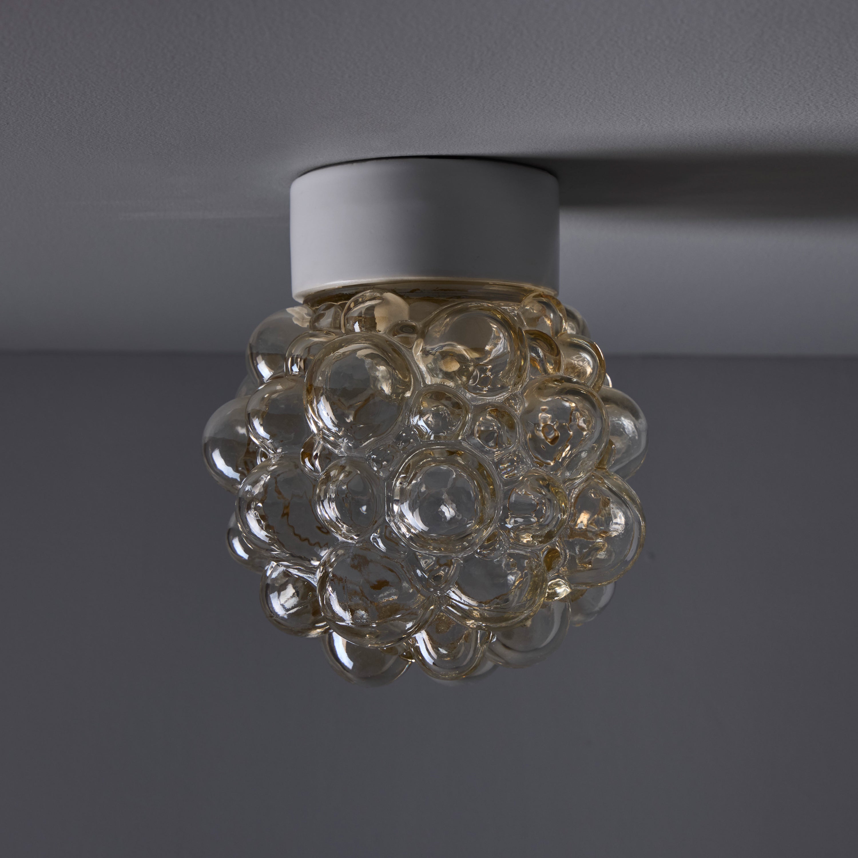 Executed in thick and heavy textured light amber bubble glass and white porcelain mount. Can be mounted on the ceiling or used as a wall lamp. Fabricated in Limburg, Germany circa 1960s.