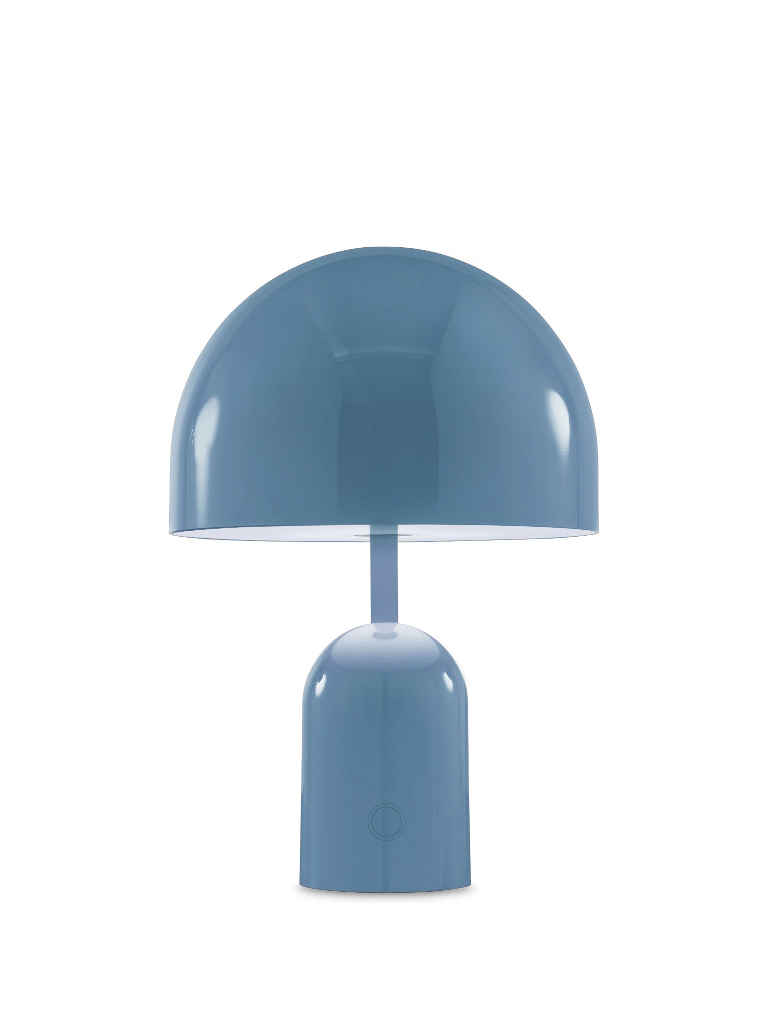 Taking its name from a classic dome shape, the Bell portable rechargeable table lamp is an exercise in reductionism. Designed in 2021, the Bell's geometric silhouette complements a wide range of spaces indoors and out. Executed in ABS with a high gloss finish, the interior light source from the integrated LED is dimmable and rechargeable. The Bell series includes a larger plug-in model, and can be mixed and matched to create playful arrangements of light.