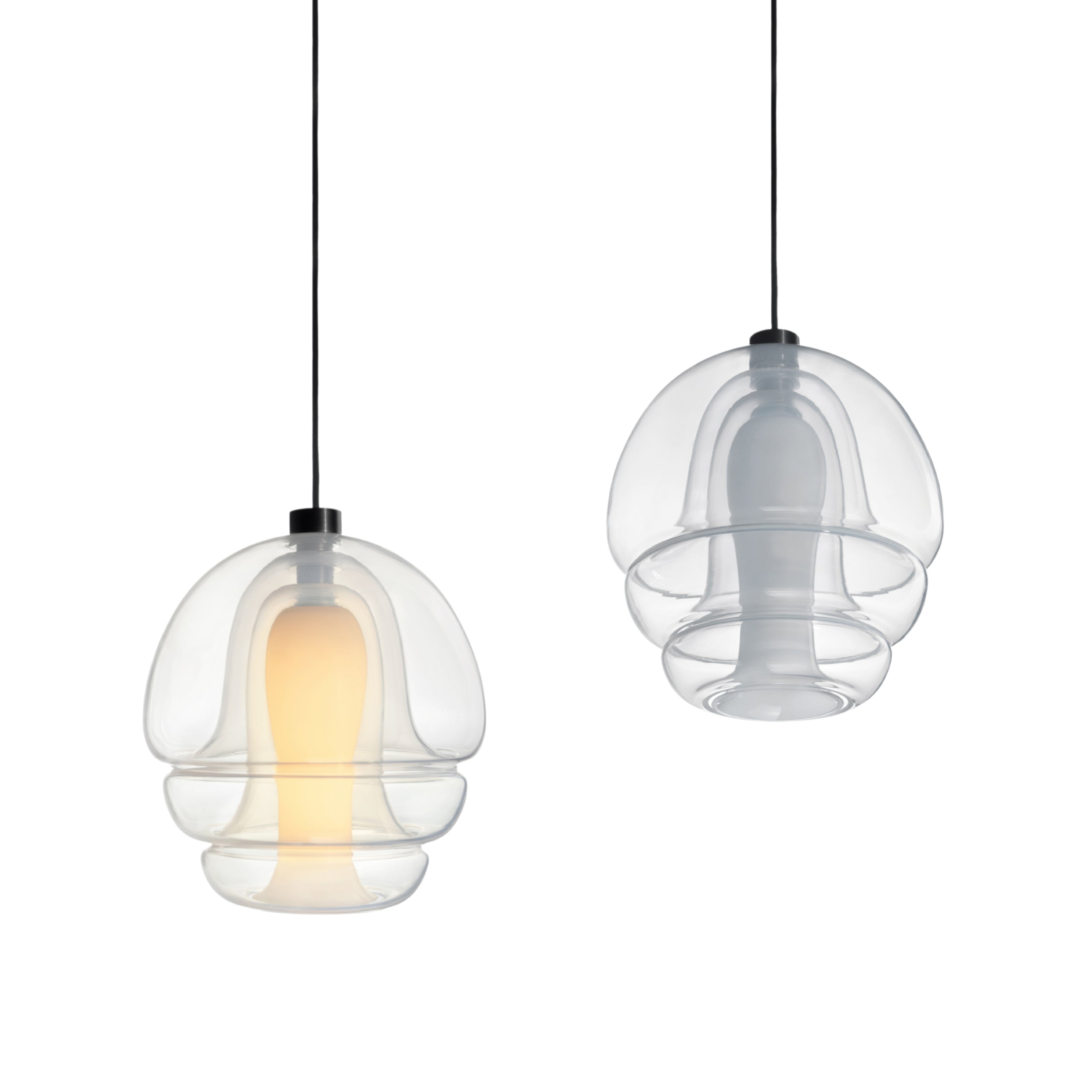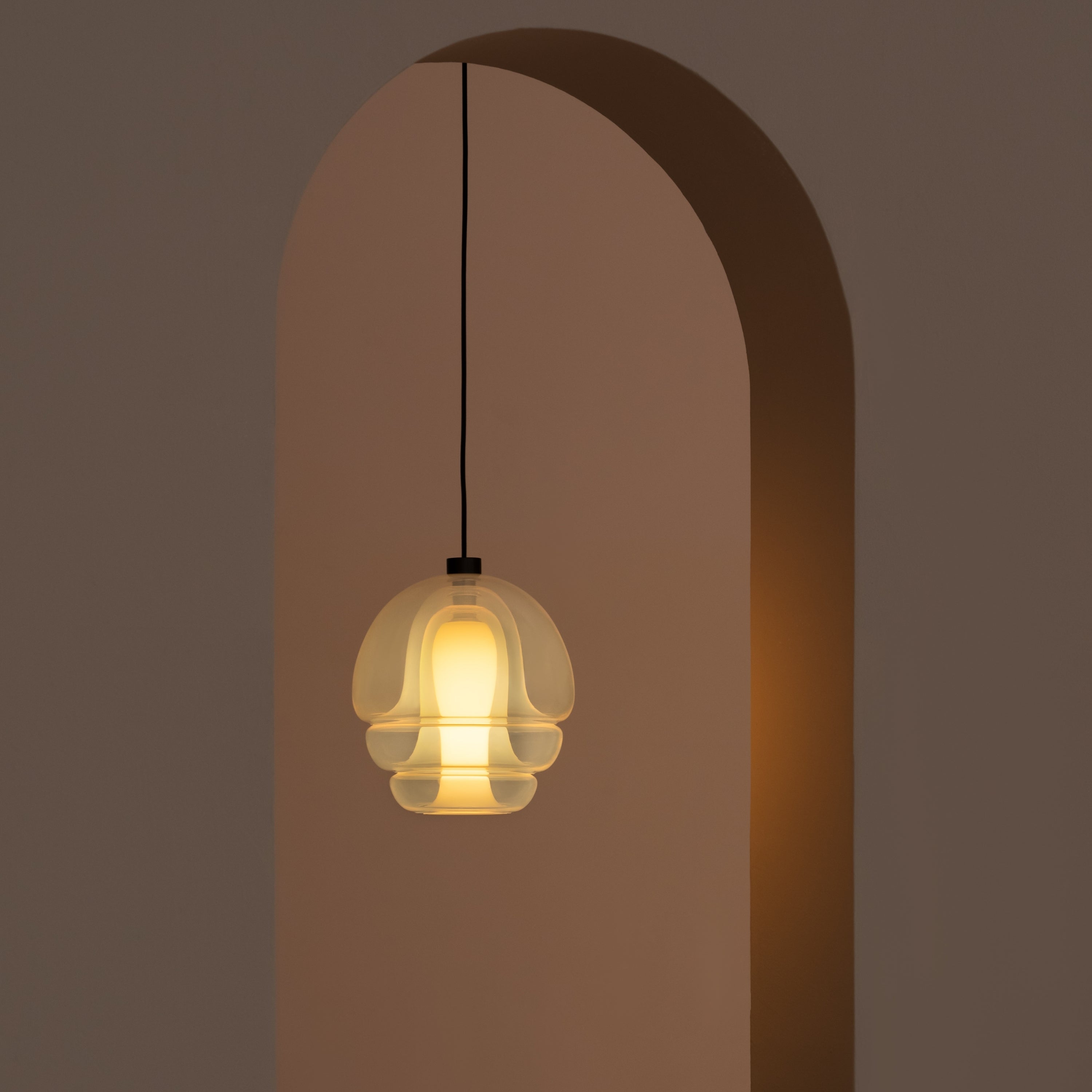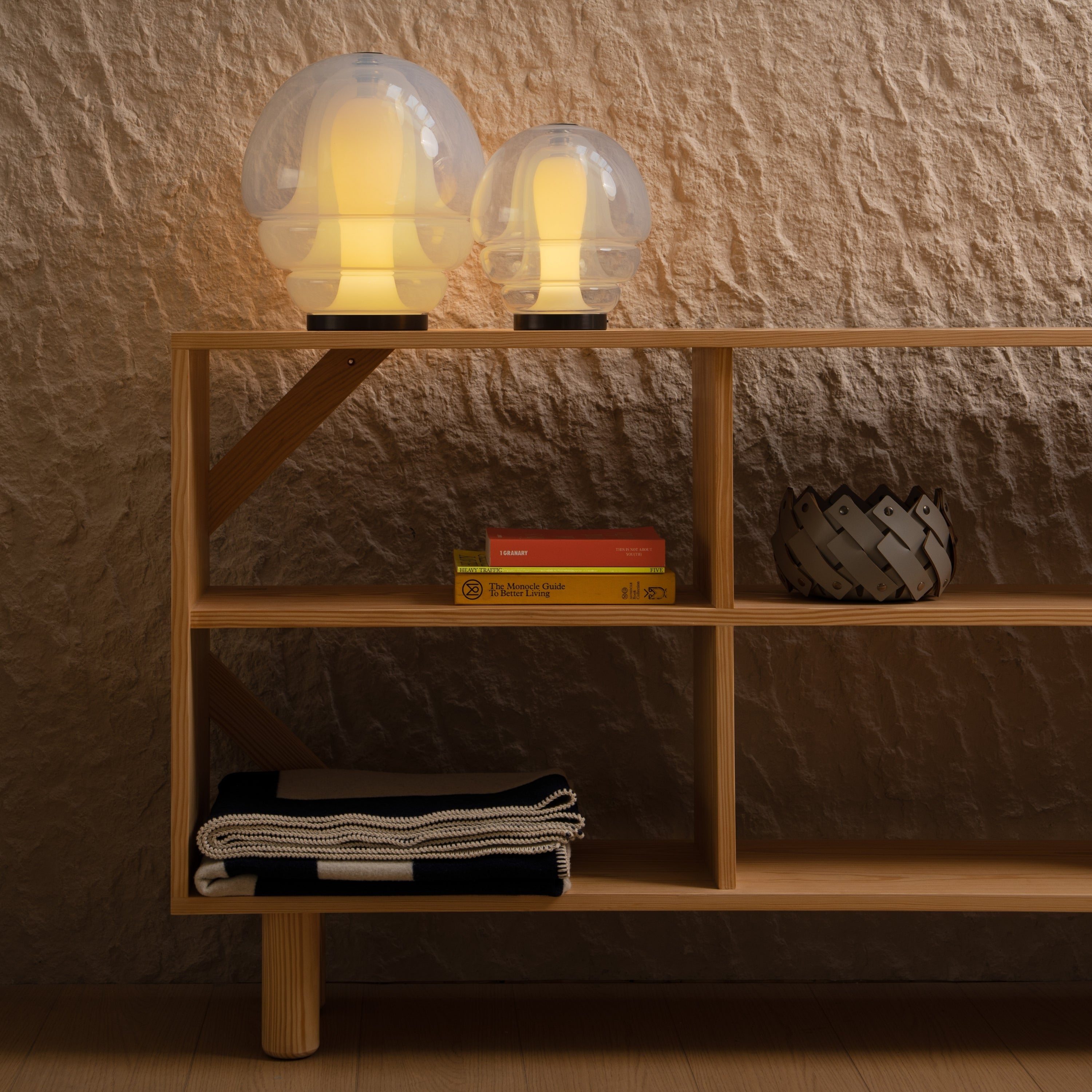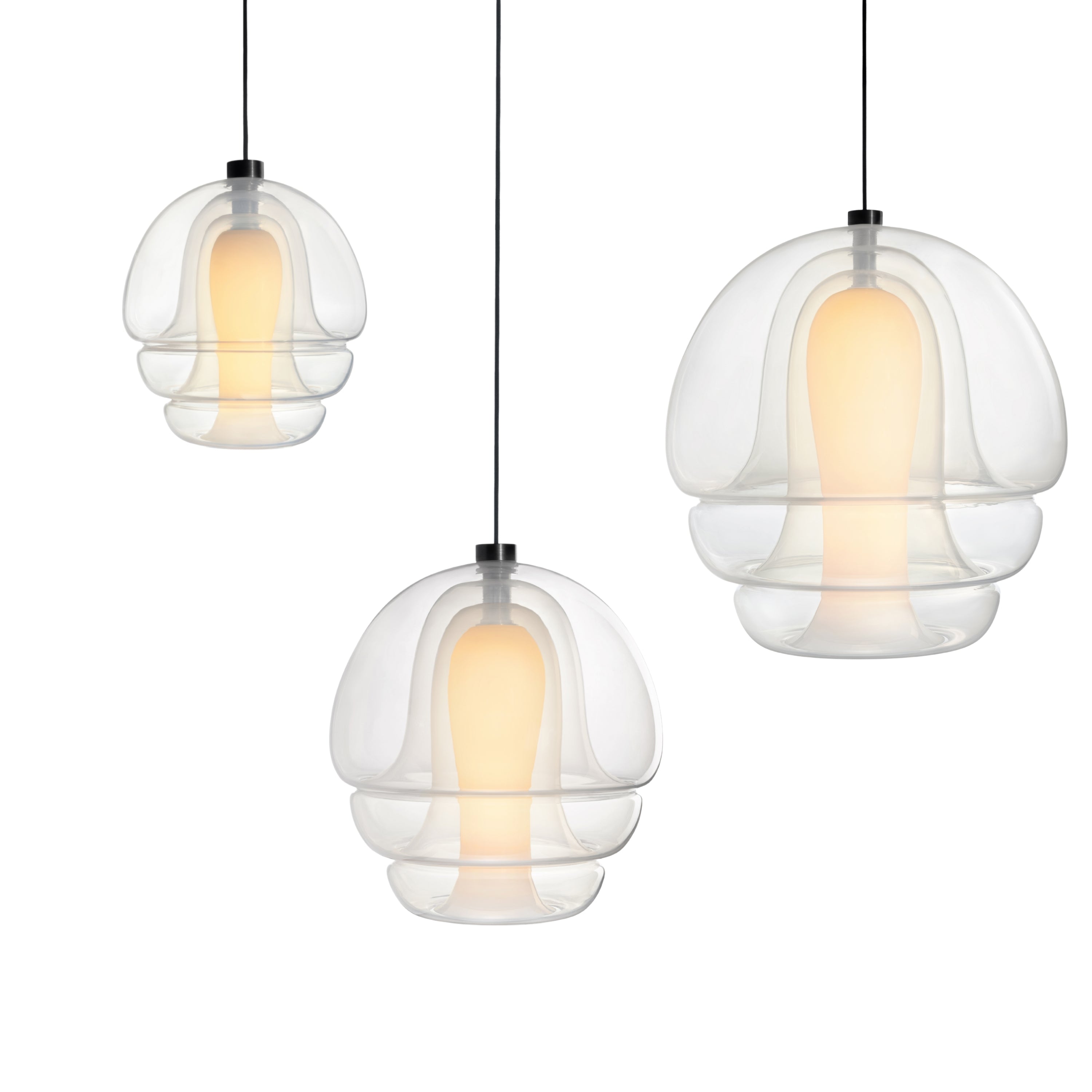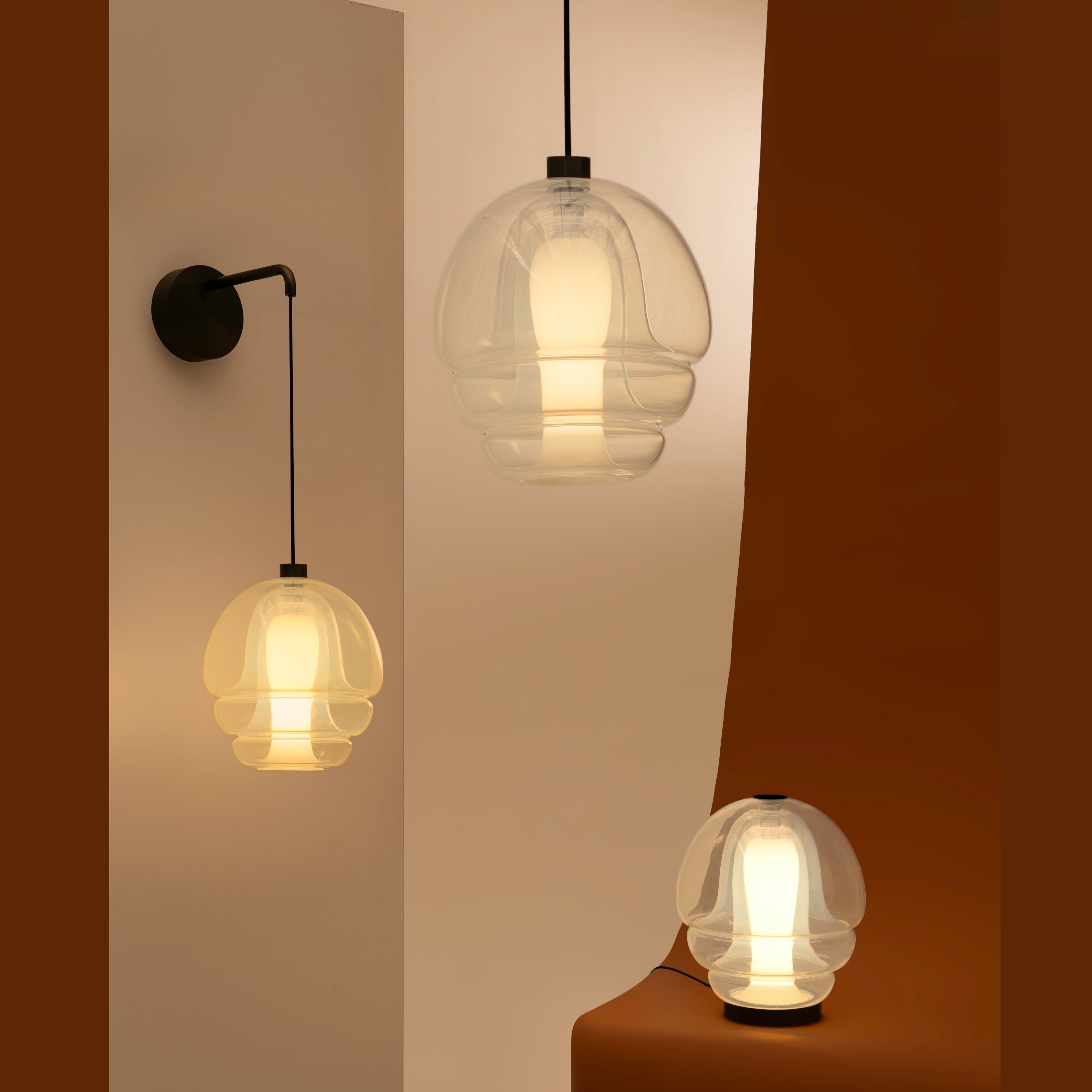 Originally designed in the 1960s by Carlo Nason of Italy, the Medusa has been brought back into production by Established & Sons in table, pendant and wall versions. Executed in multilayered, mouth-blown opaline glass, the lamp takes its name from its resemblance to a jellyfish. Using many of the same techniques as the 1960s original production run, the new Medusa features layers of glass with a white mist finish that merge to create a warm, inviting glow over the proprietary integrated LED. Subtle variations in the layered glass make each piece unique, reflecting the mastery of traditional Murano craftsmanship.
