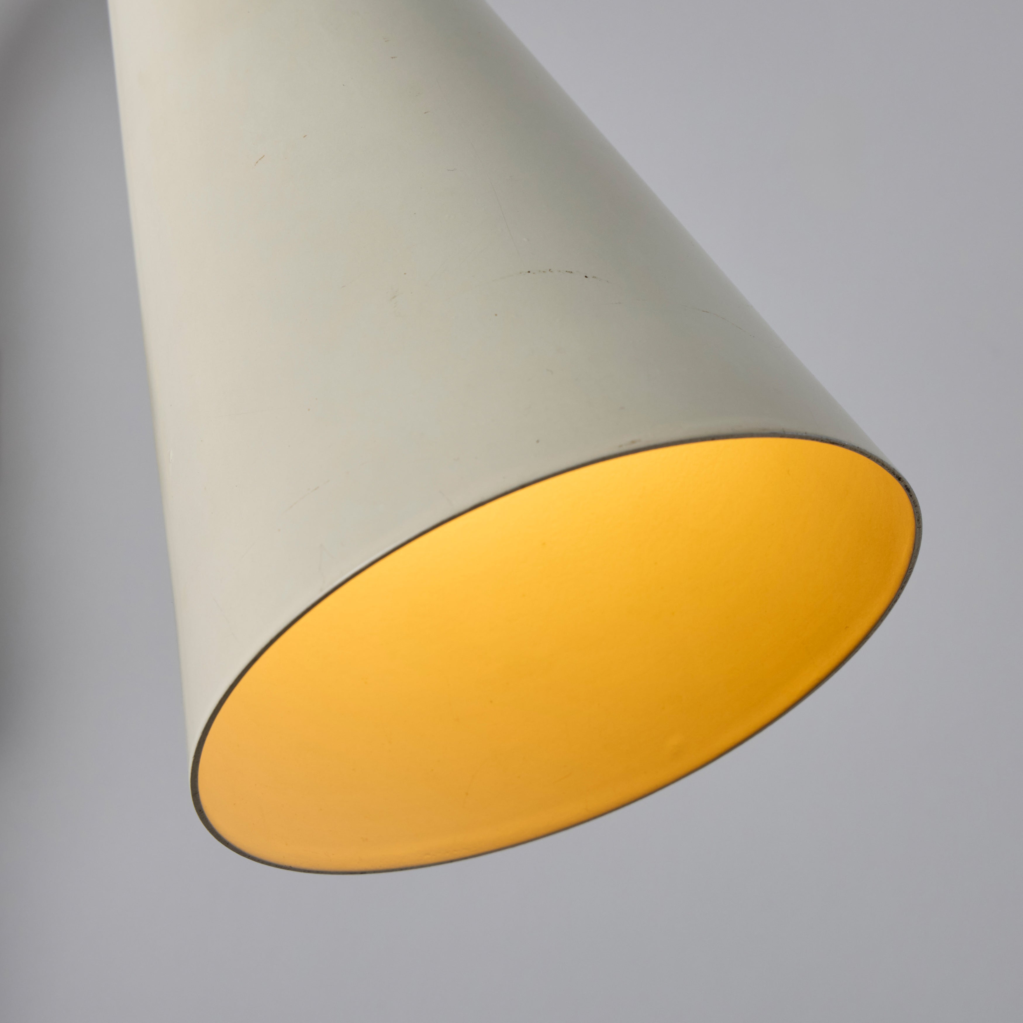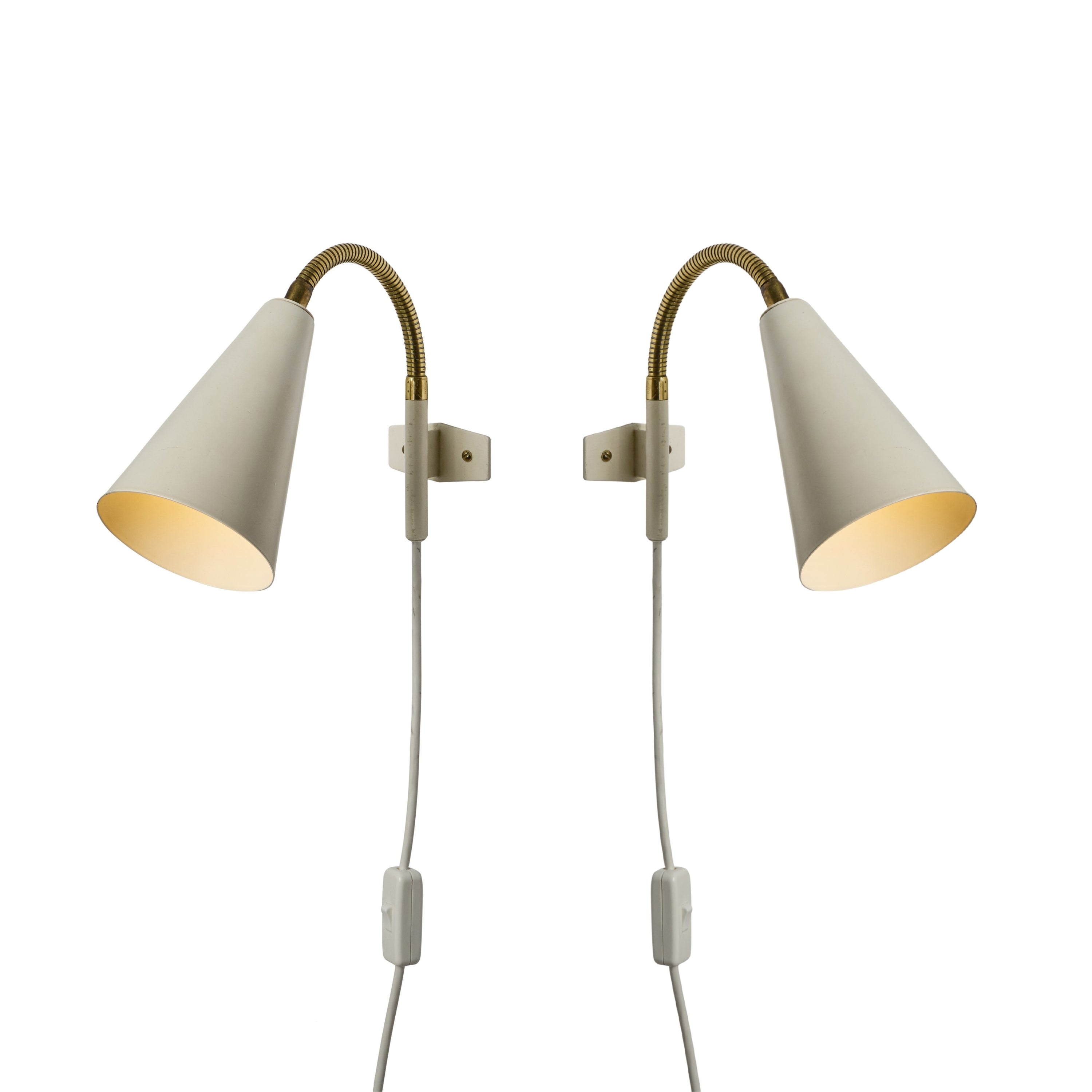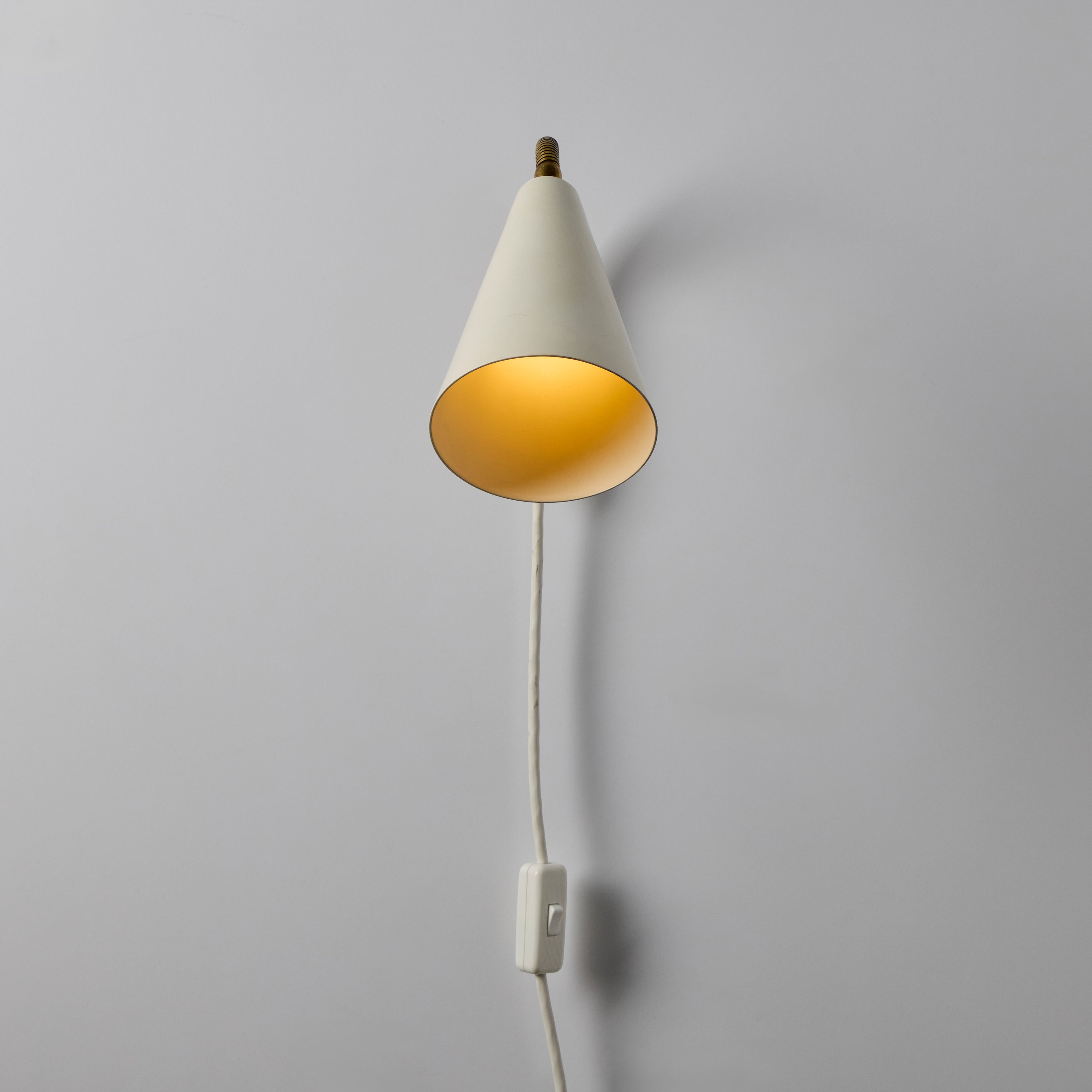 Pair of 1960s Plug-in White Conical Brass & Metal Wall Lamps Attributed to Hans Agne Jakobsson