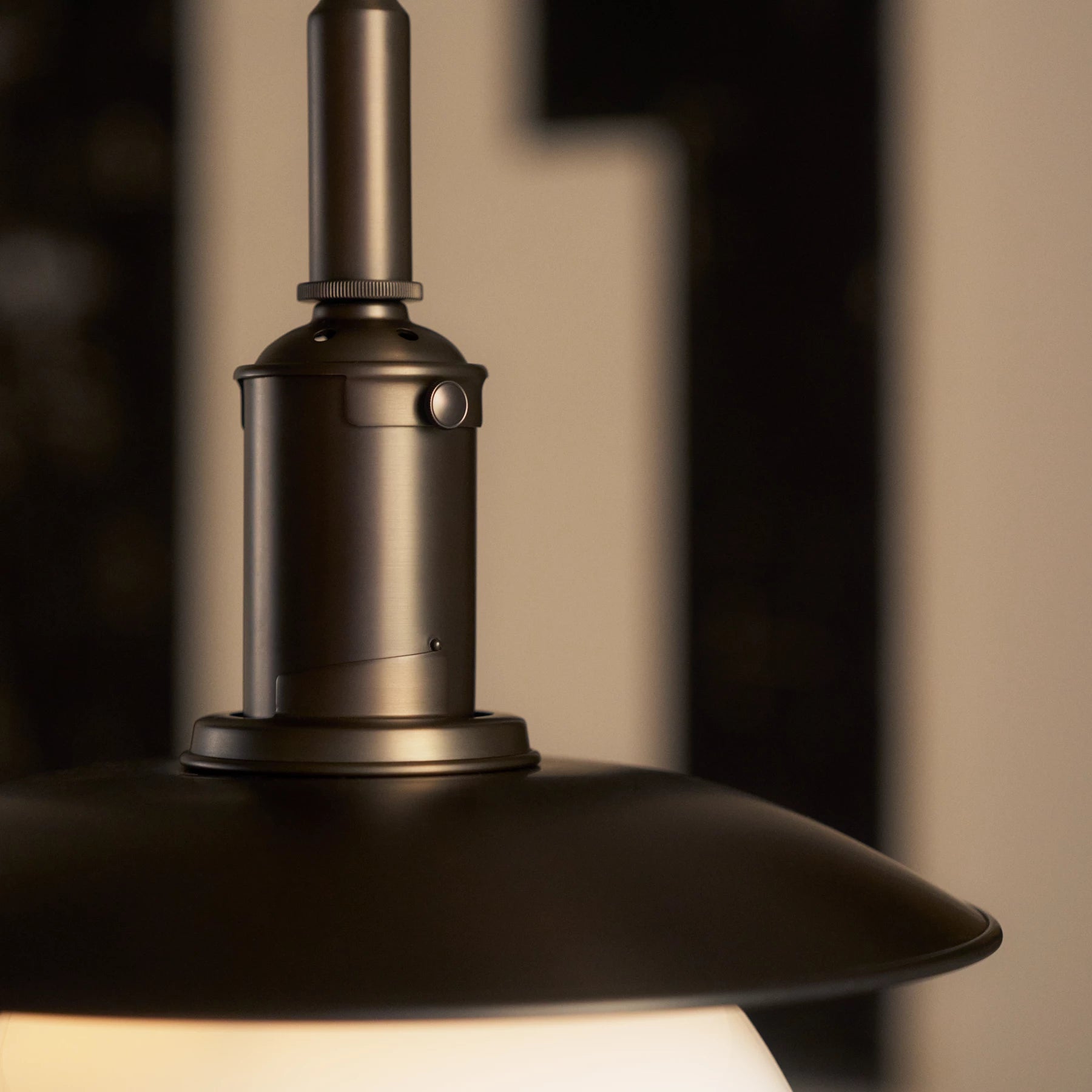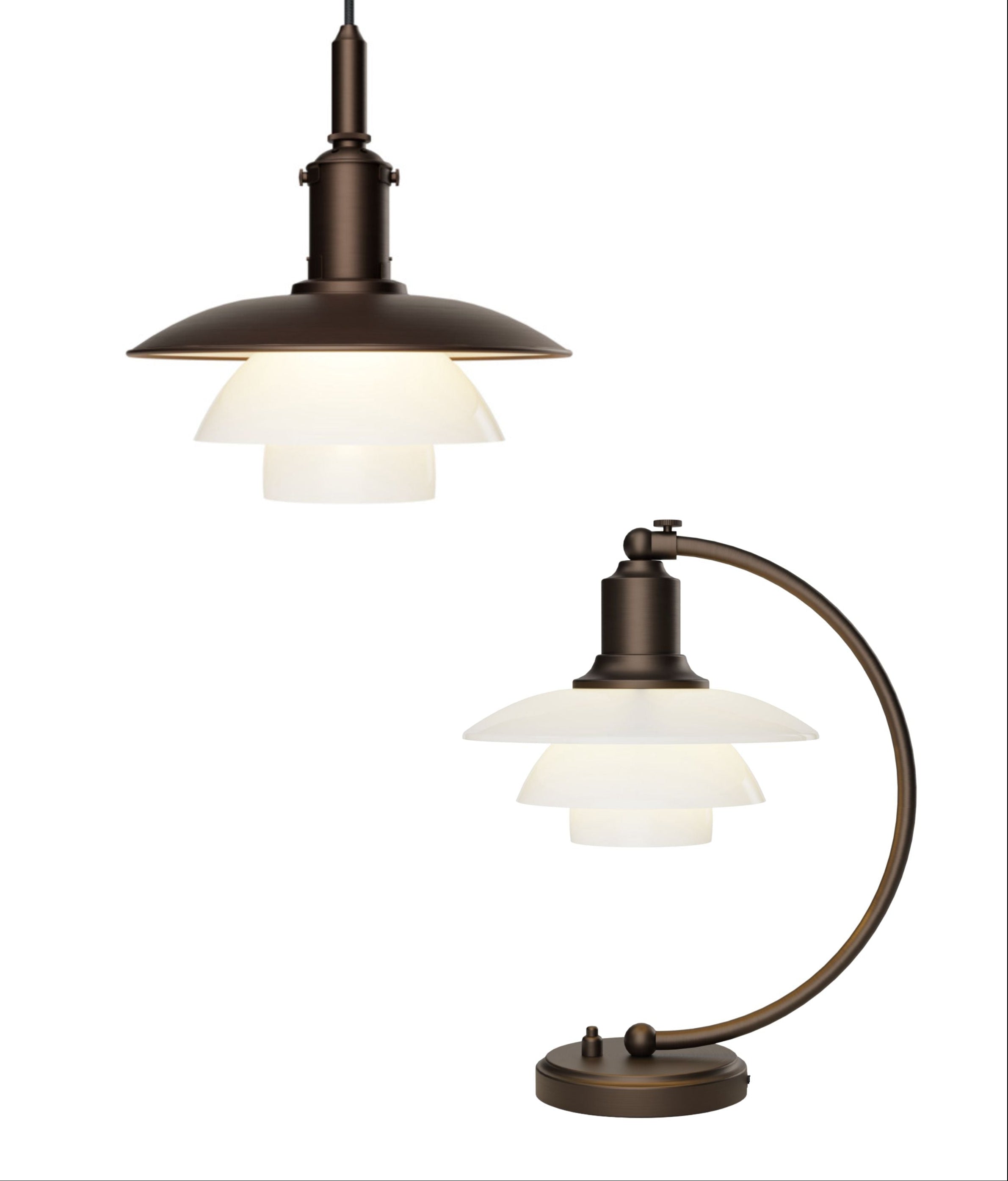 The PH Aged Brass collection consists of the PH 2/2 Luna Aged Brass Opal Table Lamp and the PH 3/3 Aged Brass Opal Pendant. The collection features mouth-blown opal white glass shades and a beautiful lacquered dark brown aged brass finish, reminiscent of the original PH lamps from the 1920s and 1930s. Paired with elegant opal white glass shades, they add a classic touch of elegance to any setting.